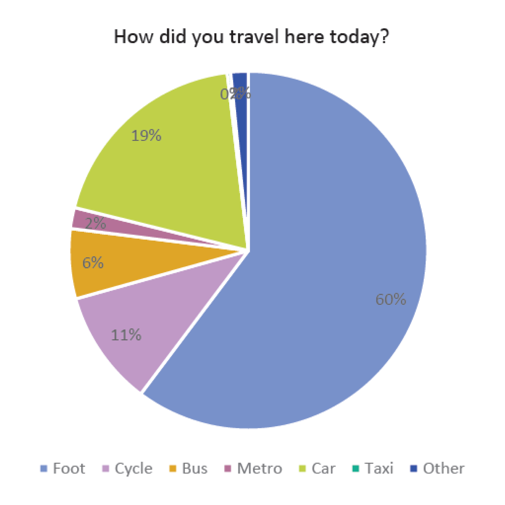 Within the results, you’ll find the following chart, detailing the responses to the question How did you travel here today?
