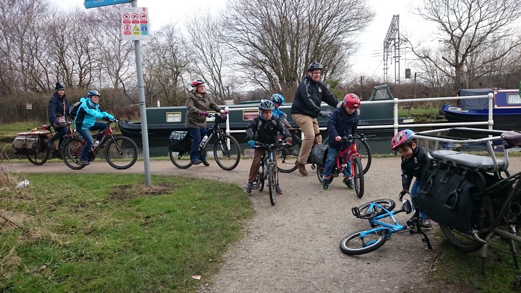 The Bridgewater Way was quiet, and fortunately, the Trans Pennine Trail wasn’t that muddy. We had a combination of cargo bikes, child seats and kid’s bikes, with some kids riding, some sitting and one swapping between the two.