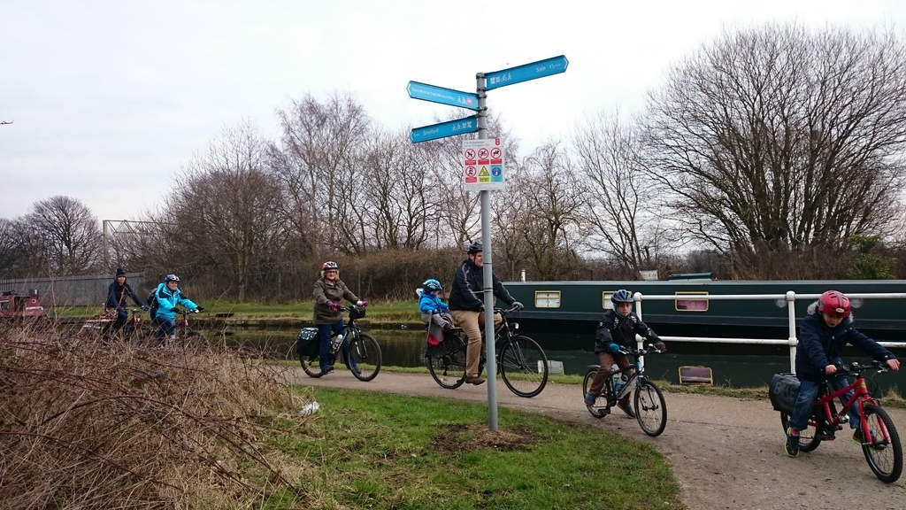 Family cycling on the Bridgewater Way and Trans Pennine Trail – March 2016