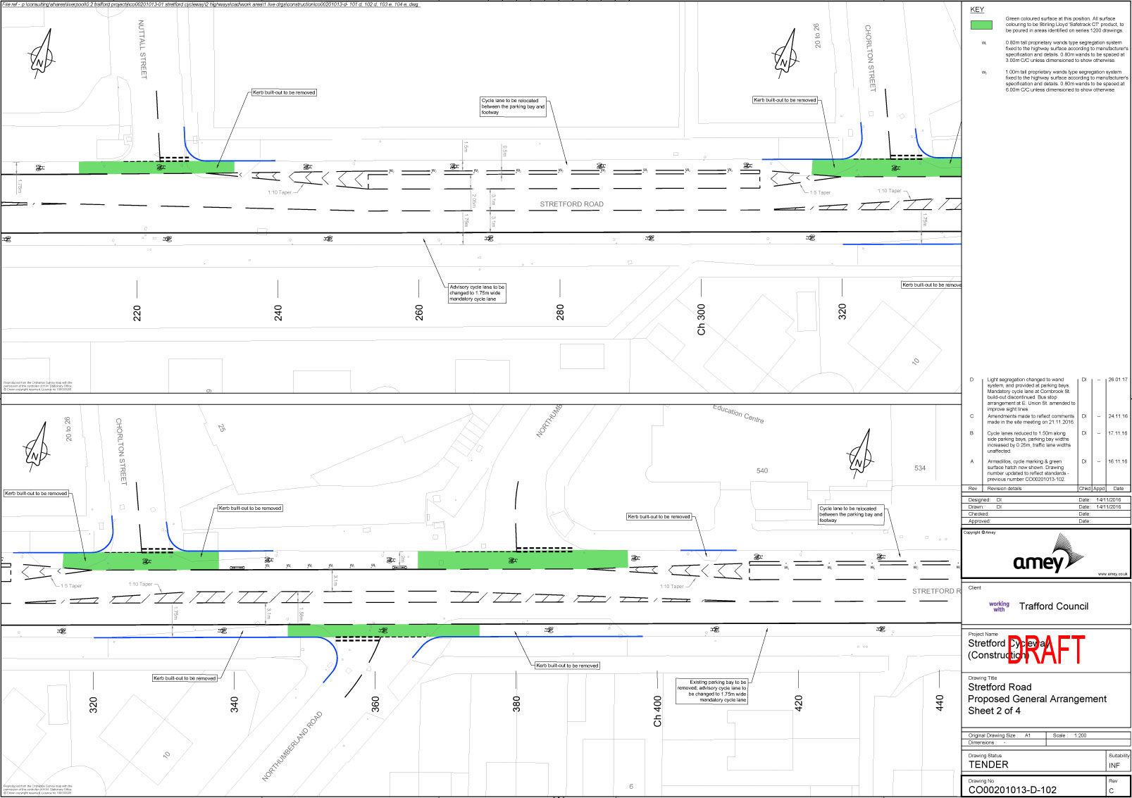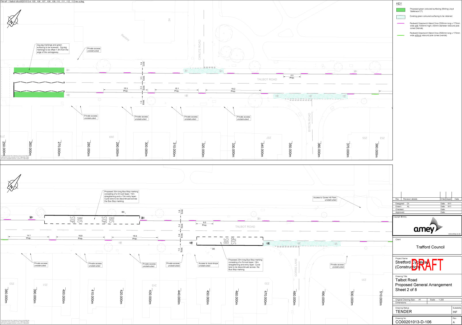 According to Amey, the proposals for Stretford Road and Talbot Road are now close to completion and they will be putting them forward for approval soon. The latest proposals were sent to the forum for review prior to the meeting.