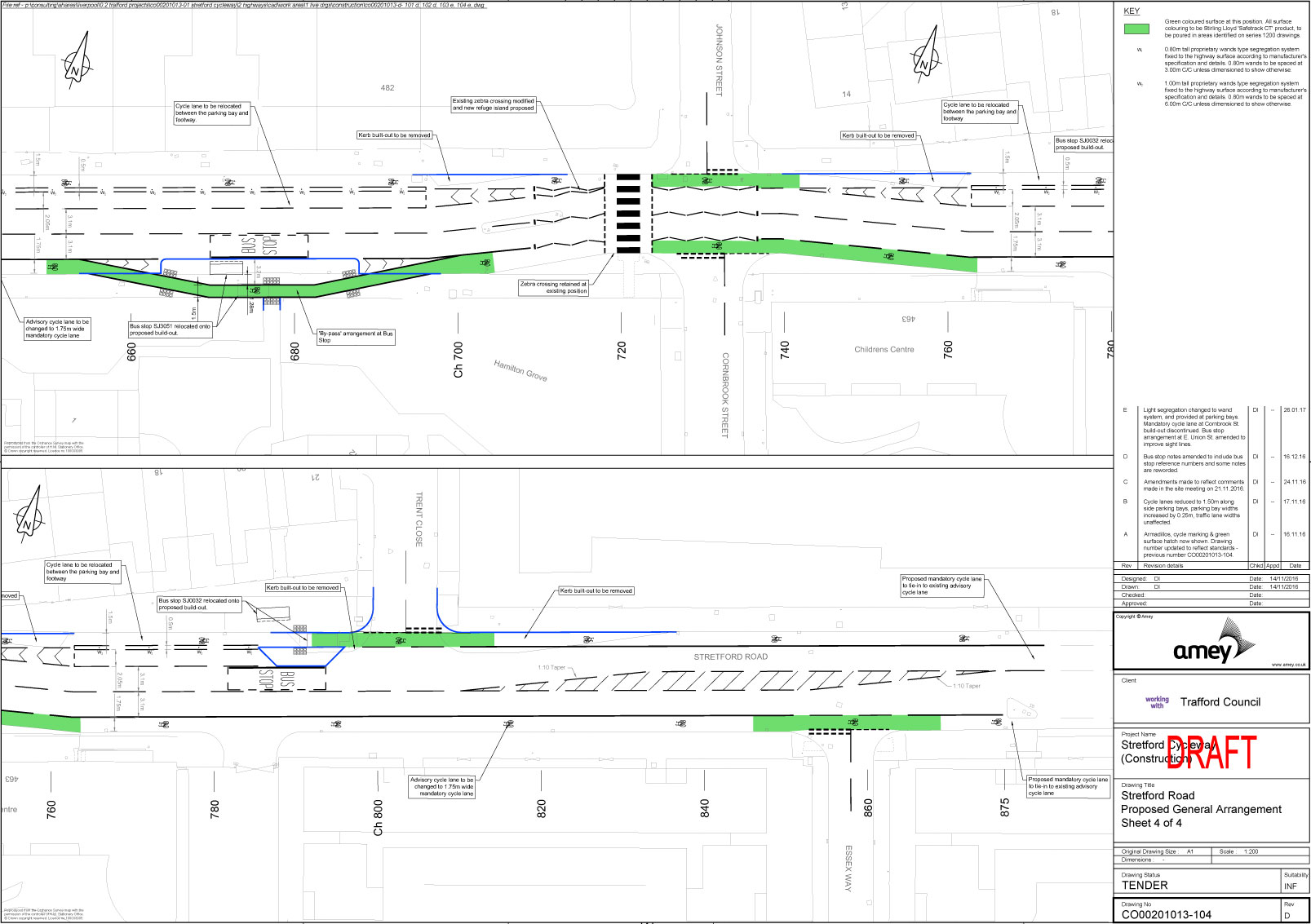 Concerns about the pinch point at the zebra crossing at Cornbrook Street were raised at the technical meeting. Amey’s view was it helps pedestrians with the narrowing of the road. I hope they revise this section before implementation.