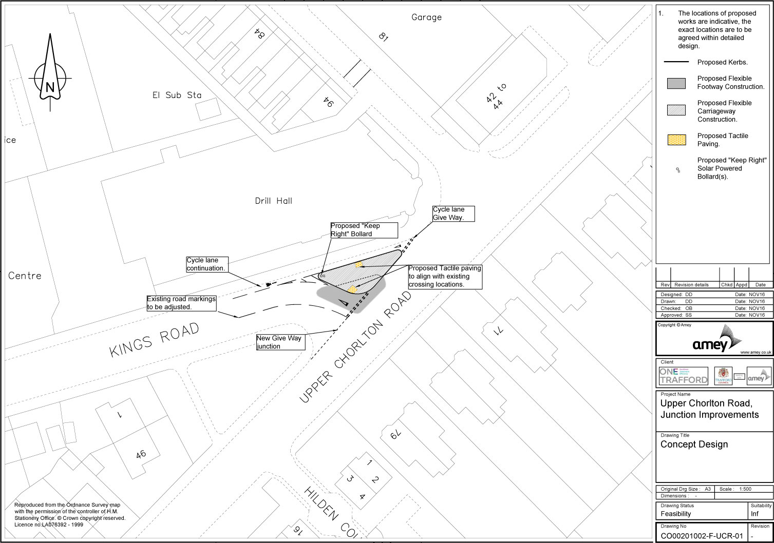 The proposals for the Kings Road / Upper Chorlton Road junction seem sensible, with the angle of approach from Kings Road being much closer to 90 degrees. This will help massively with visibility and should reduce the likelihood of accidents.