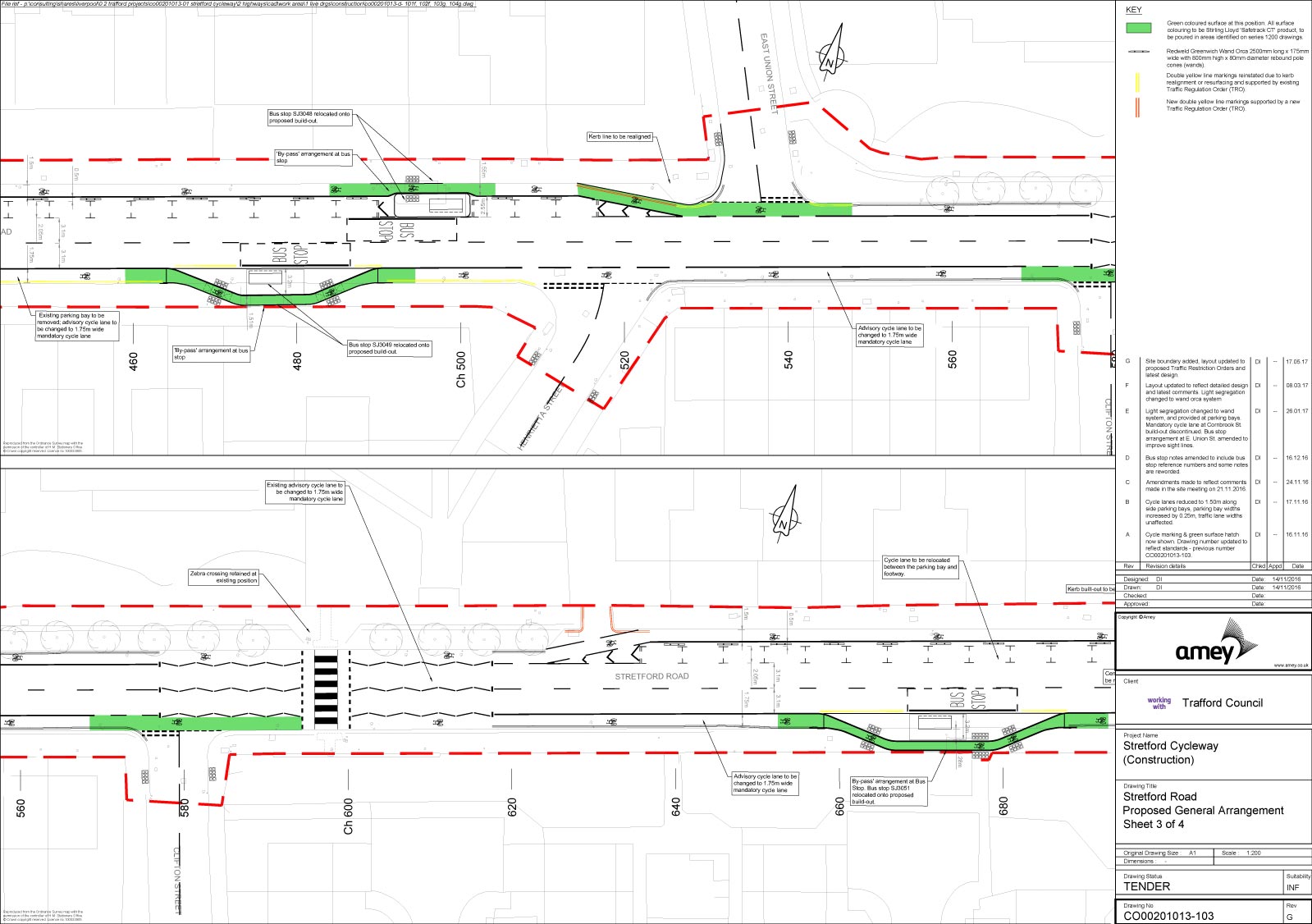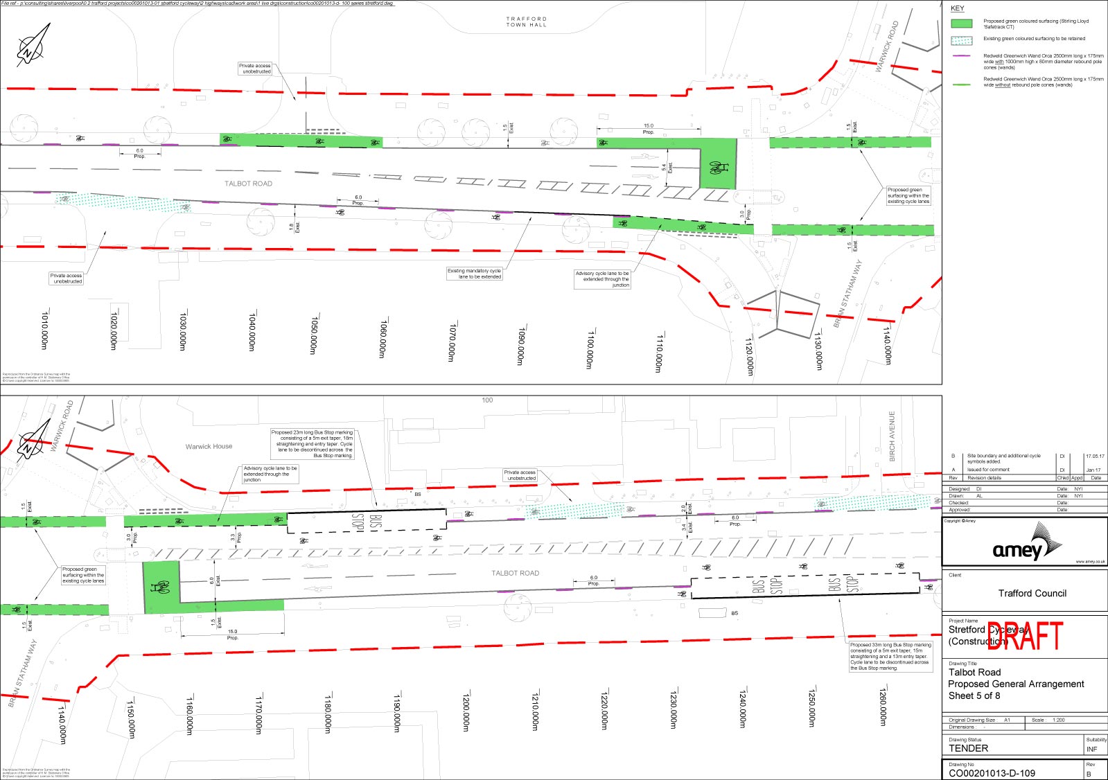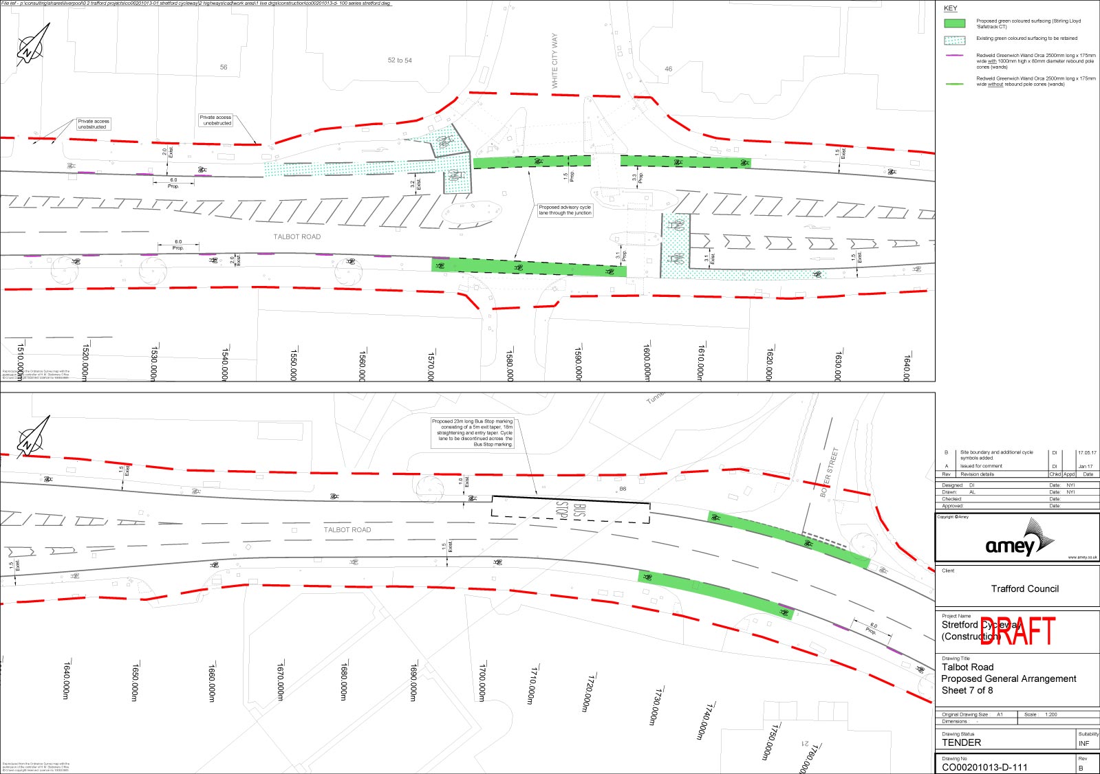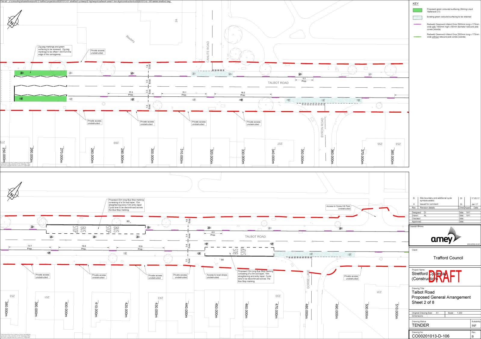 According to Amey, designs for Talbot Road and Stretford Road are now close to completion and they will be putting them out to tender soon. The latest designs were sent to the forum for review prior to the meeting.