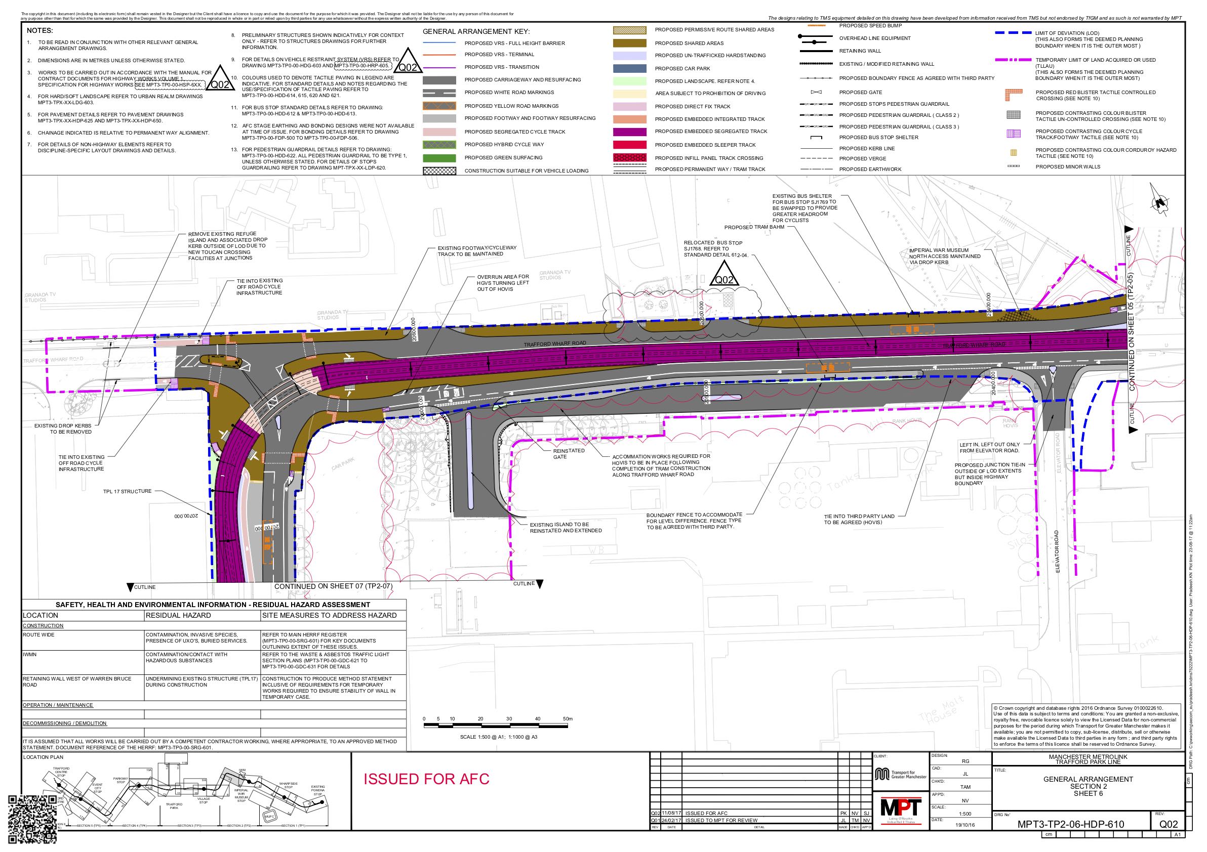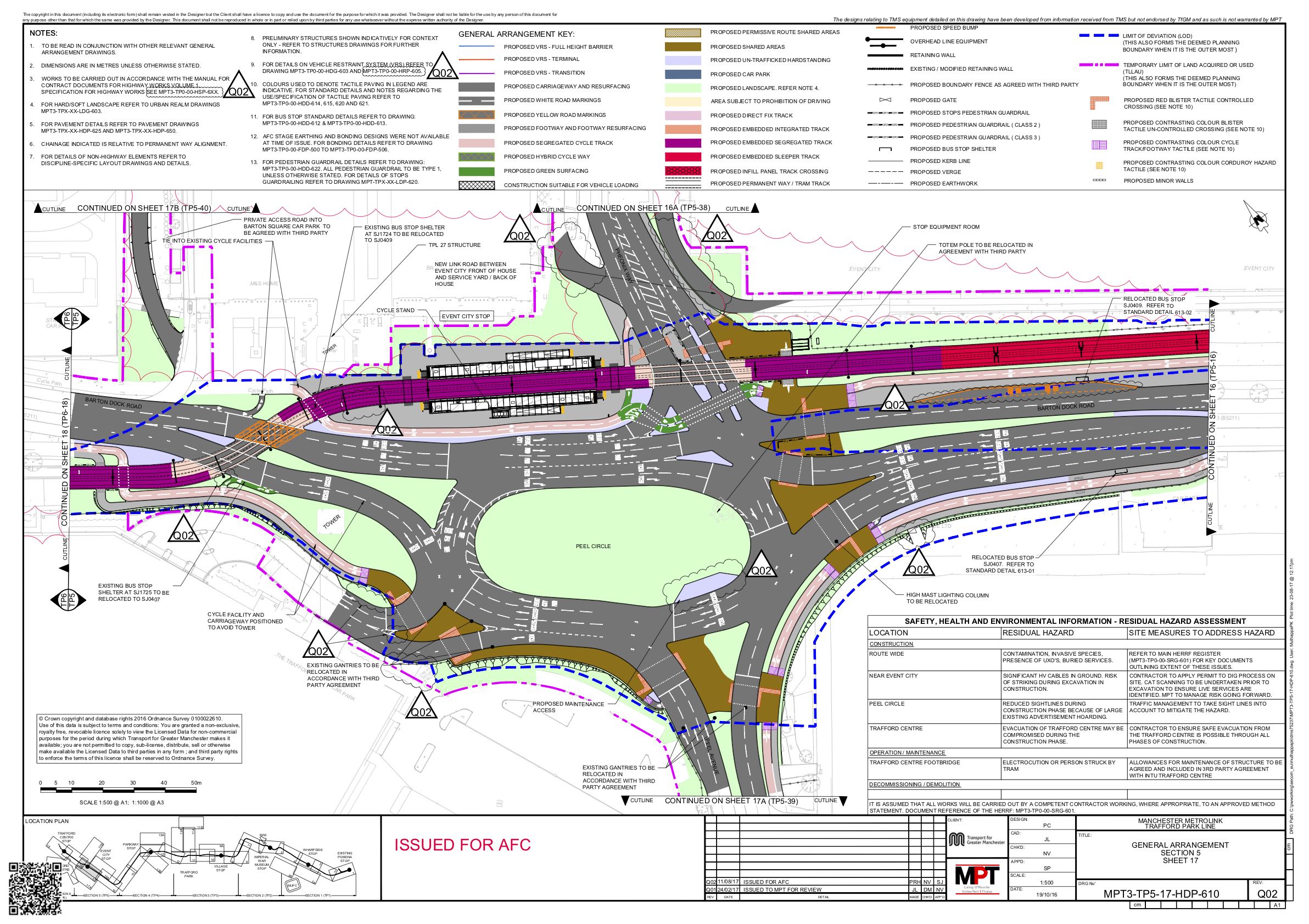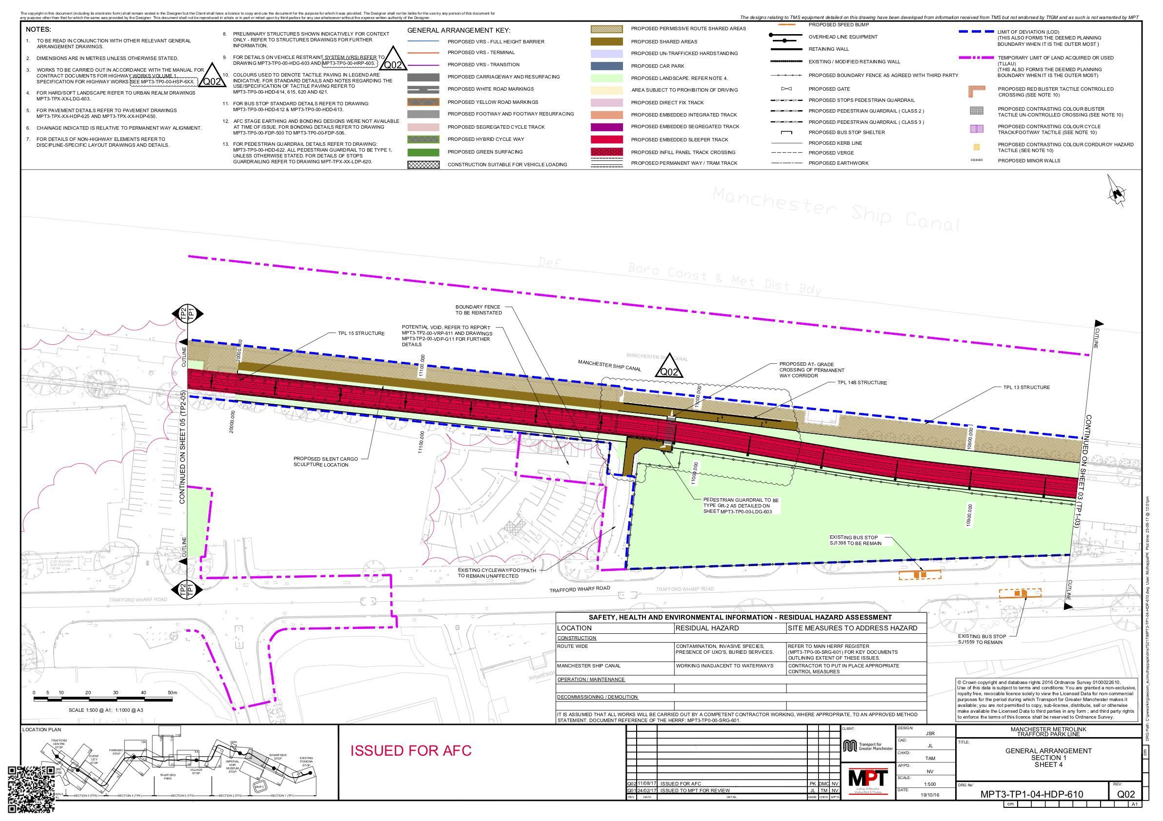 - It’s not clear how cycles will cross the Metrolink tracks to access Trafford Wharf, the only route through looks looks narrow with tight angles, potentially leading to accessibility issues and conflict with pedestrians