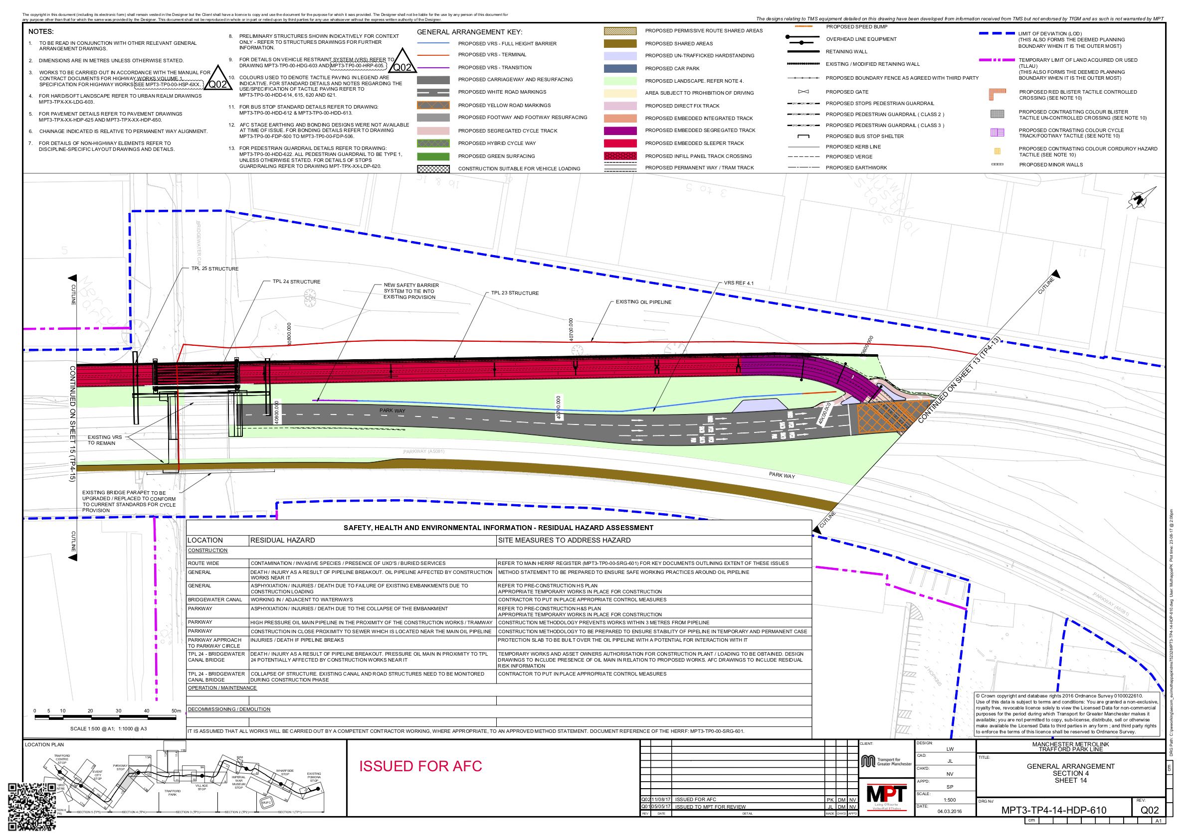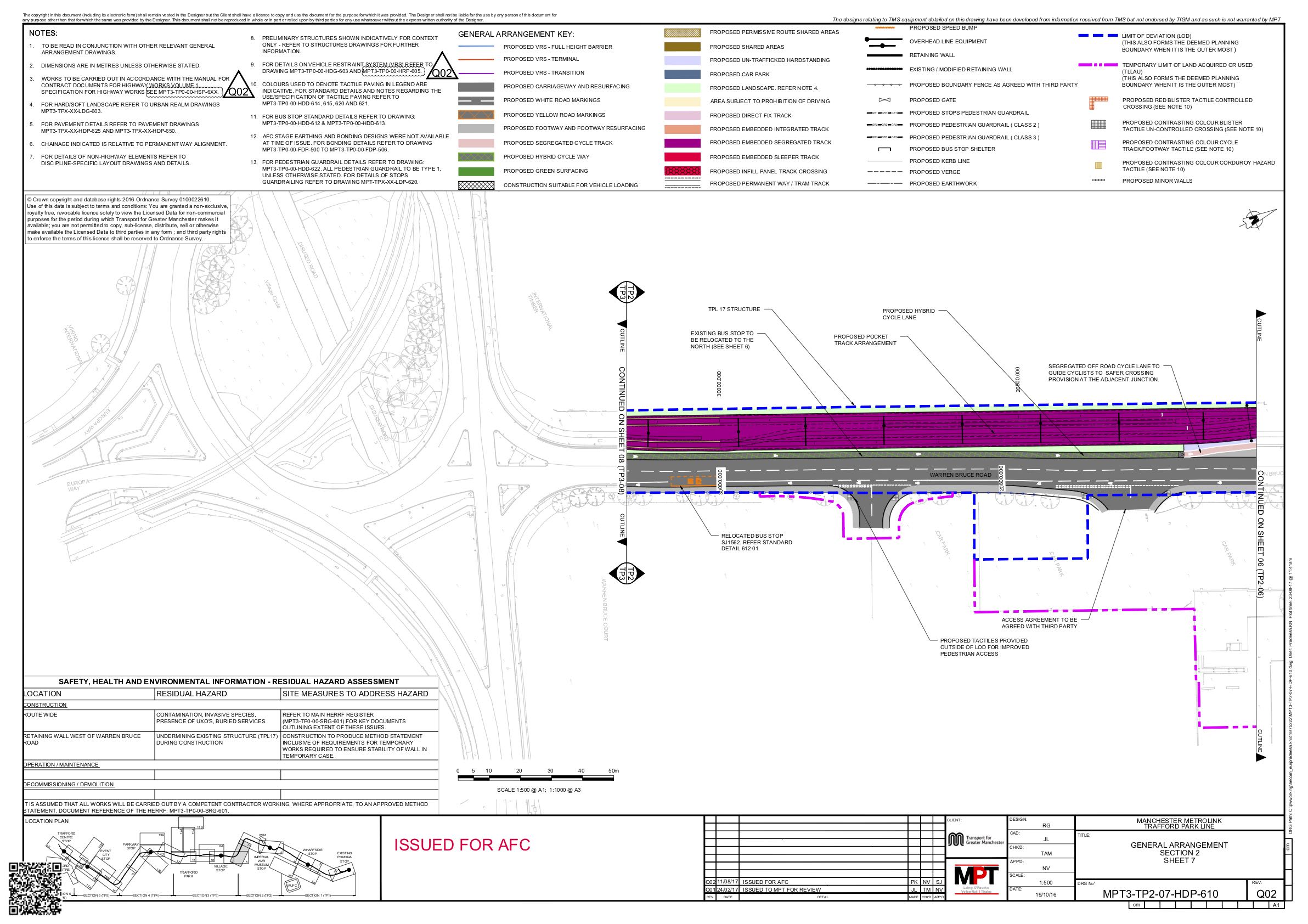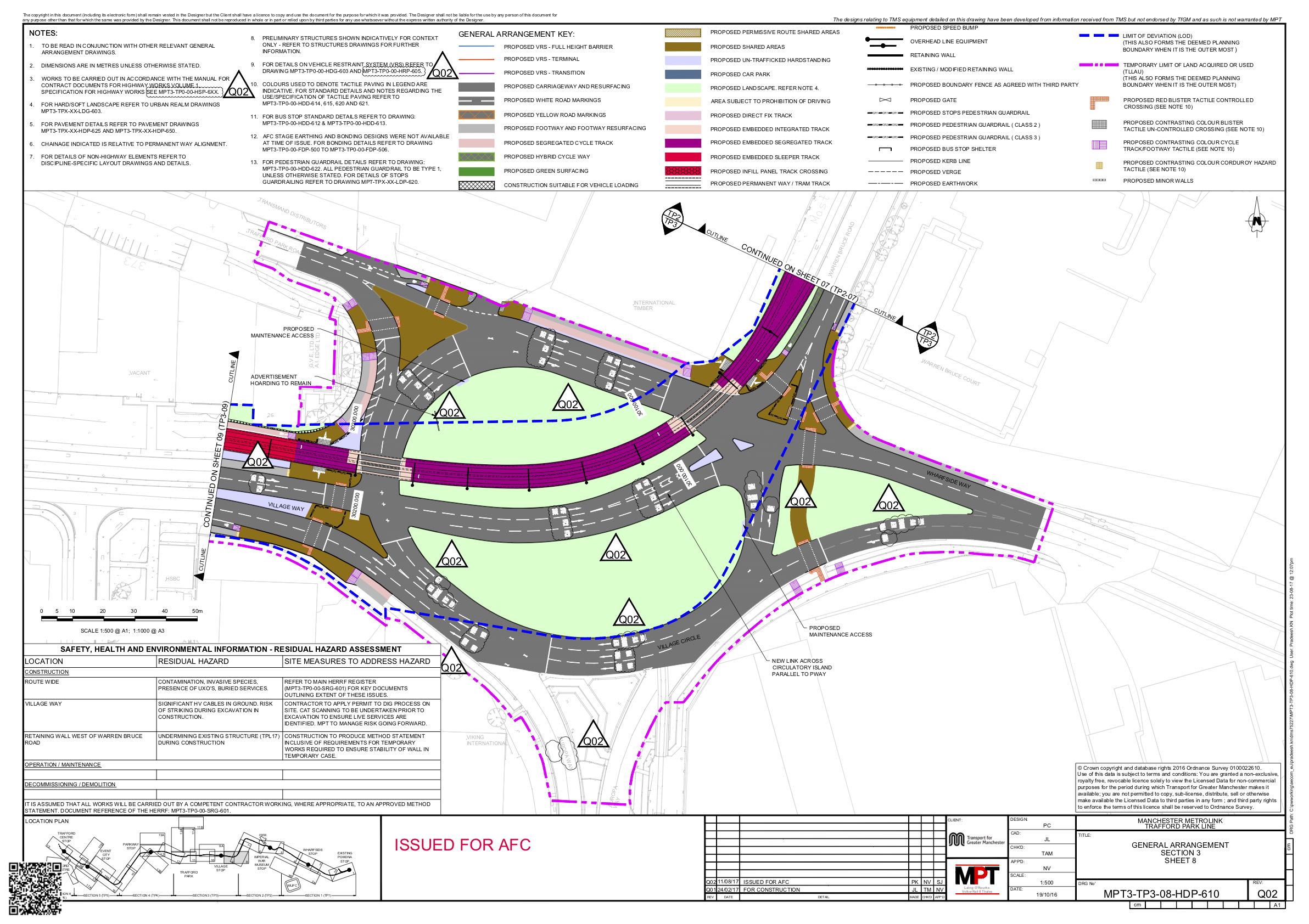 - It’s not clear how cycles will cross the Metrolink tracks to access Trafford Wharf, the only route through looks looks narrow with tight angles, potentially leading to accessibility issues and conflict with pedestrians