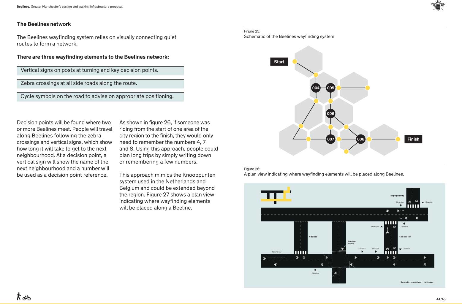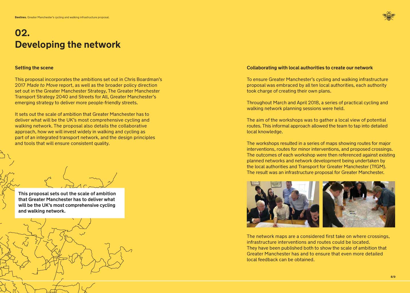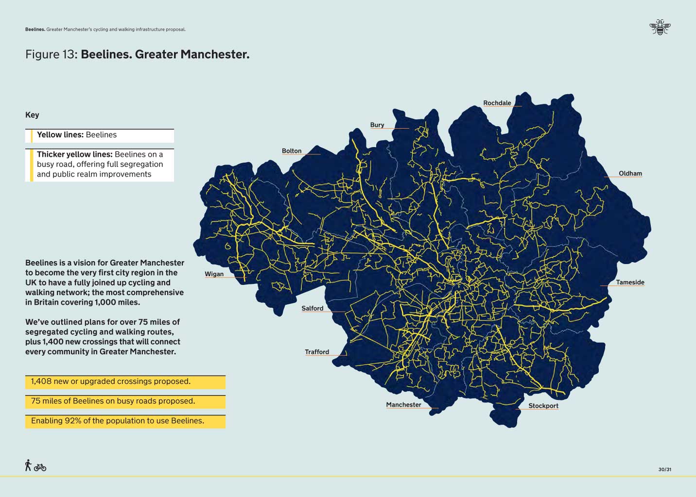 The proposed network can be viewed in detail at the Beelines map at MappingGM. The map has been put together following a number of walking and cycling network planning sessions held with each of the Greater Manchester boroughs.