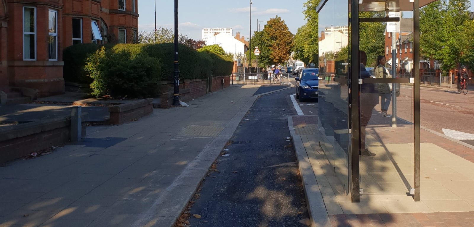 This raises another issue. Currently, cycling along Stretford Road is quite problematic as the work is being carried out. Some of the completed sections you can happily cycle along until the cycleway comes to an abrupt end and you have to rejoin the road. This isn’t helped by the parking situation, with motor vehicles parking randomly across the cycleway.