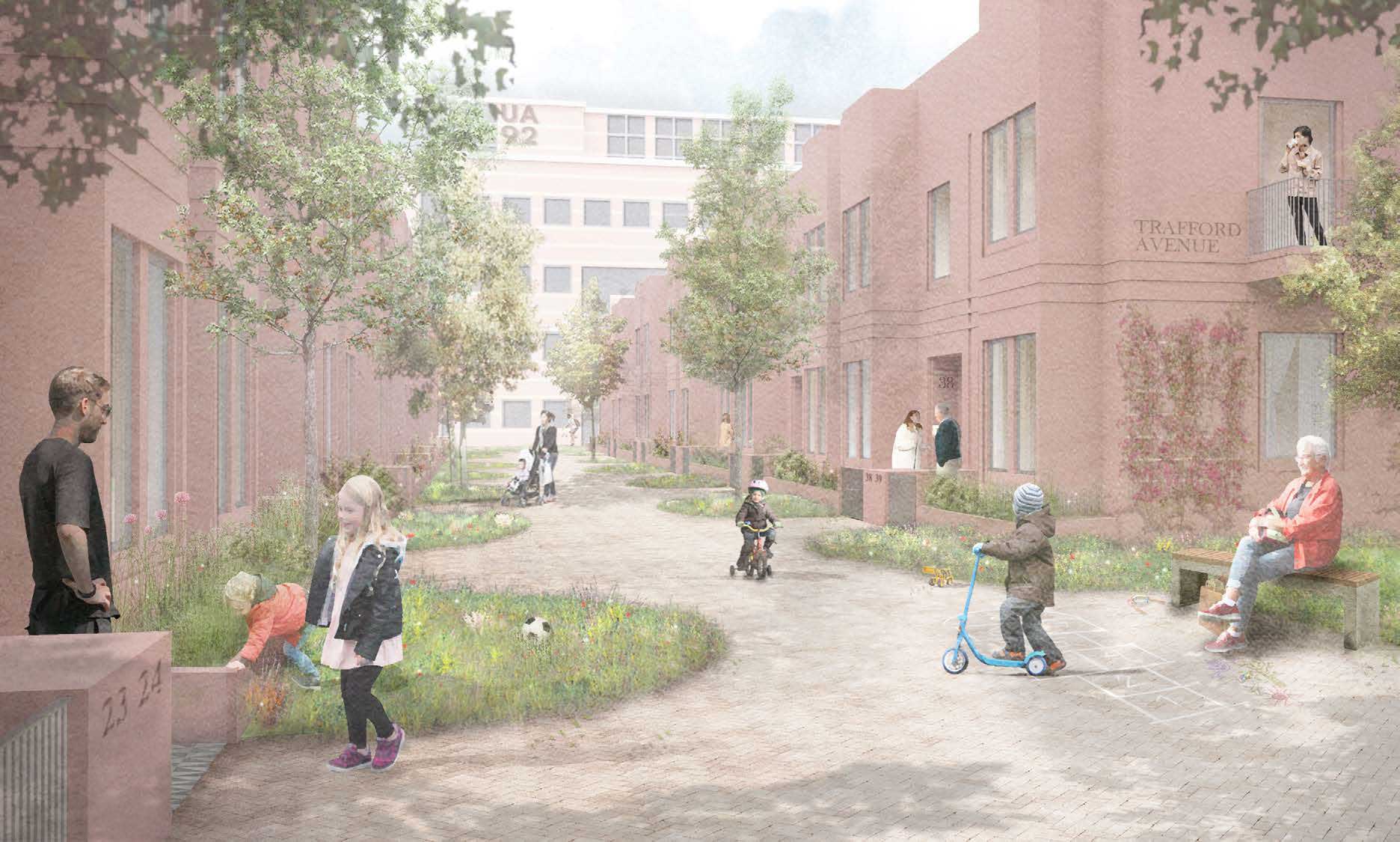 The proposals talk about the equivalent of approximately 2 football pitches worth of publicly accessible open space across the scheme, plus residents garden space and green tree planted streets.