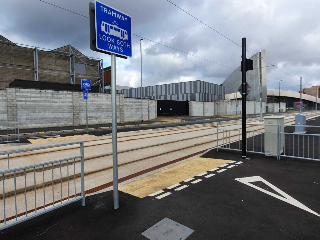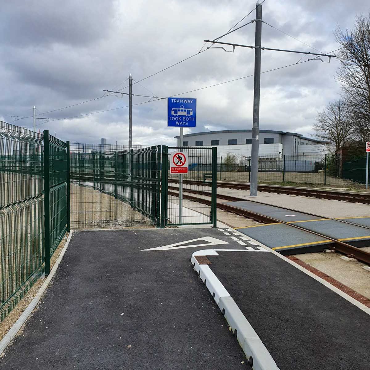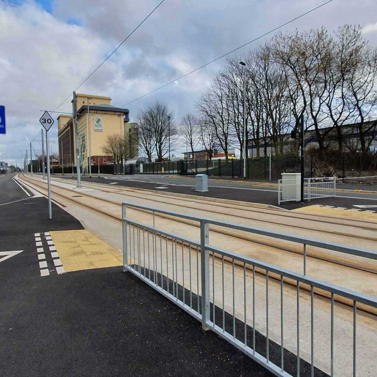 After the junction with the IWM North, there’s a reasonable section of dedicated cycleway that runs parallel to the tram lines, then crosses over them. Beyond that, it returns to the existing protected cycleway, that hasn’t seen any improvements.