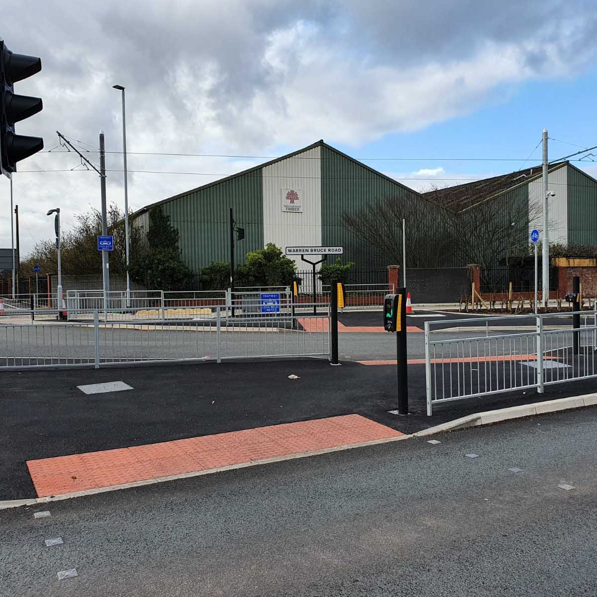 The junction with Warren Bruce Road is also pretty poor. Crossing Trafford Wharf Road at this point is a 3 stage process, requiring you to cross a traffic lane, then the tram lines, then another traffic lane. There’s no priority for walking and cycling, so expect to wait a while if you want a green light to cross road sections.