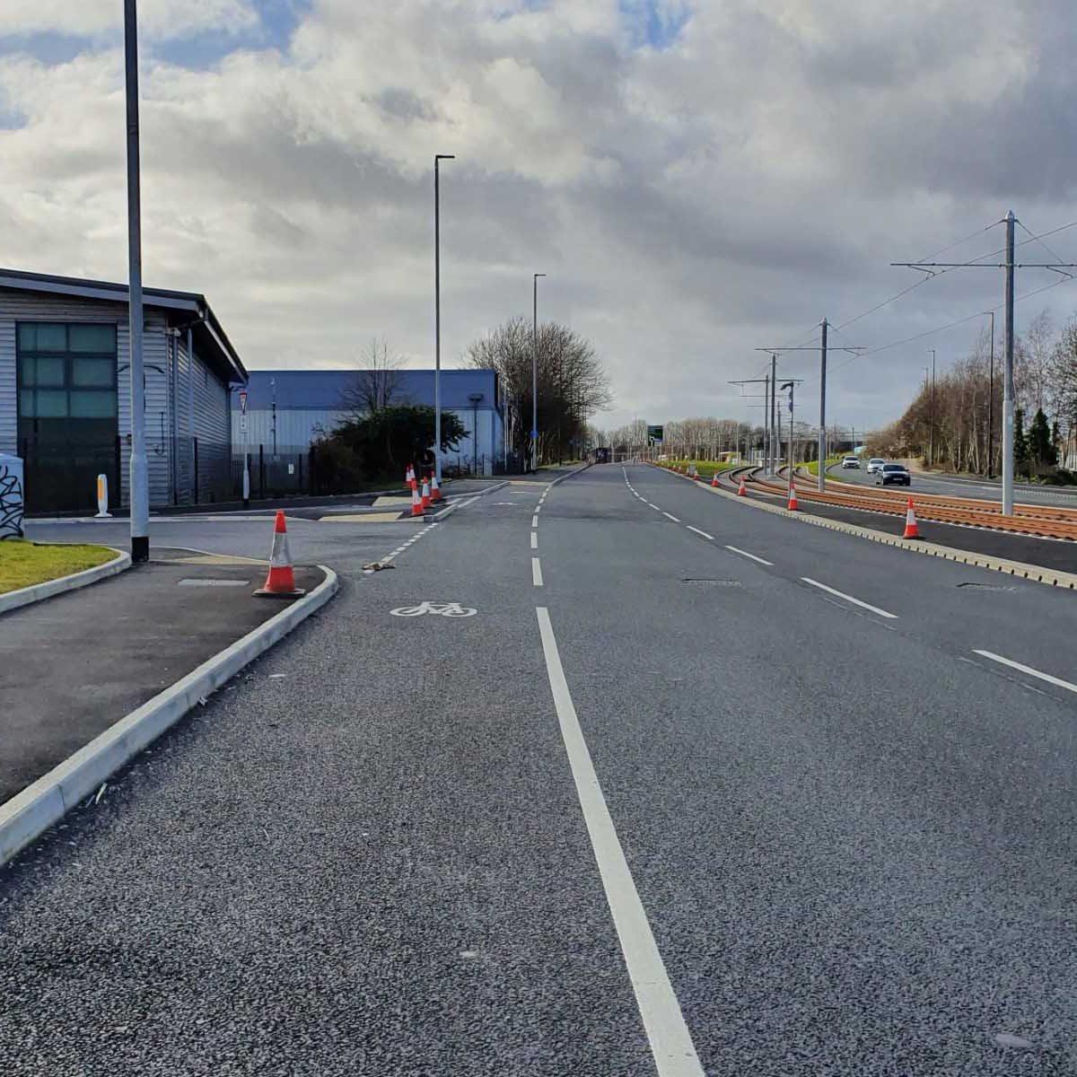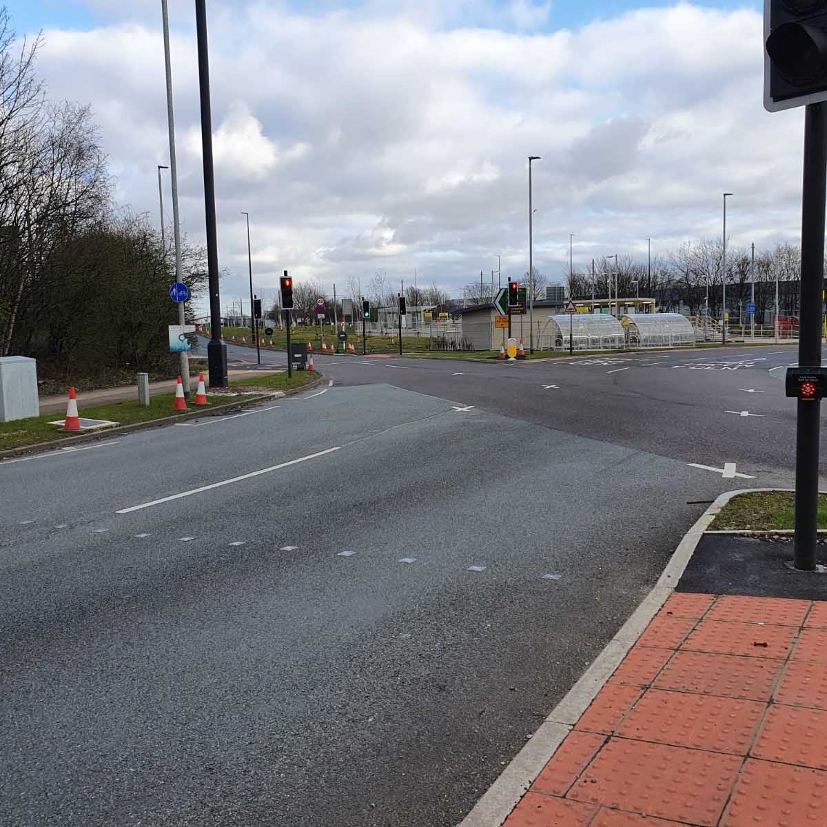 From Village Circle, you have to leave the shared use path and carry on along the road towards Parkway Circle, with just a painted lane and no protection. I’m sure TfGM would argue that this is an improvement, as previously there was nothing along here. But this is a dual carriageway with a 40mph speed limit, do TfGM really think that a painted lane and no protection is appropriate in 2020?
