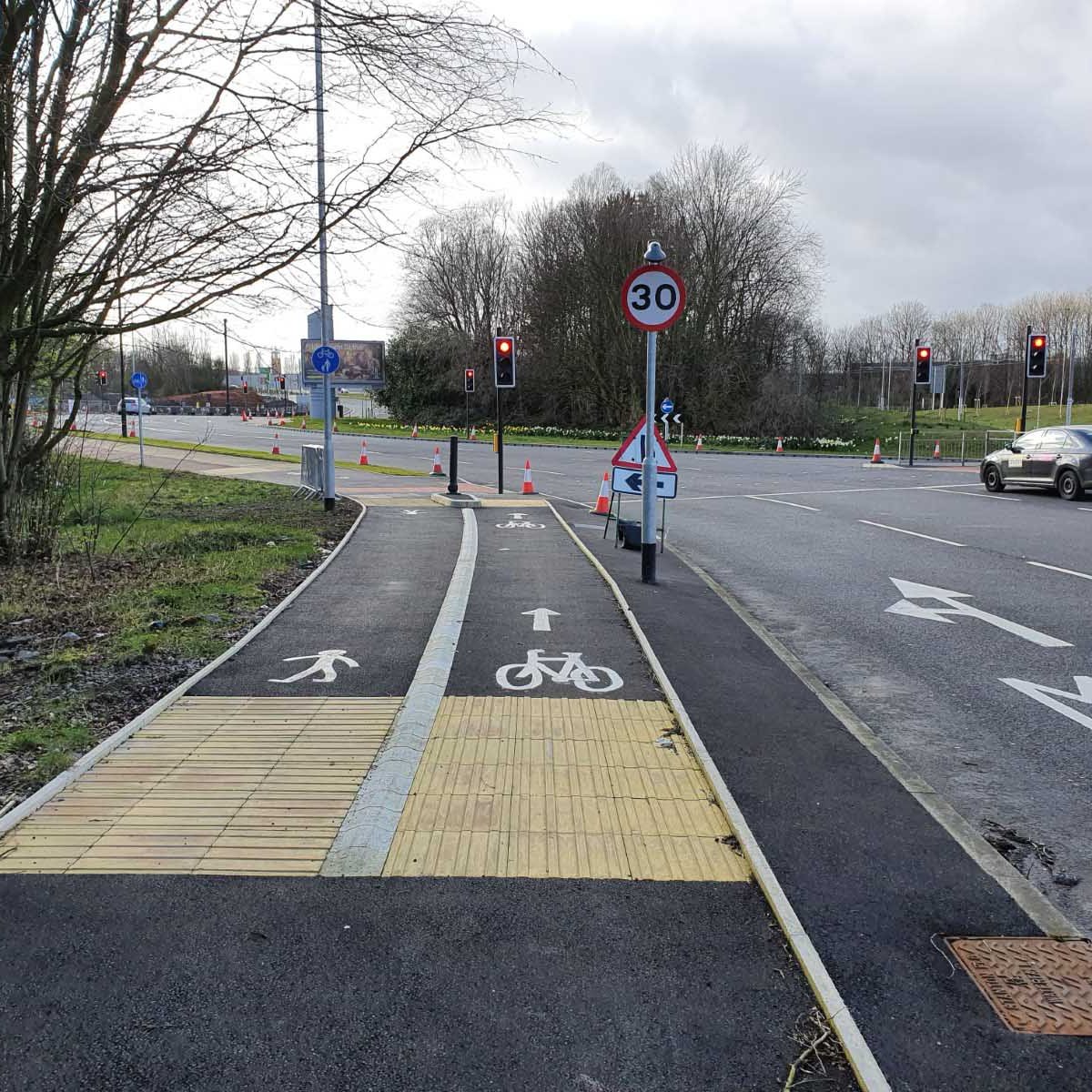 Parkway Circle has always been a pretty unpleasant place to walk or cycle. With many lanes of speeding speeding traffic to cross and no signalled crossings, you really did take your life into your own hands crossing here.
