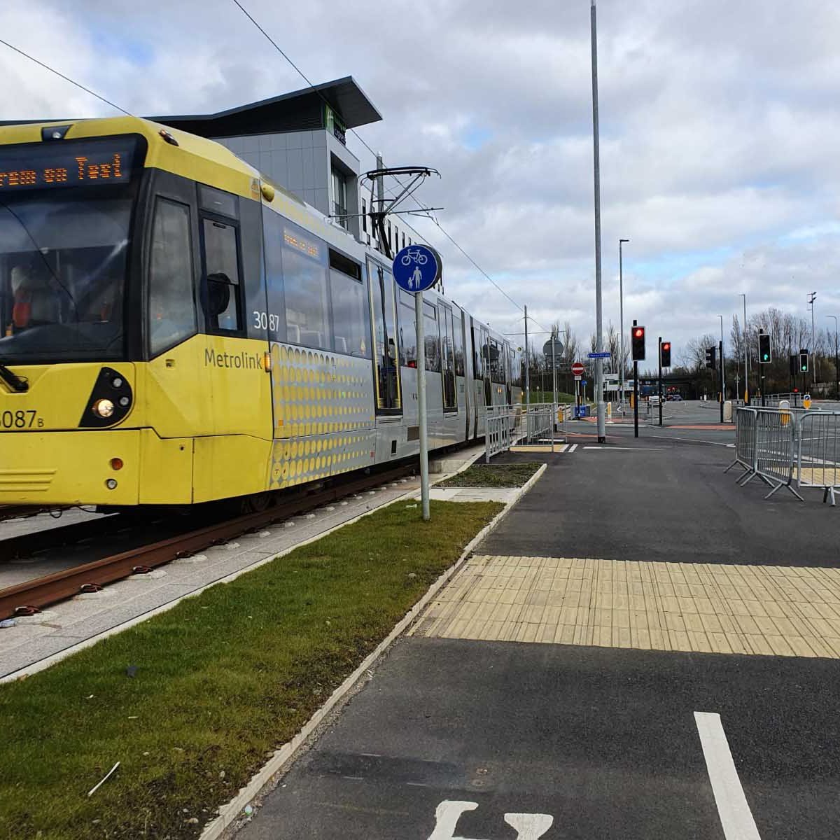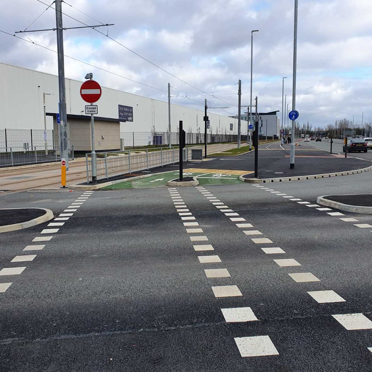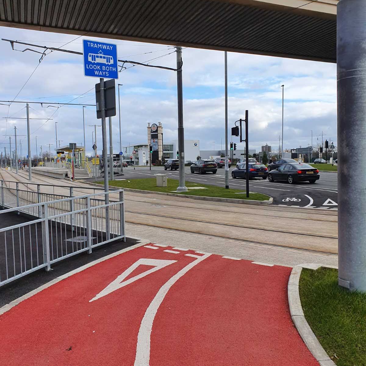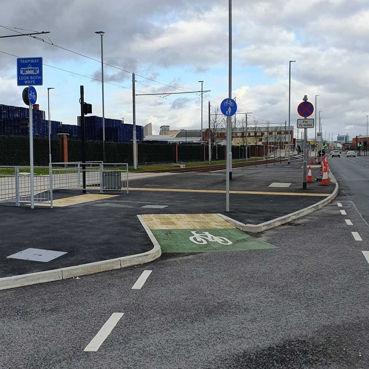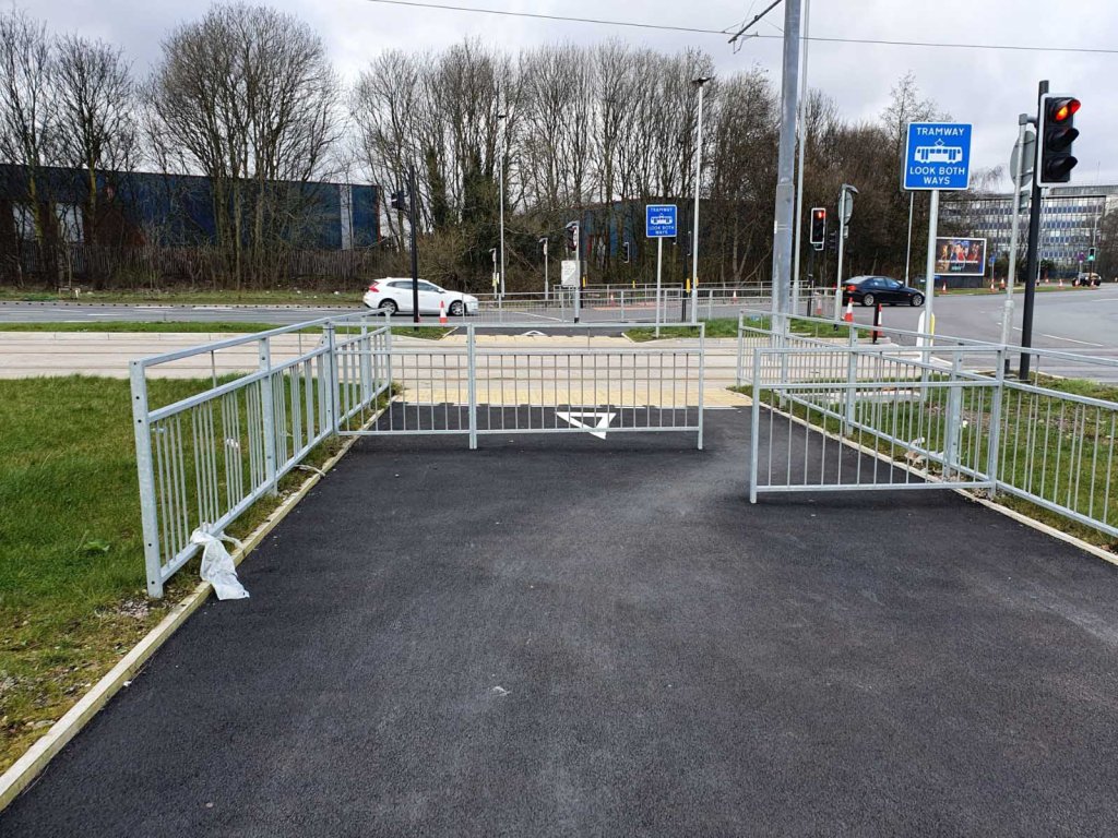 In addition, some of the dedicated cycleways have been replaced with shared use paths. I’m not sure why as there’s plenty of space. There’s also some unnecessary slalom barriers as you cross from one side of Parkway to the other, over the tram tracks. These are something you see on other parts of the Metrolink network, but generally not on the Trafford Park Line. So why here?