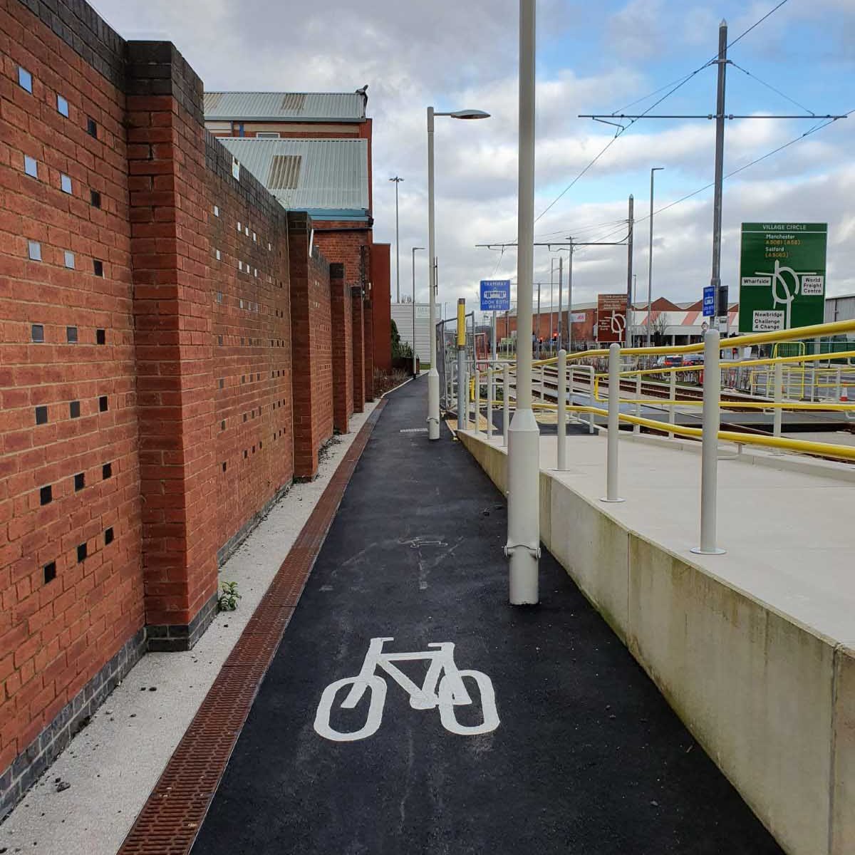 The existing cycleway ends at Barton Square, where a new route has been realigned to make way for the Metrolink stop and lines. This is mostly a bidirectional cycleway, with the usual sections of shared use paths and crossings across the tram tracks. This section is actually mostly good. There’s definitely ways it could be improved, but on the whole it works.