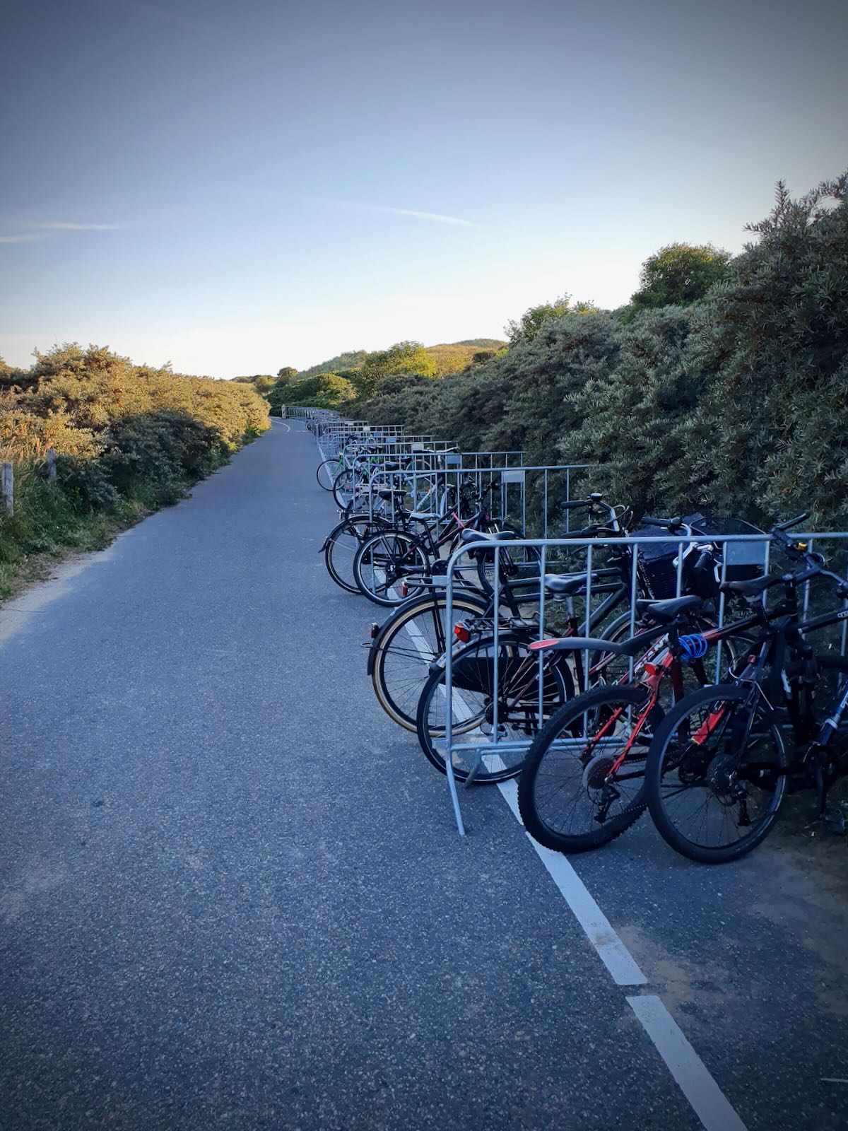 As you approach the beach, you start to pass the overspill cycle parking, with temporary metal fencing for people to lock their cycles to. It’s easy to see why this has been added, as the main cycle parking tends to get pretty busy.