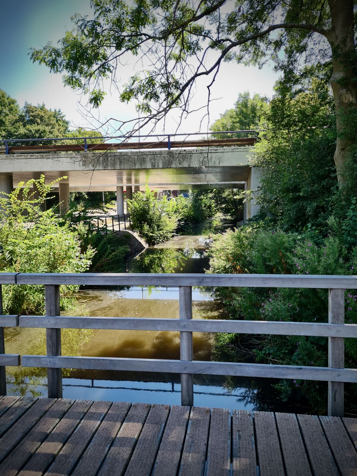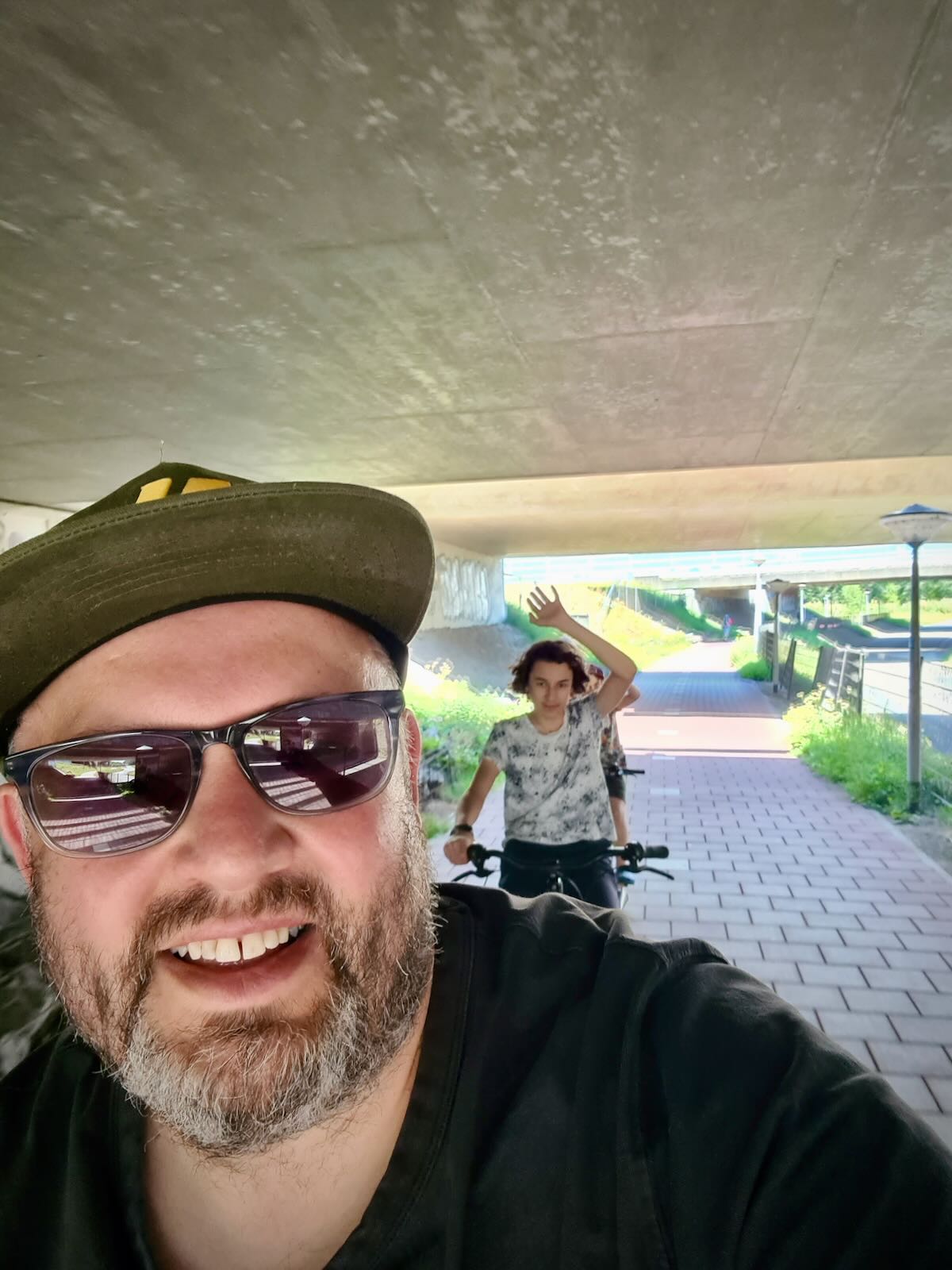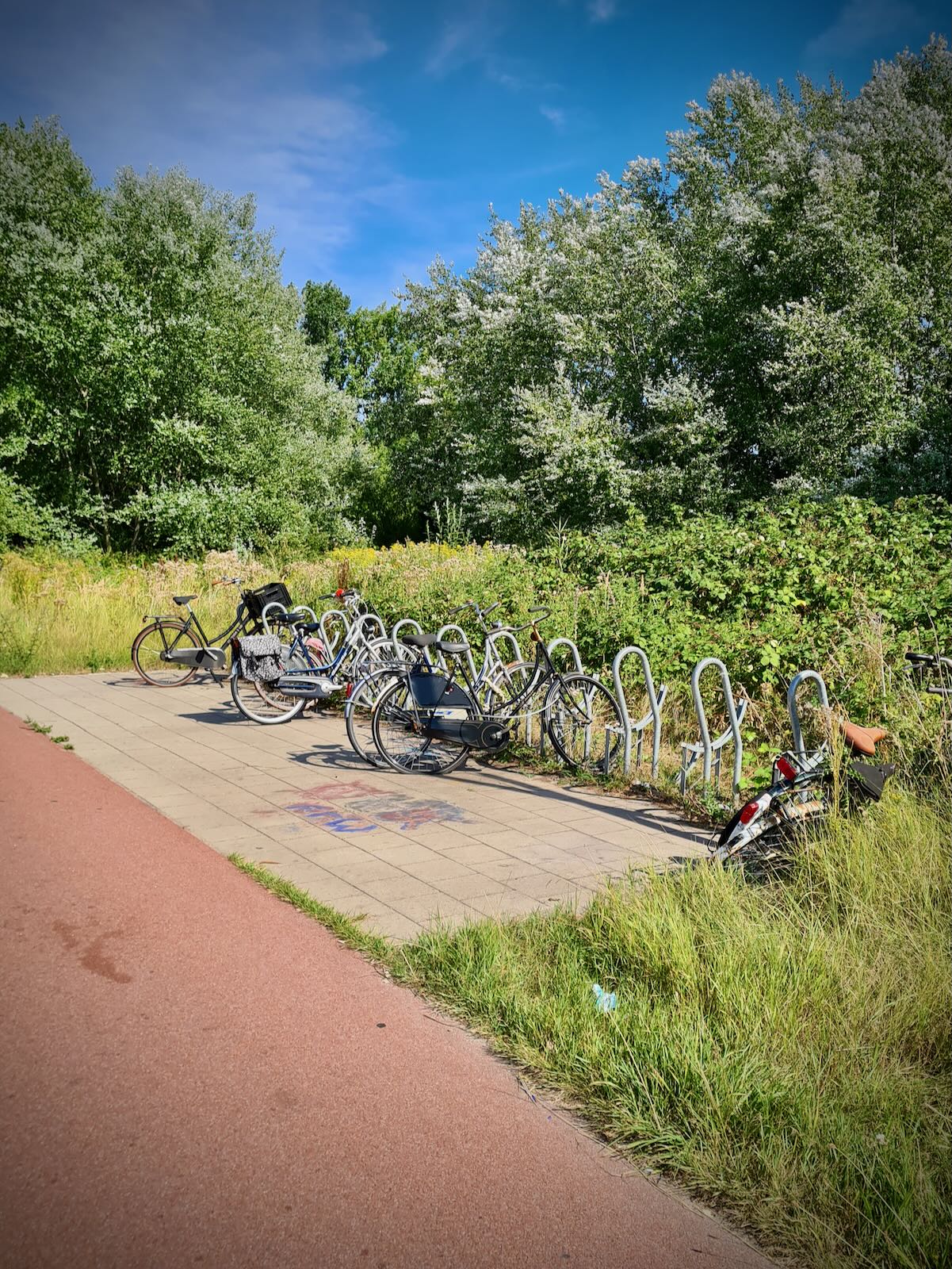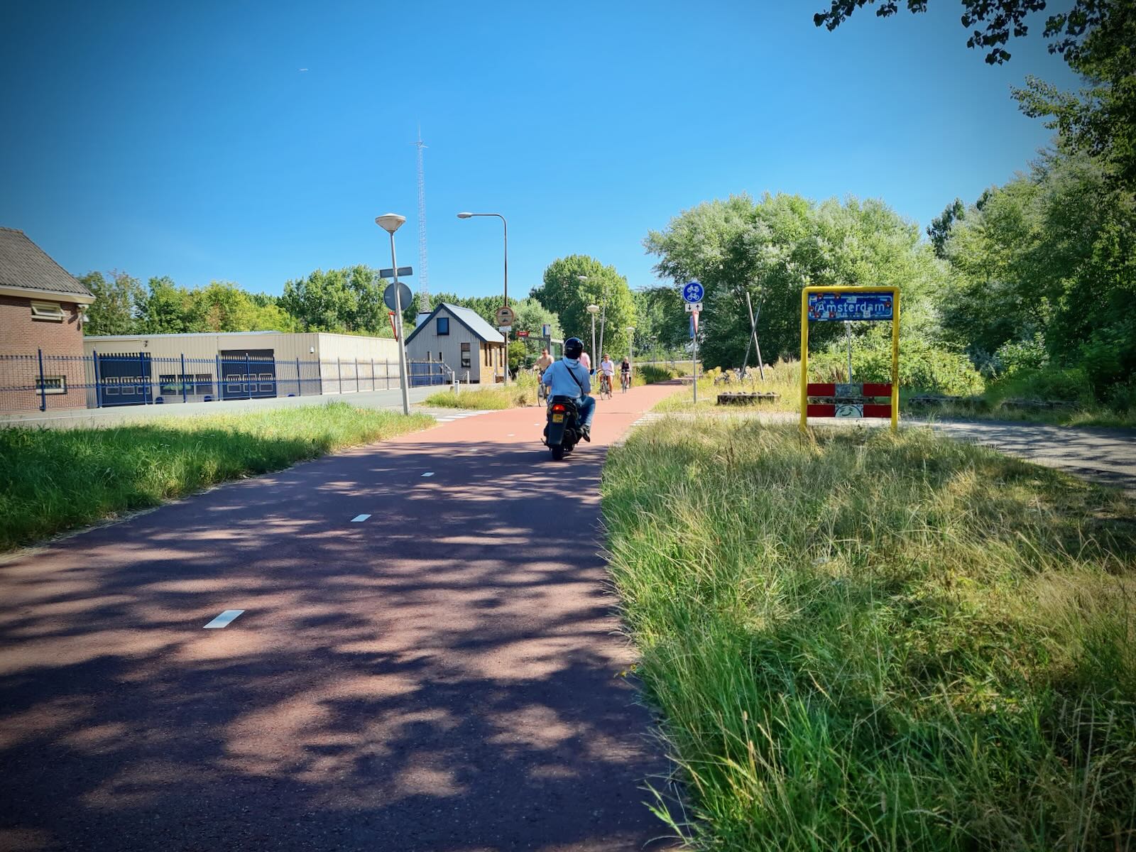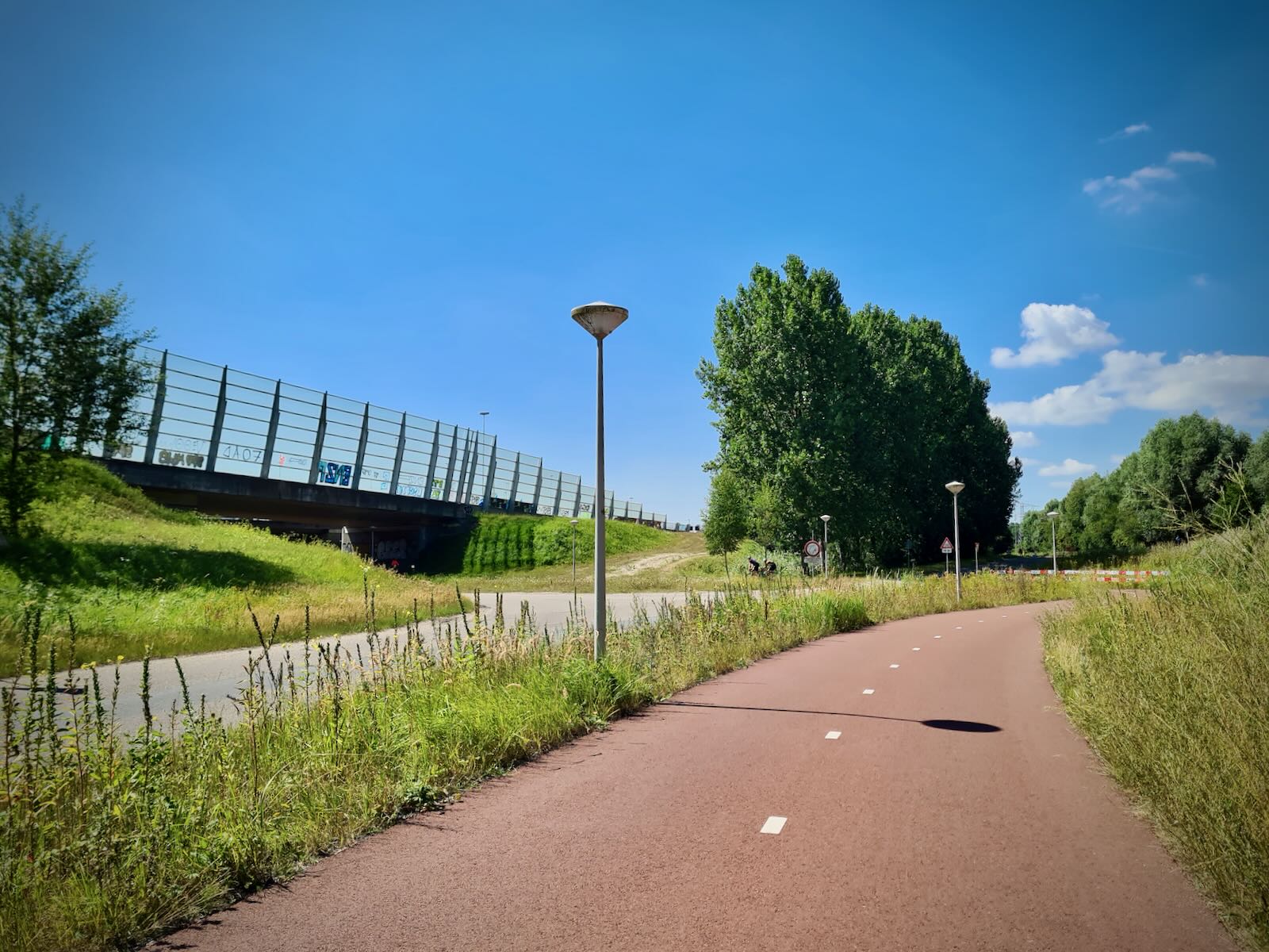 Soon, we reached the A8 motorway, where the cycle path runs alongside for a little while. At the point where the A8 joins the A10, the cycle path heads under the motorway. This could have been a dark and dangerous underpass, but this is The Netherlands, so it’s light and open, with clear lines of sight through to the other side.