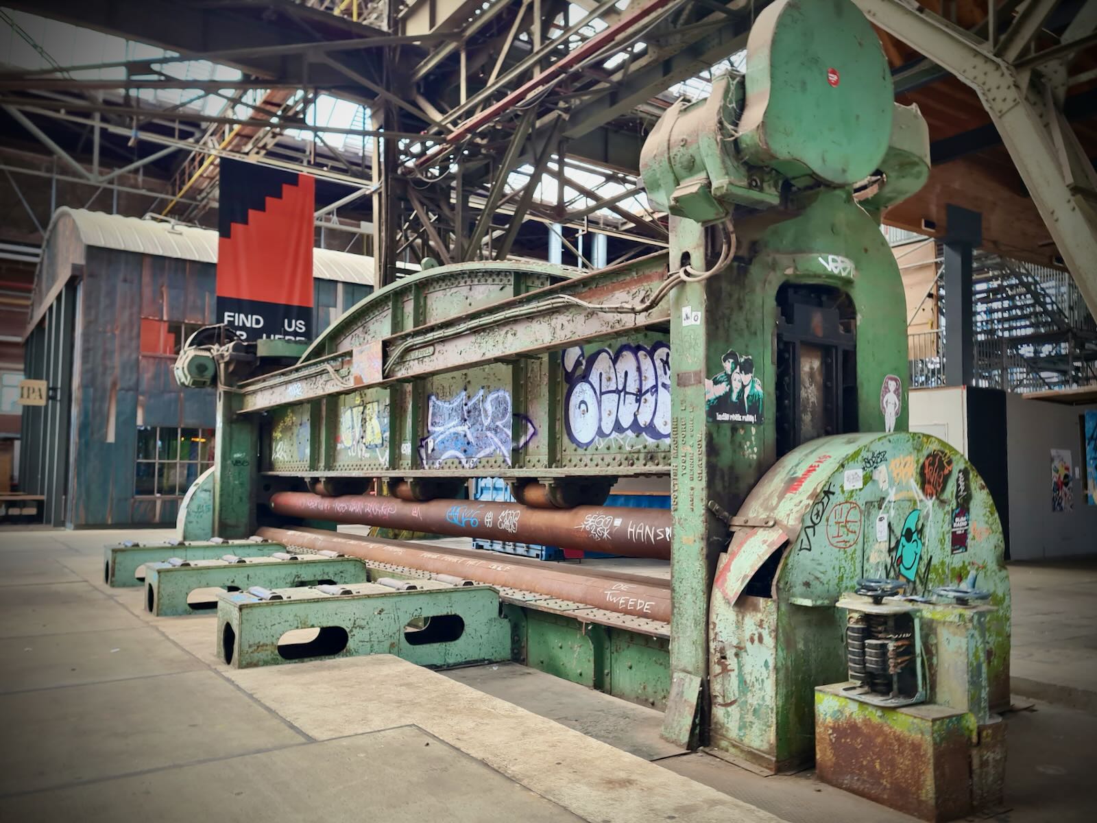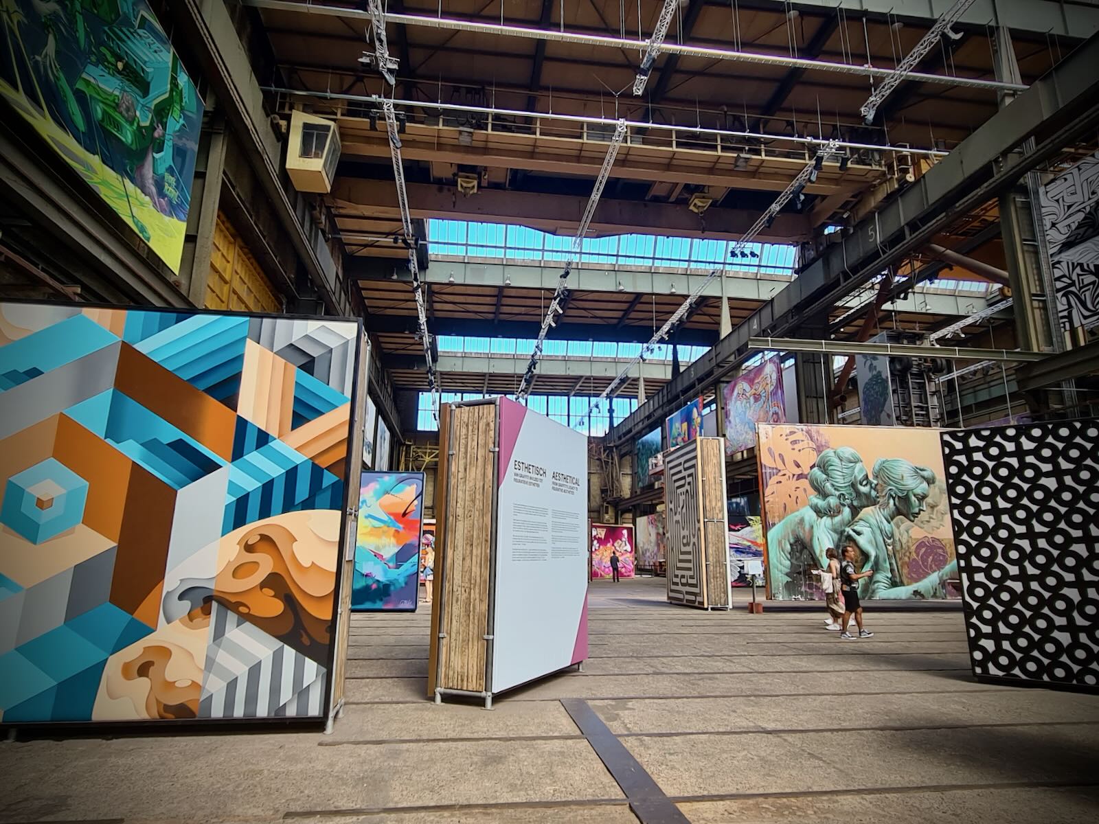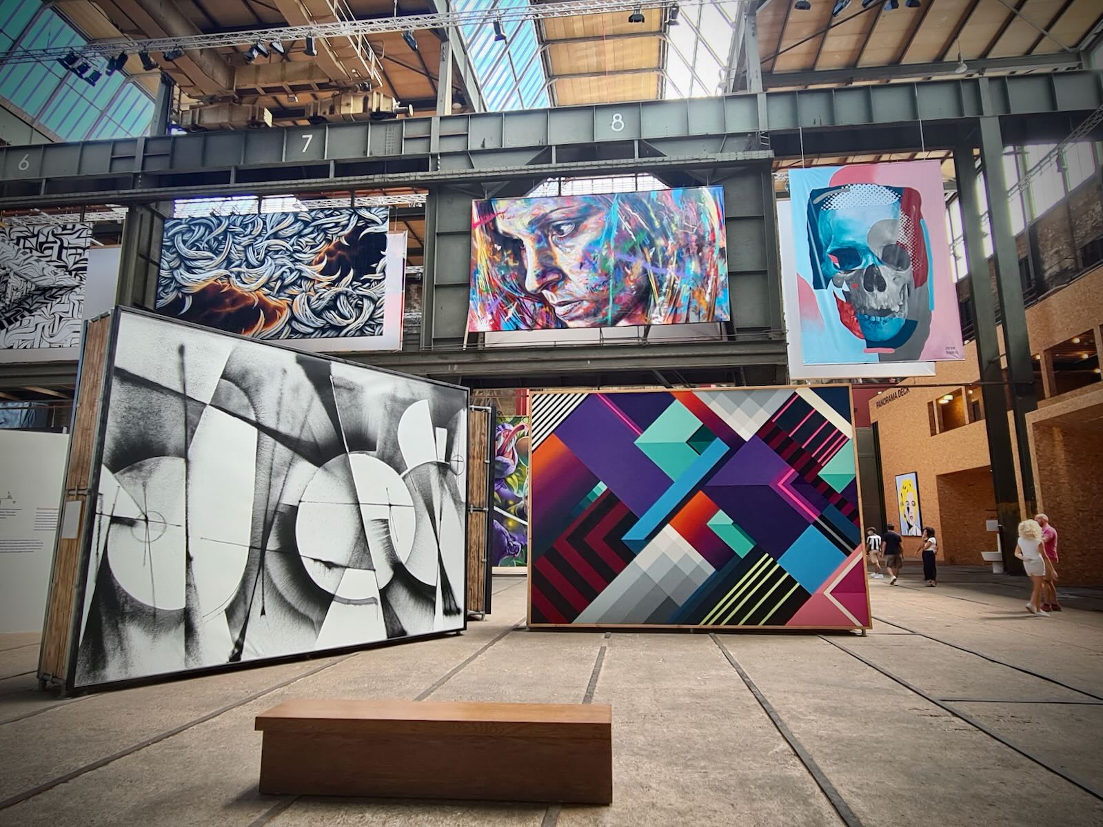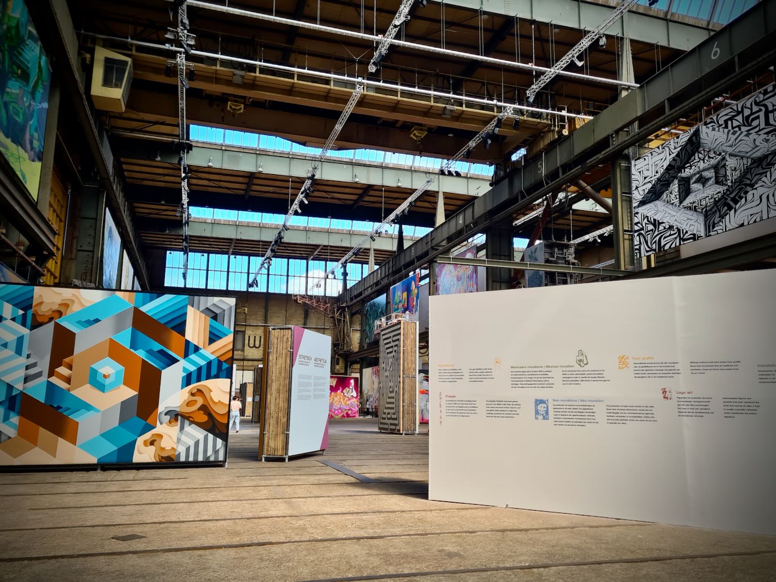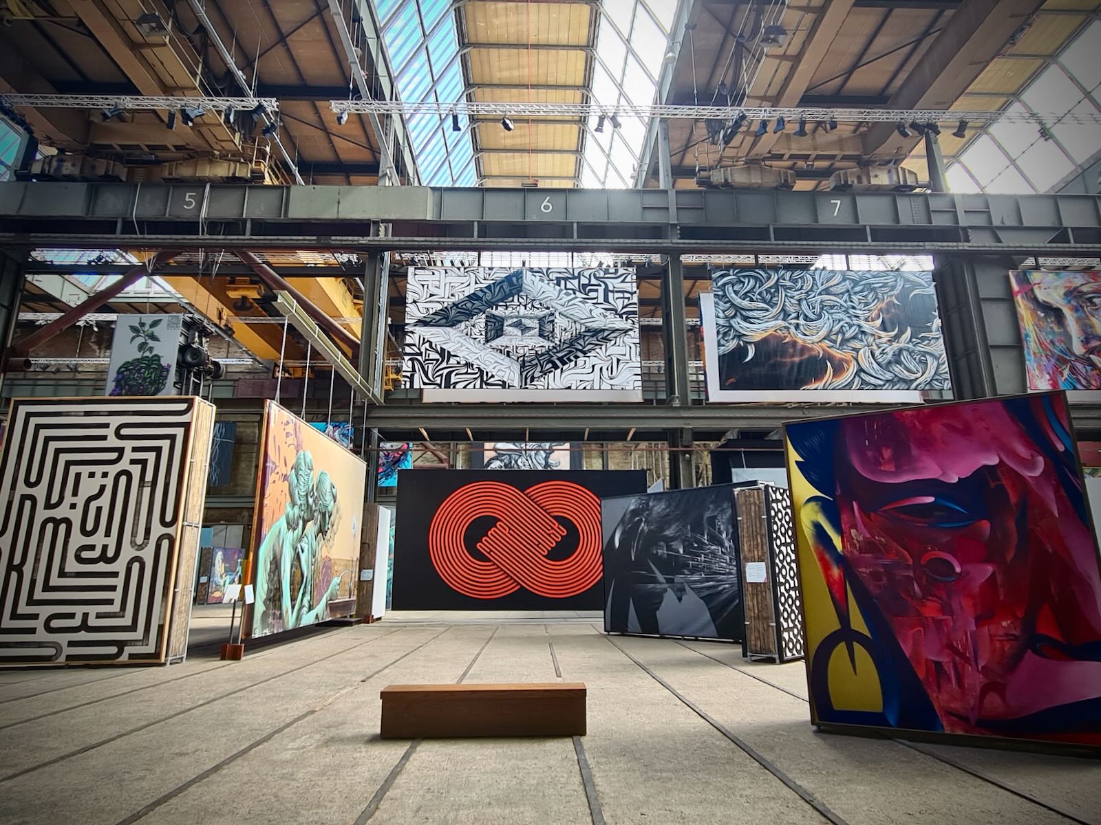 STRAAT is located in an 8000 m2 former warehouse at NSDM, which provides a fantastic backdrop for the artwork, particularly with the industrial fittings, such as the huge ceiling mounted cranes as well as a Luton van. The artwork is bathed in natural light, particularly on a sunny day, like today.