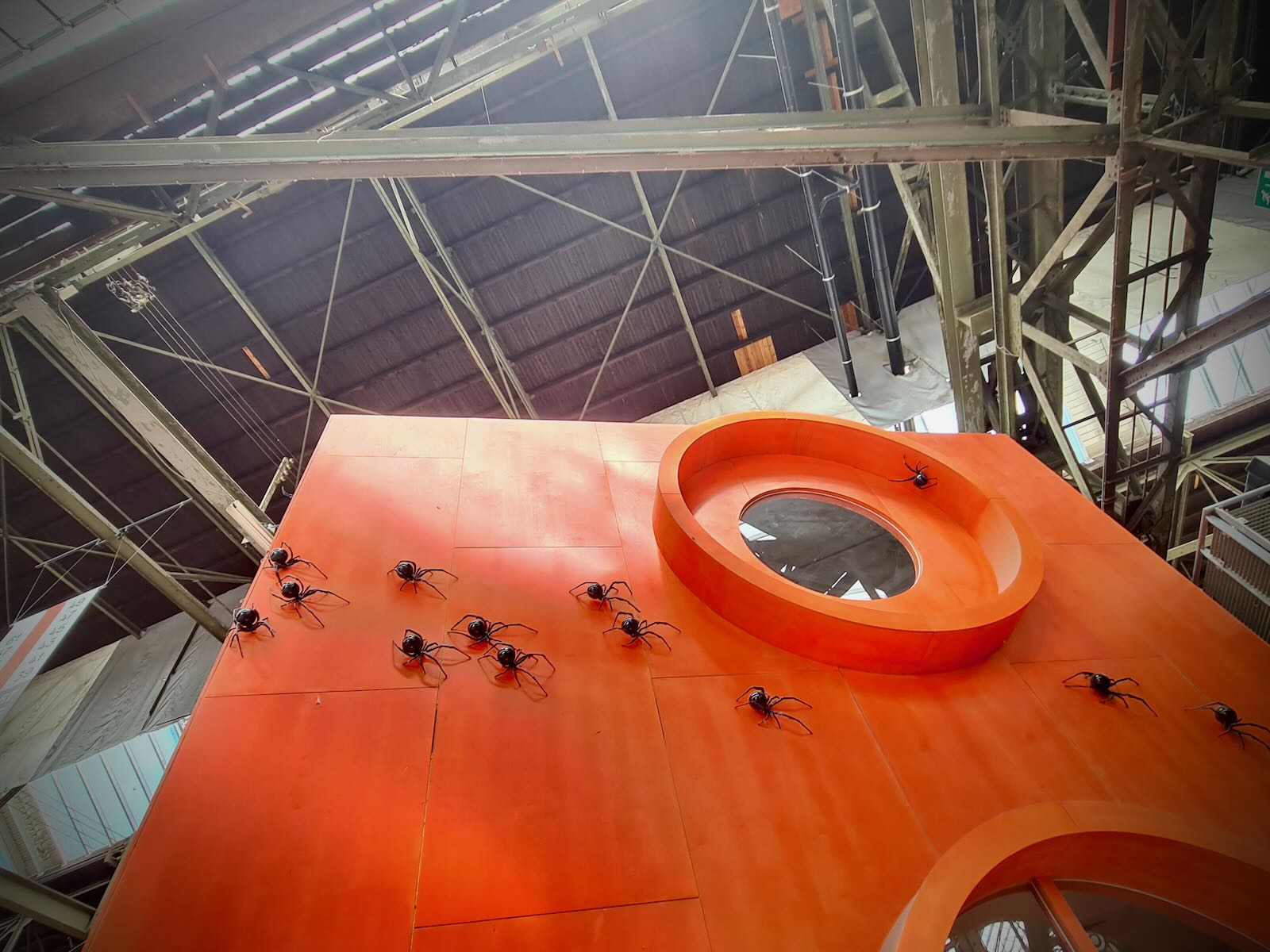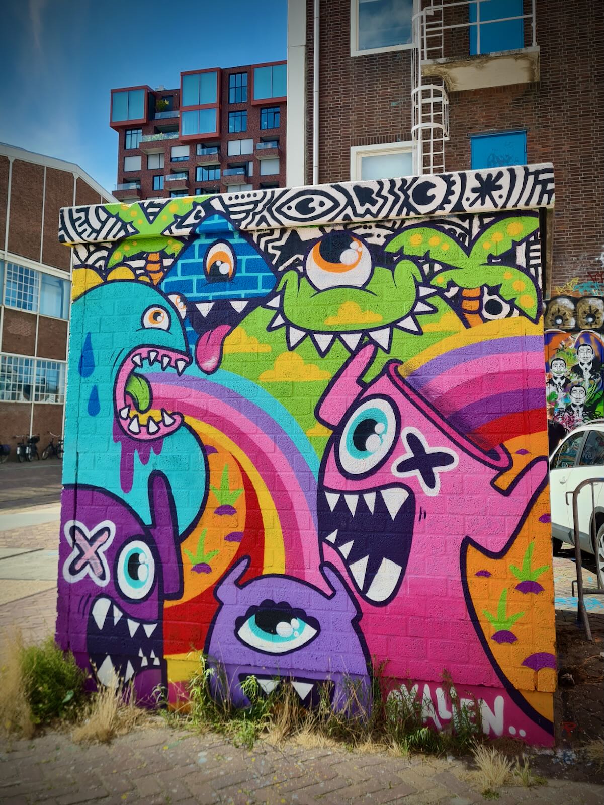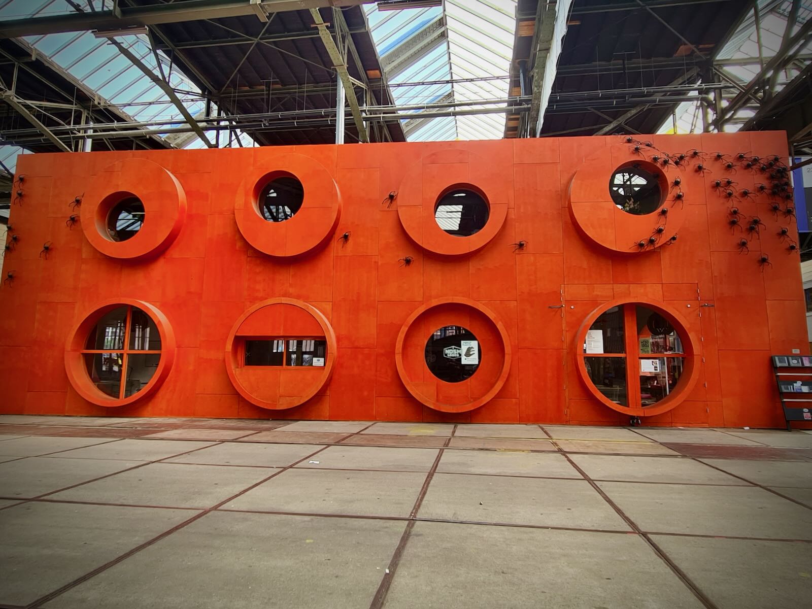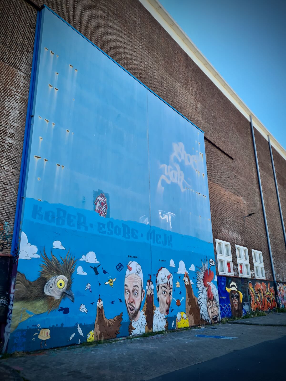 STRAAT is located in an 8000 m2 former warehouse at NSDM, which provides a fantastic backdrop for the artwork, particularly with the industrial fittings, such as the huge ceiling mounted cranes as well as a Luton van. The artwork is bathed in natural light, particularly on a sunny day, like today.