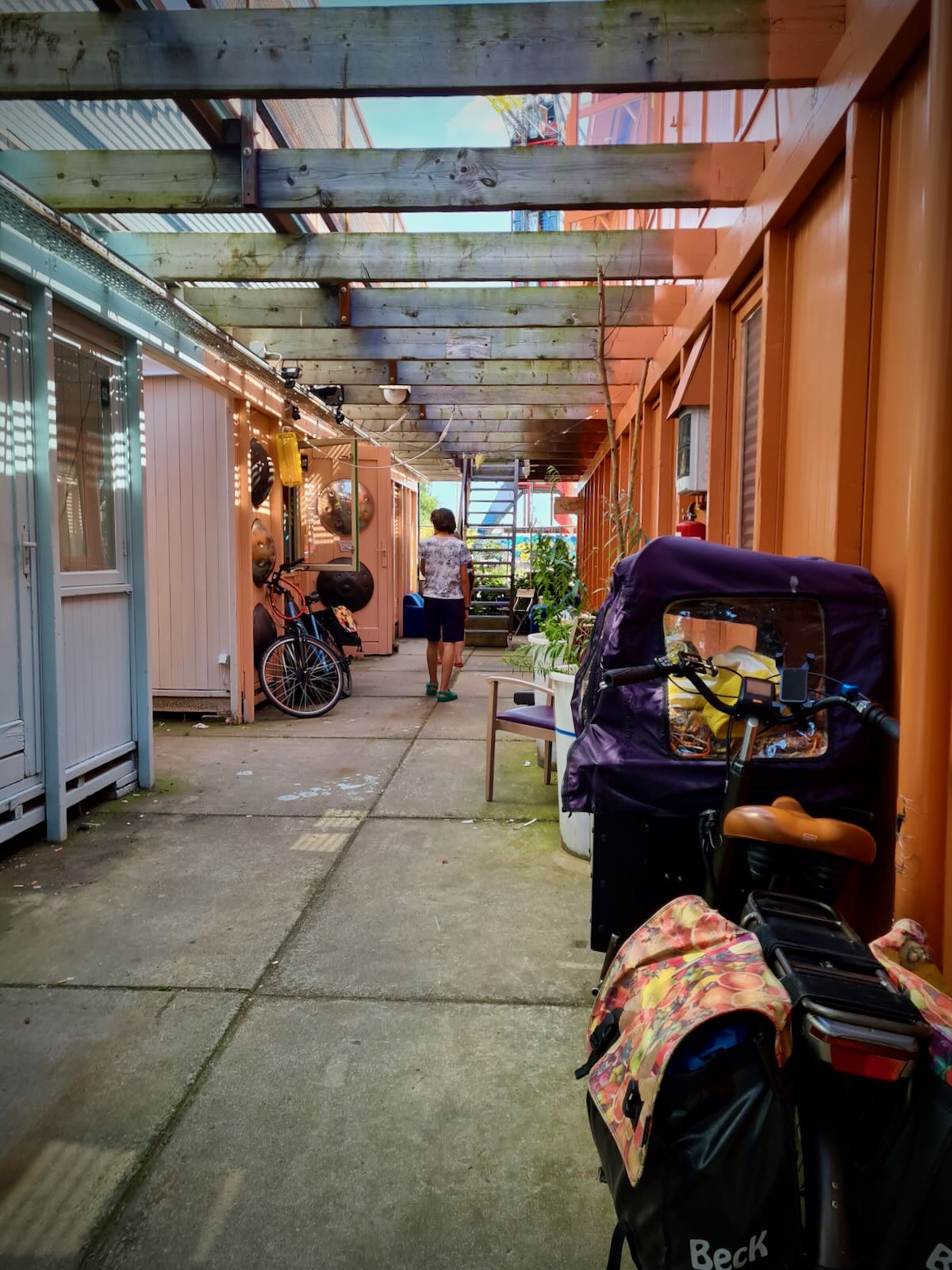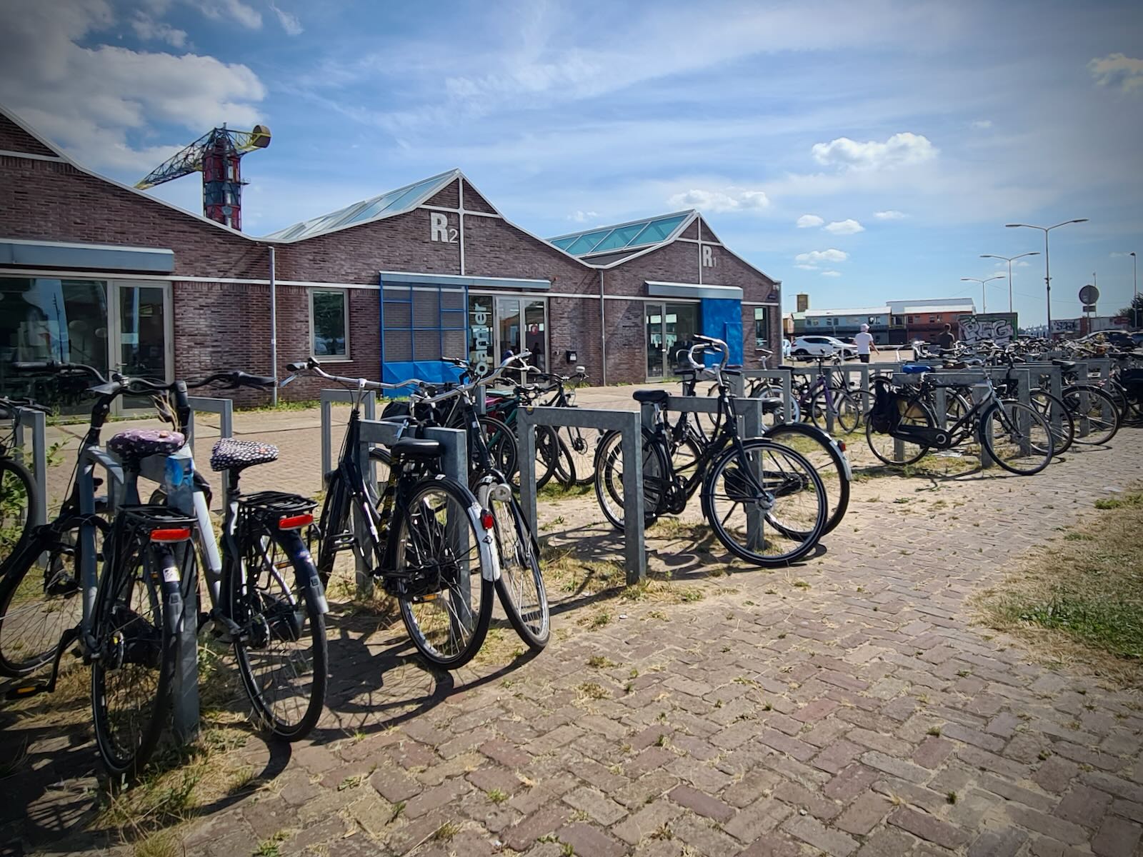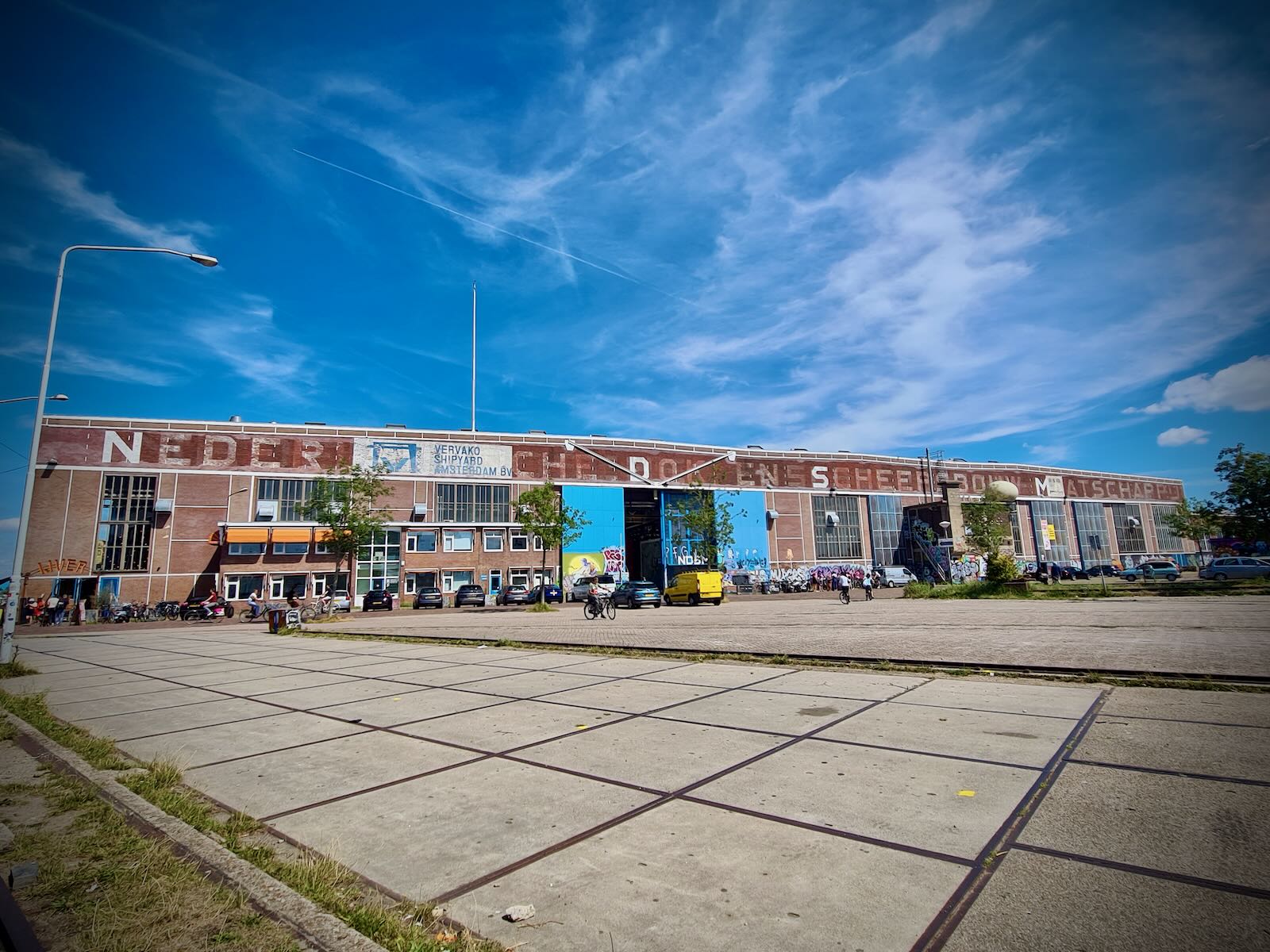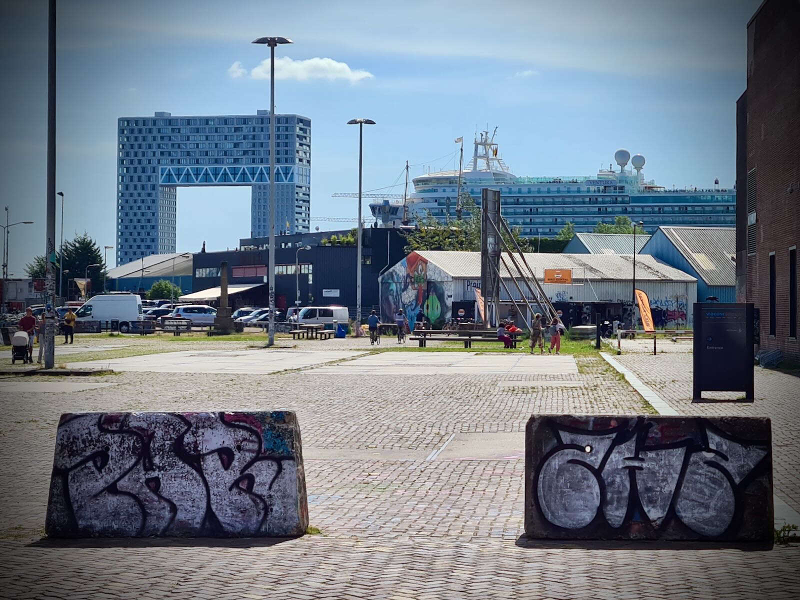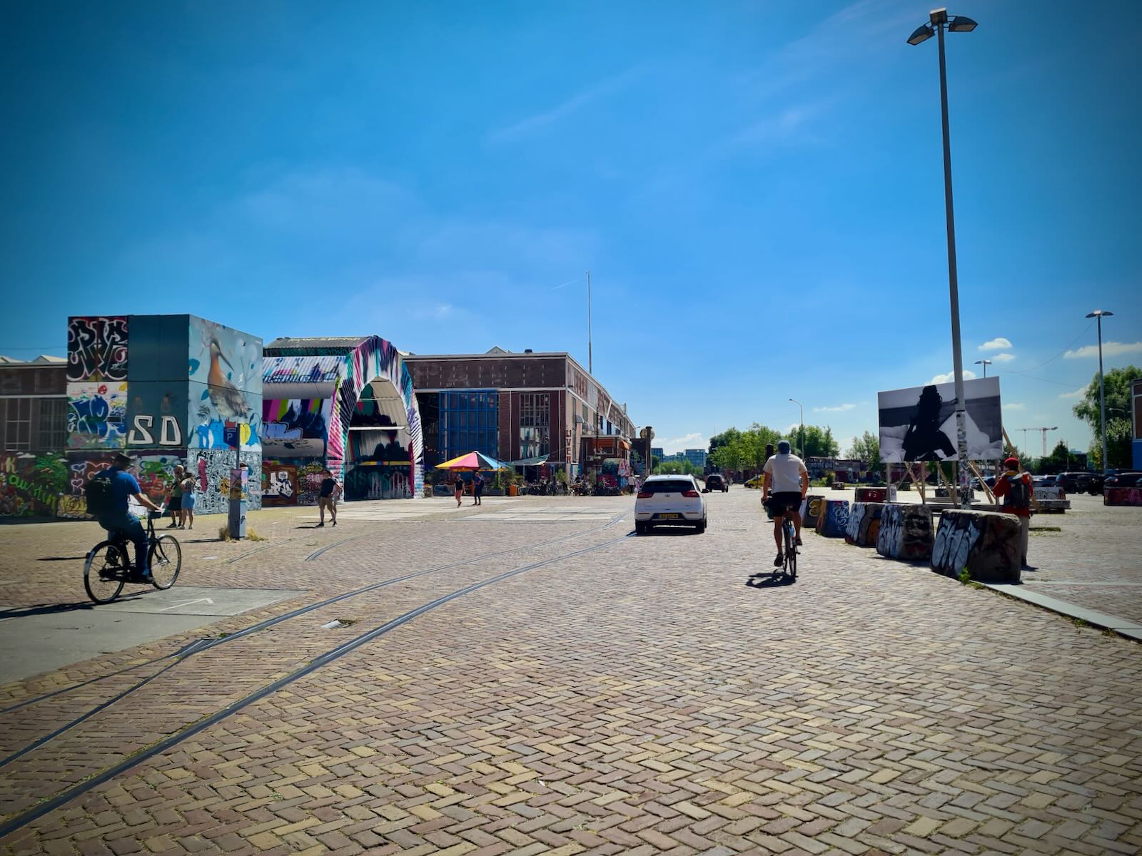 After arriving in NDSM, we had a ride around NDSM-Plein to check things out. While the streets are wide, due to the area’s previous use, there’s we saw very few cars, and lots of people wandering about, on foot or bike.