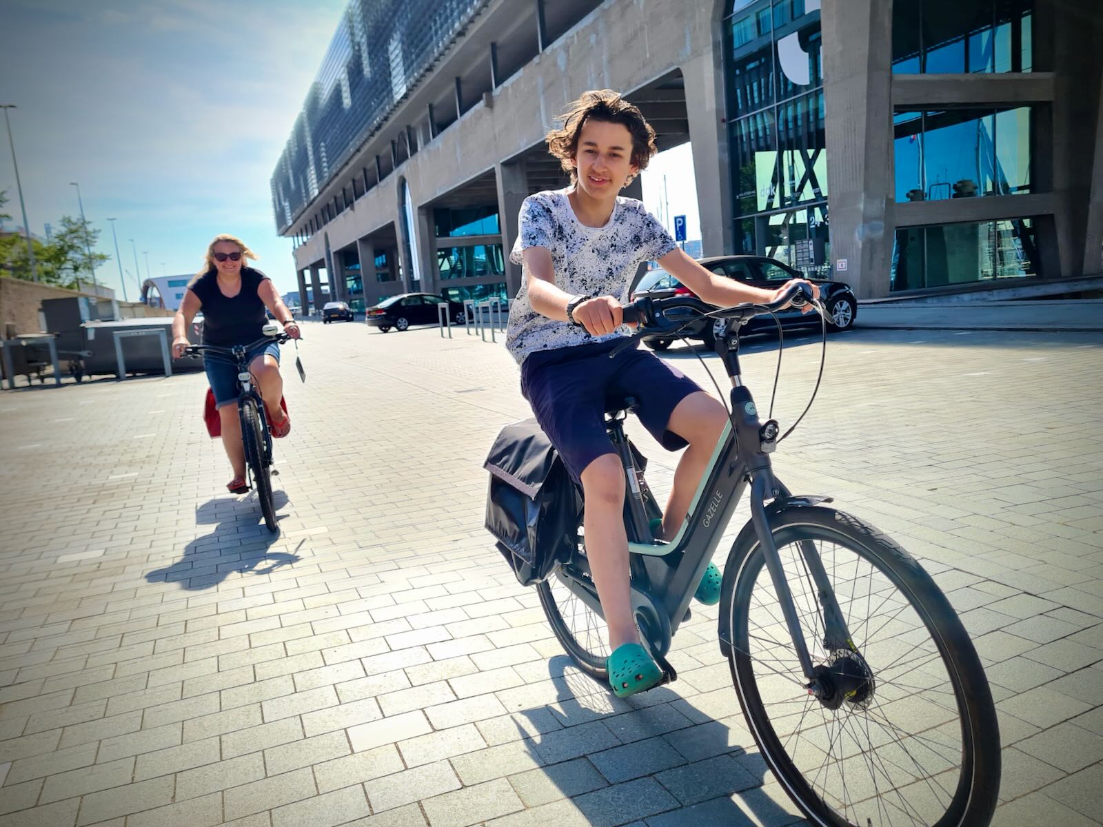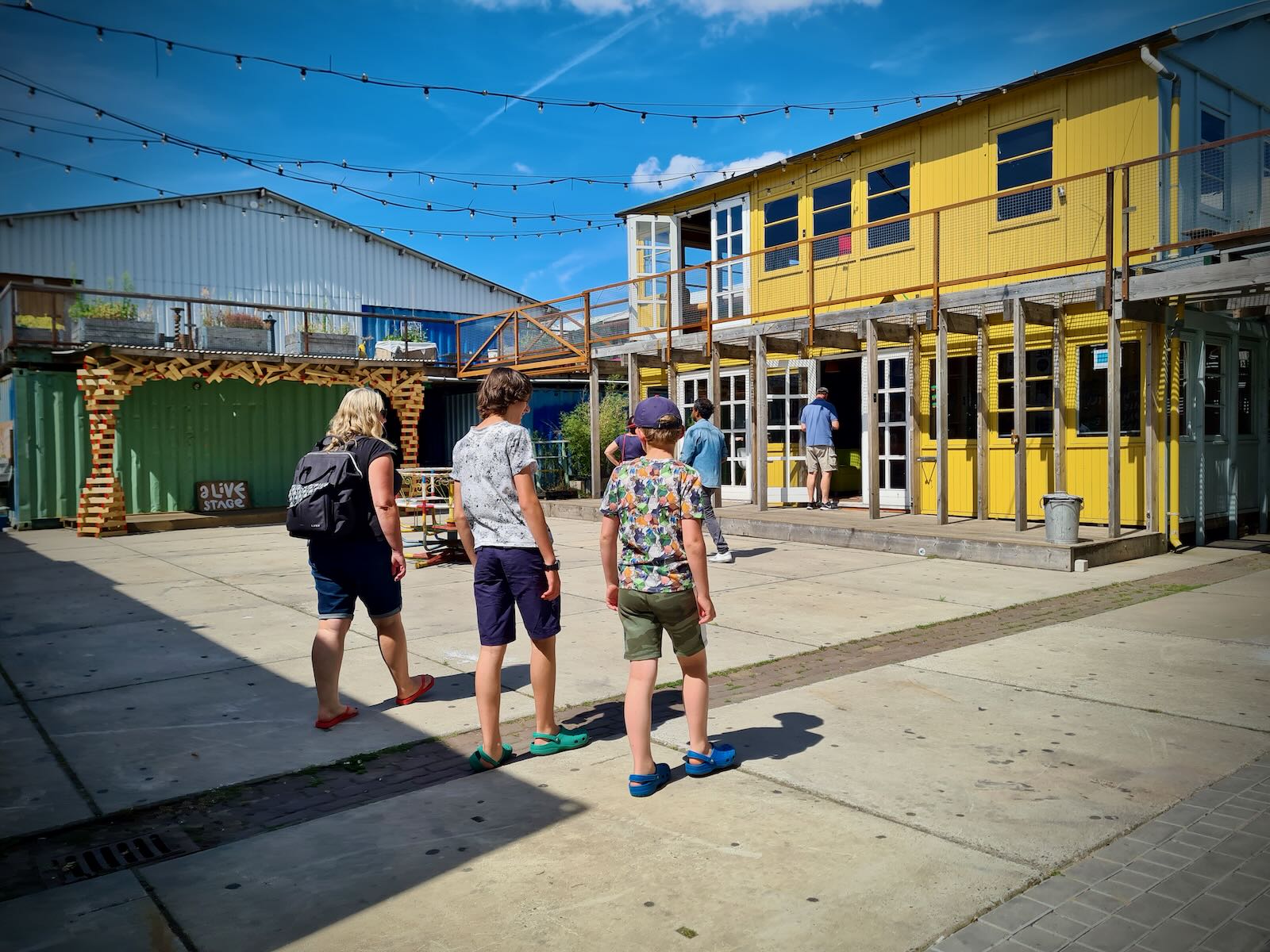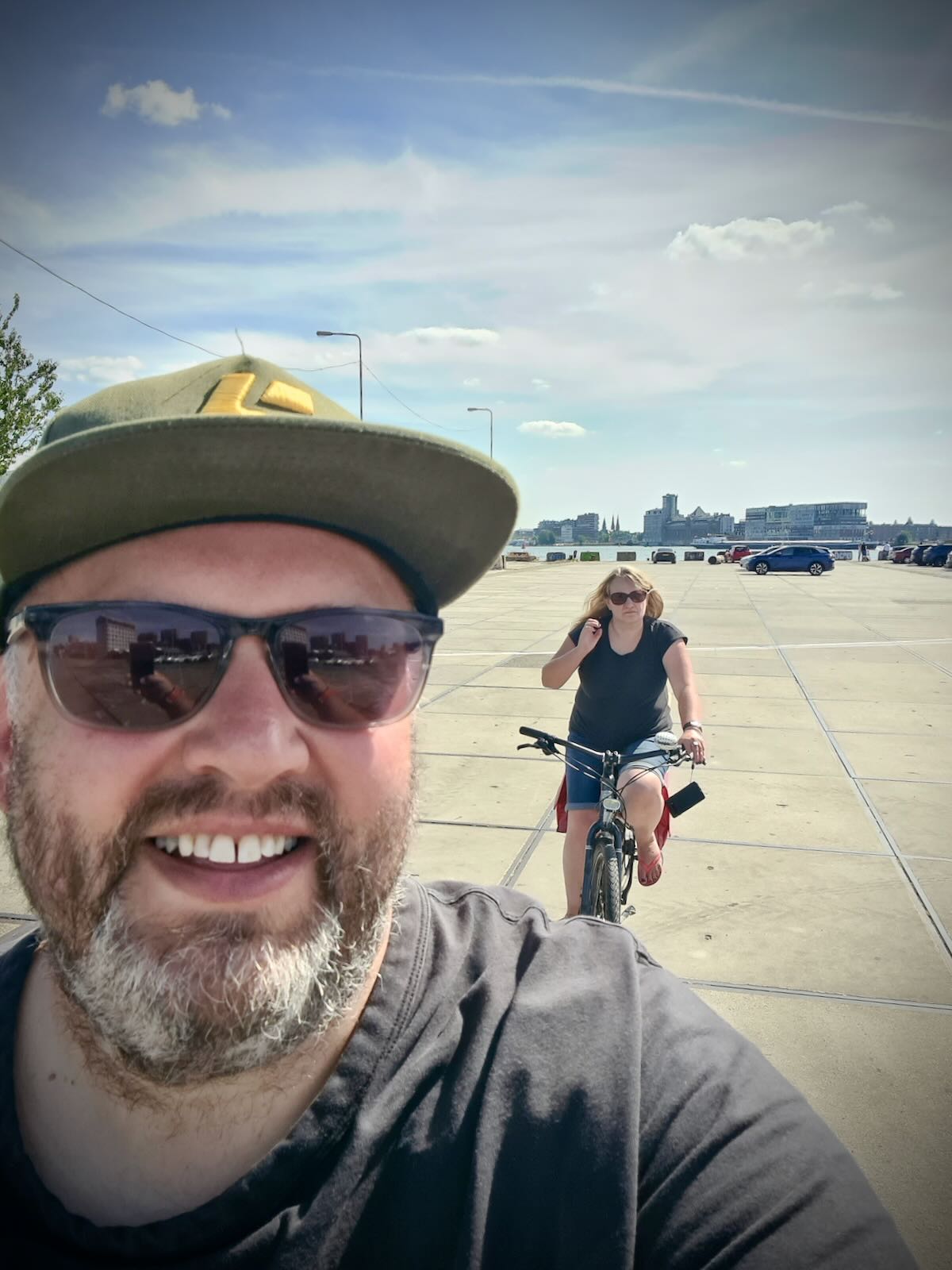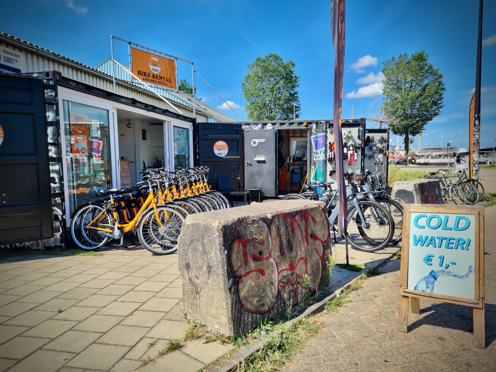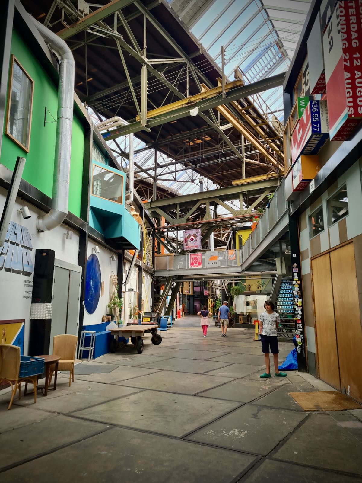 After arriving in NDSM, we had a ride around NDSM-Plein to check things out. While the streets are wide, due to the area’s previous use, there’s we saw very few cars, and lots of people wandering about, on foot or bike.