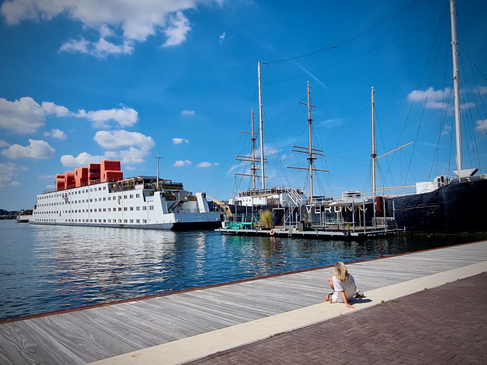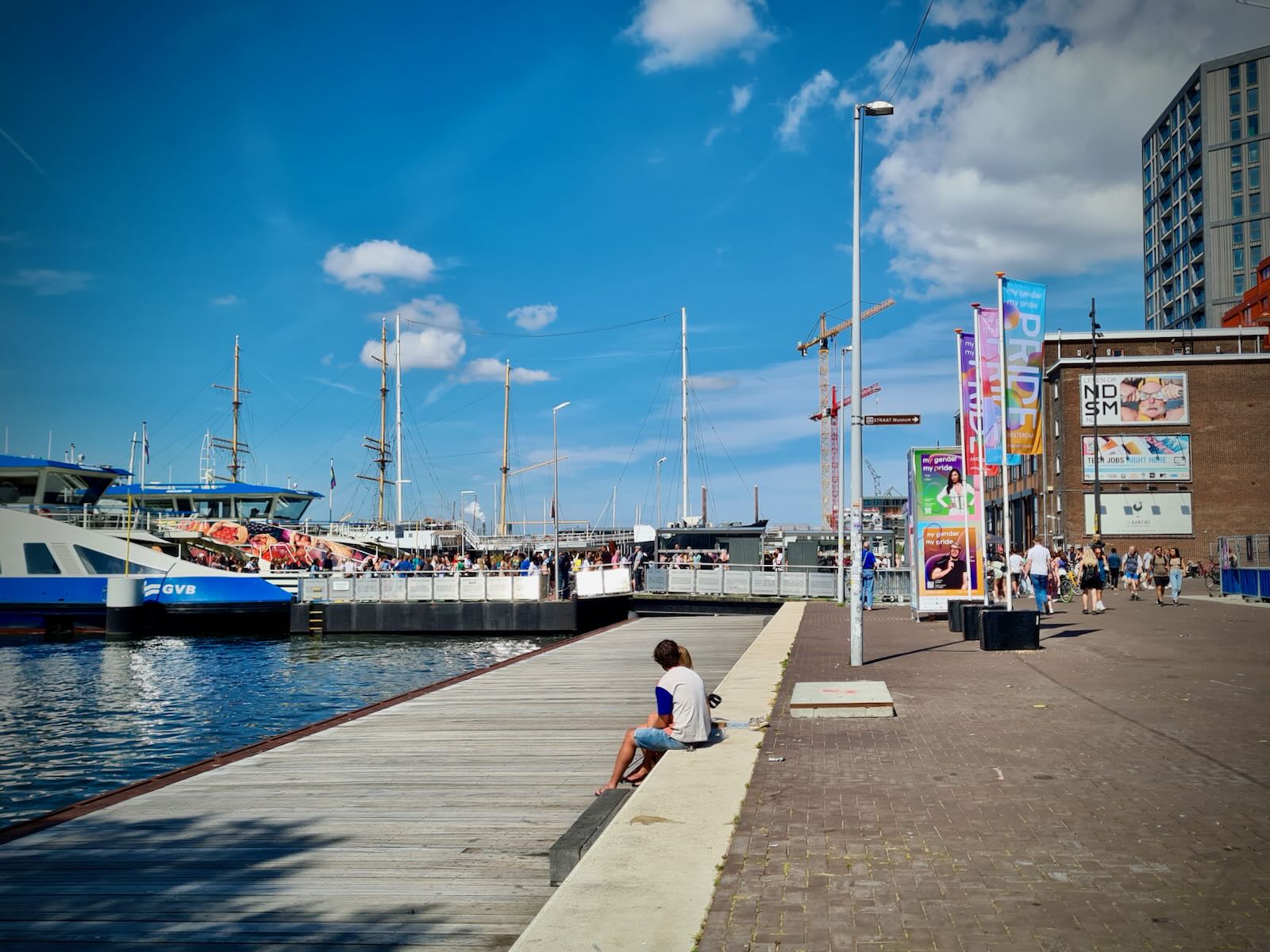 Not far from the crane is the ferry port. From here you can get ferries over to Amsterdam on the other side of the IJ, to either Centraal Station or Pontsteiger. These ferries are for people walking or cycling and are free to use. They run regularly throughout the day, until close to midnight. We’d end up making use of the ferry during our stay.