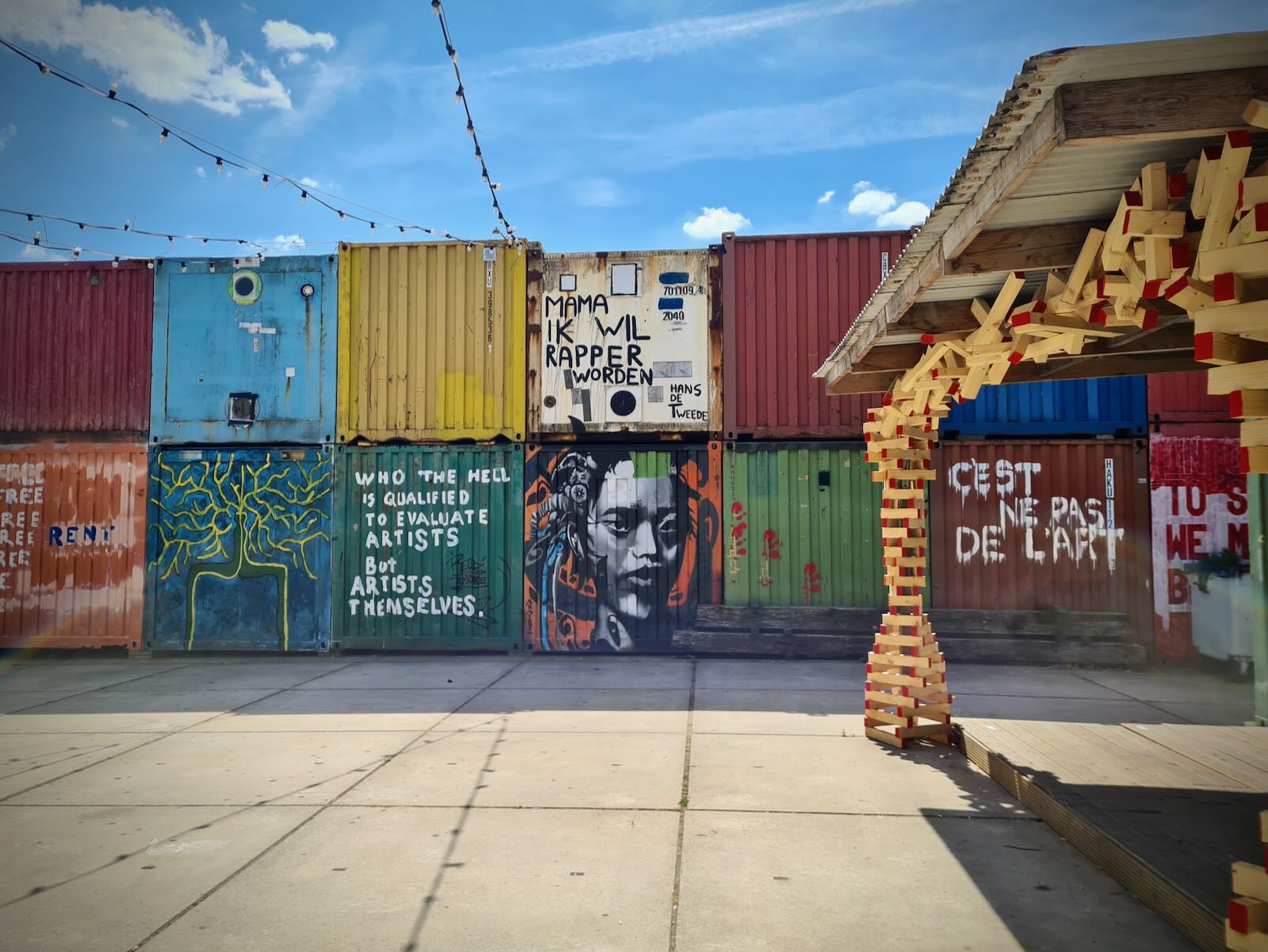 Behind Pllek is Treehouse NDSM, a village of artist studios, with a central square. The studios are either shipping containers or cabins, and are relatively small at 13-14 square metres.