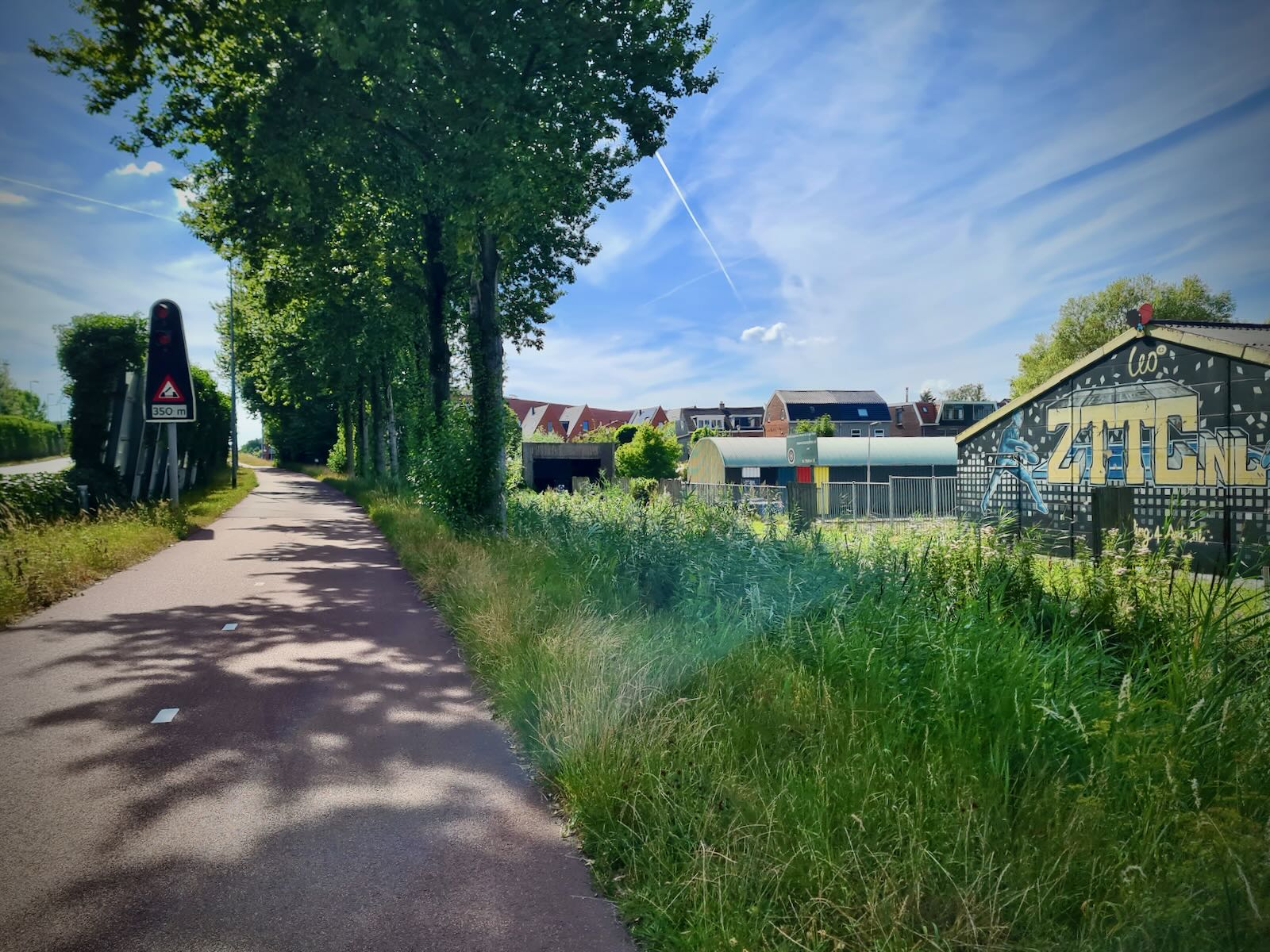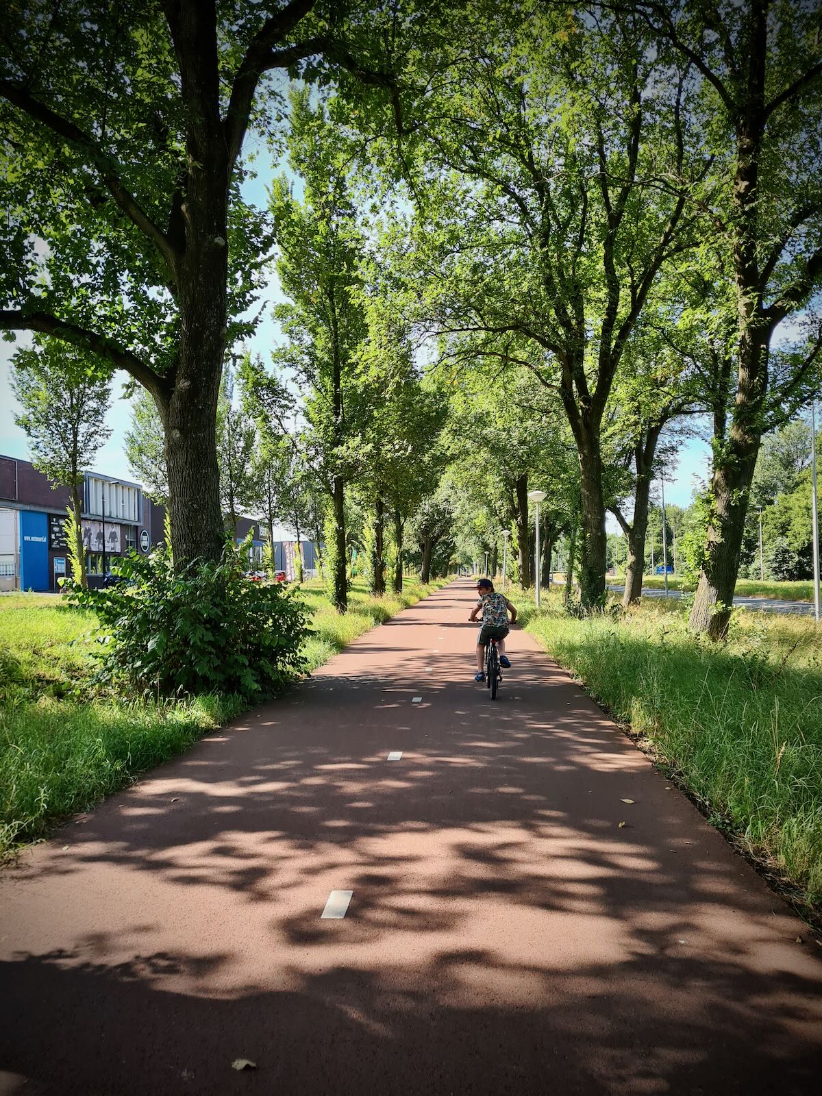 Once on the other side of the A10 motorway, we soon got on the cycle path running parallel to the S118. Again, this was a nice wide and smooth two-way cycle path. As we carried on, we passed many commercial units, while taking advantage of the shade the tree cover gave us.
