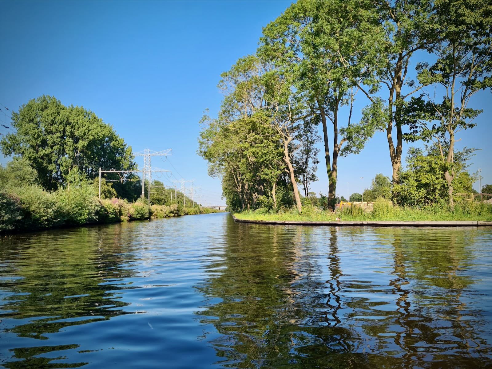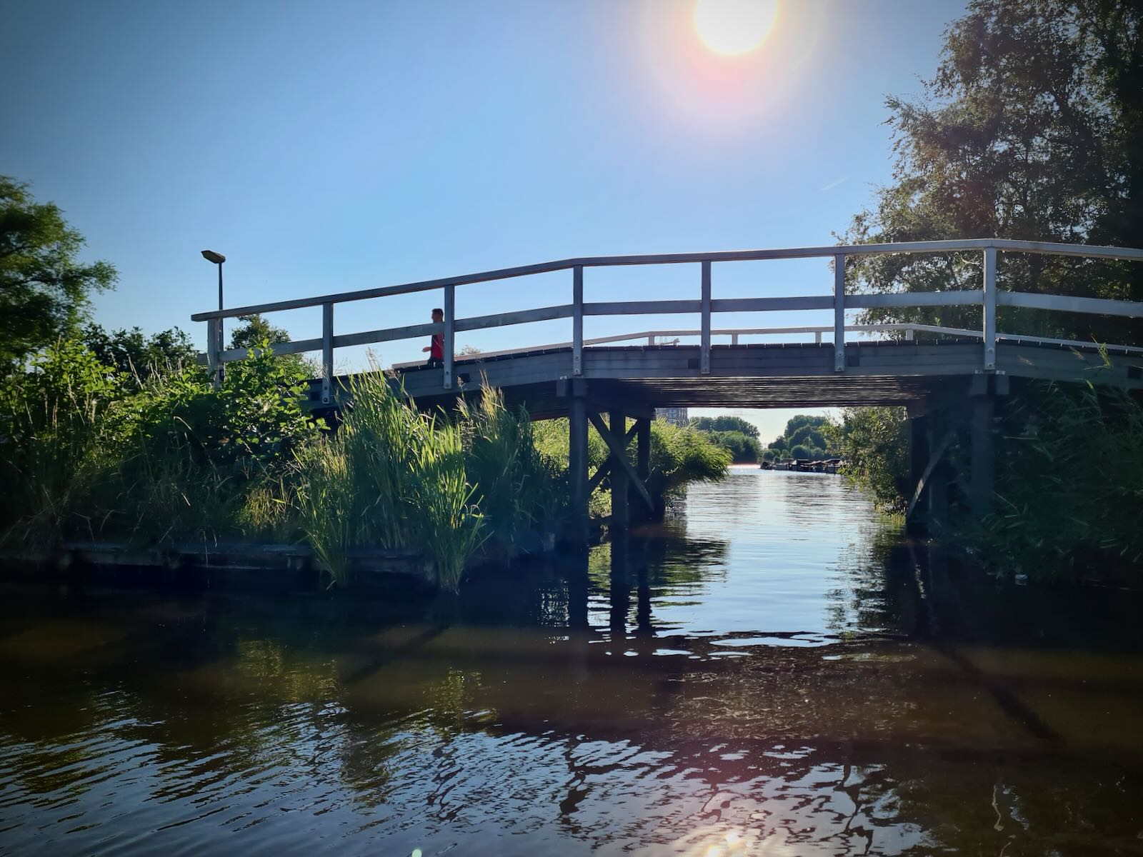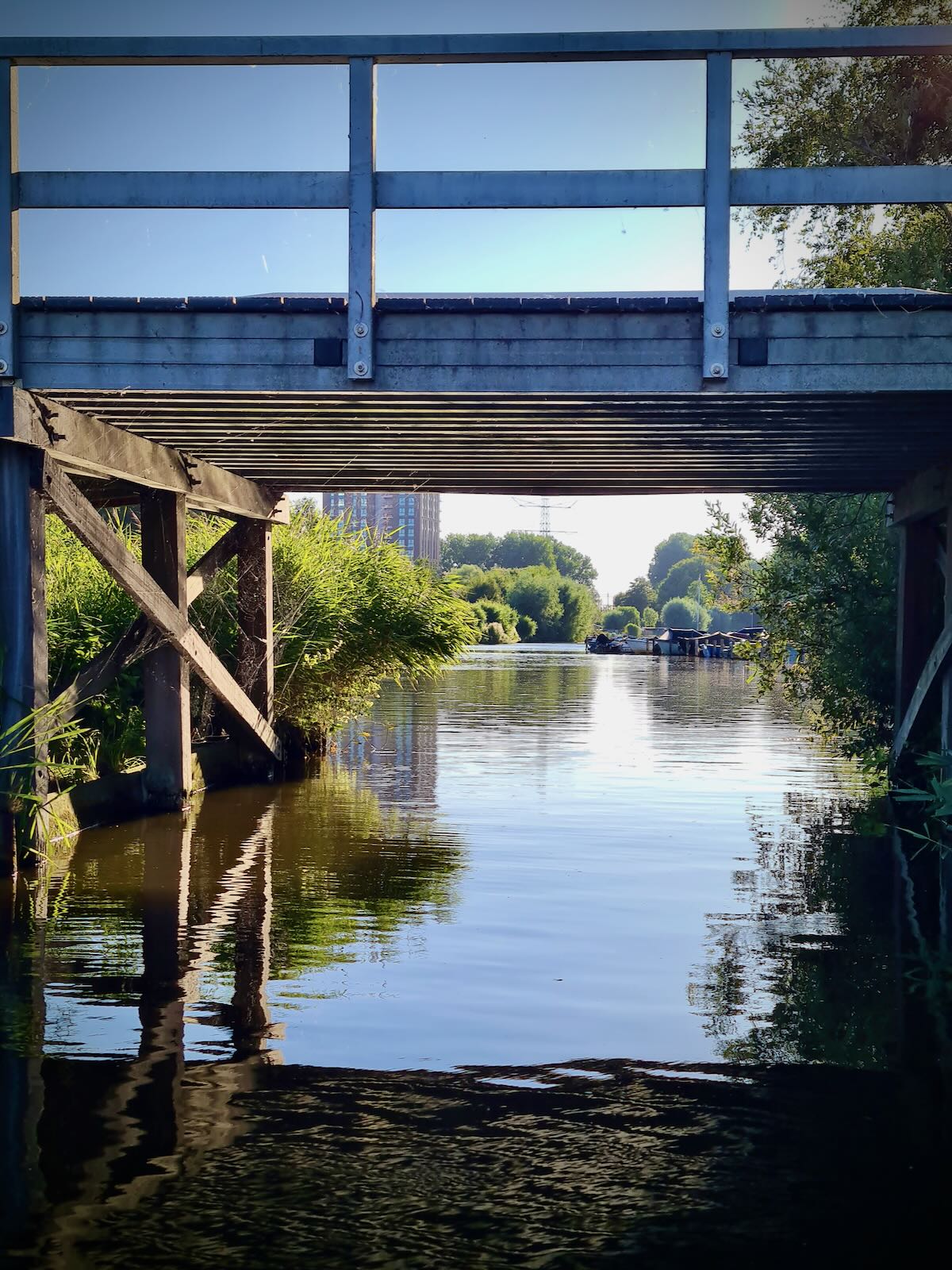 Heading north, we initially went through a largely residential area, passing under a walking and cycling bridge, then under Vermiljoenweg. The Gouw then opened up as we approached the area around Burgemeester In ‘t Veldpark park. At this point, there’s some lovely views of the river, with multiple walking and cycling bridges going across.