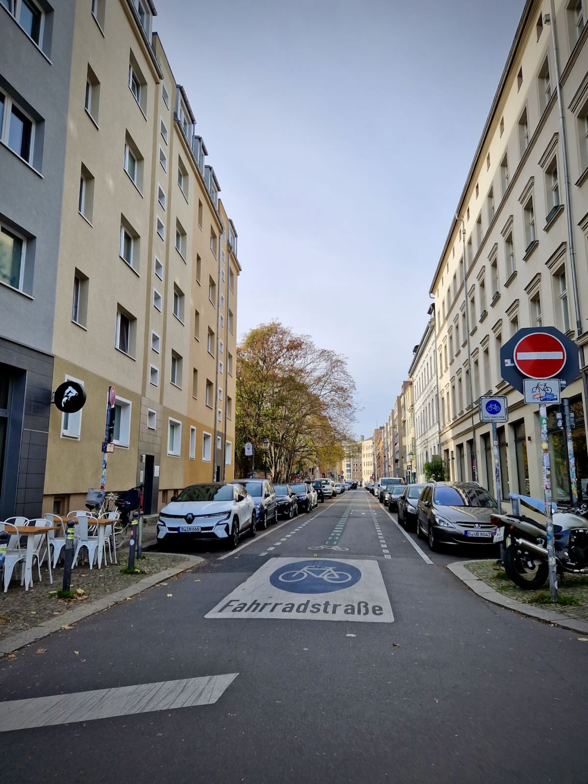 These streets do tend to have a lot of parked cars on, as nearly every street in Berlin does, but there wasn’t much evidence of rat-running and traffic speeds were low.