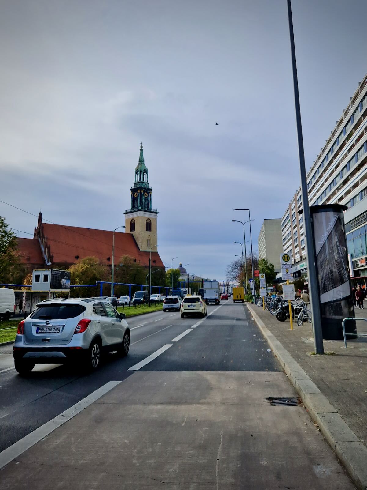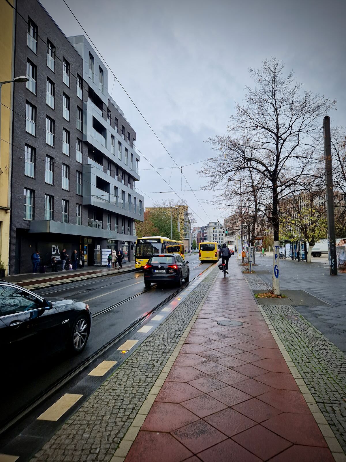 Starting at Rosenthaler Platz, I set off along Torstraße, which is a 6 lane dual carriageway, with no cycling provision, so not a good place to start. I took the opportunity to get off Torstraße and turned onto some of the quieter streets, starting with Linienstraße, which was a much better experience.
