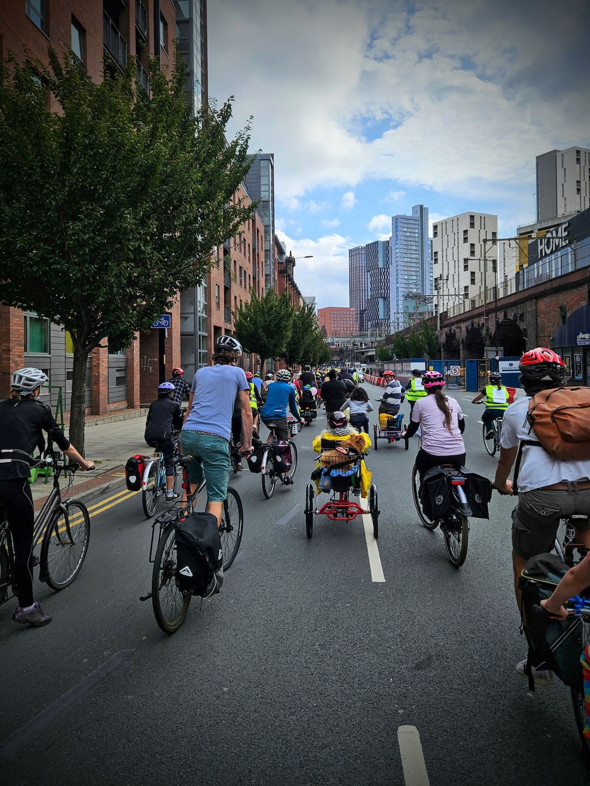This was a different affair to the last Kidical Mass ride I went to, way back in May 2016. The kids were much smaller then, and far more keen on joining me at cycling events. Now they’re a bit older, it’s a bit harder to drag them out on their bikes, so I was solo today.