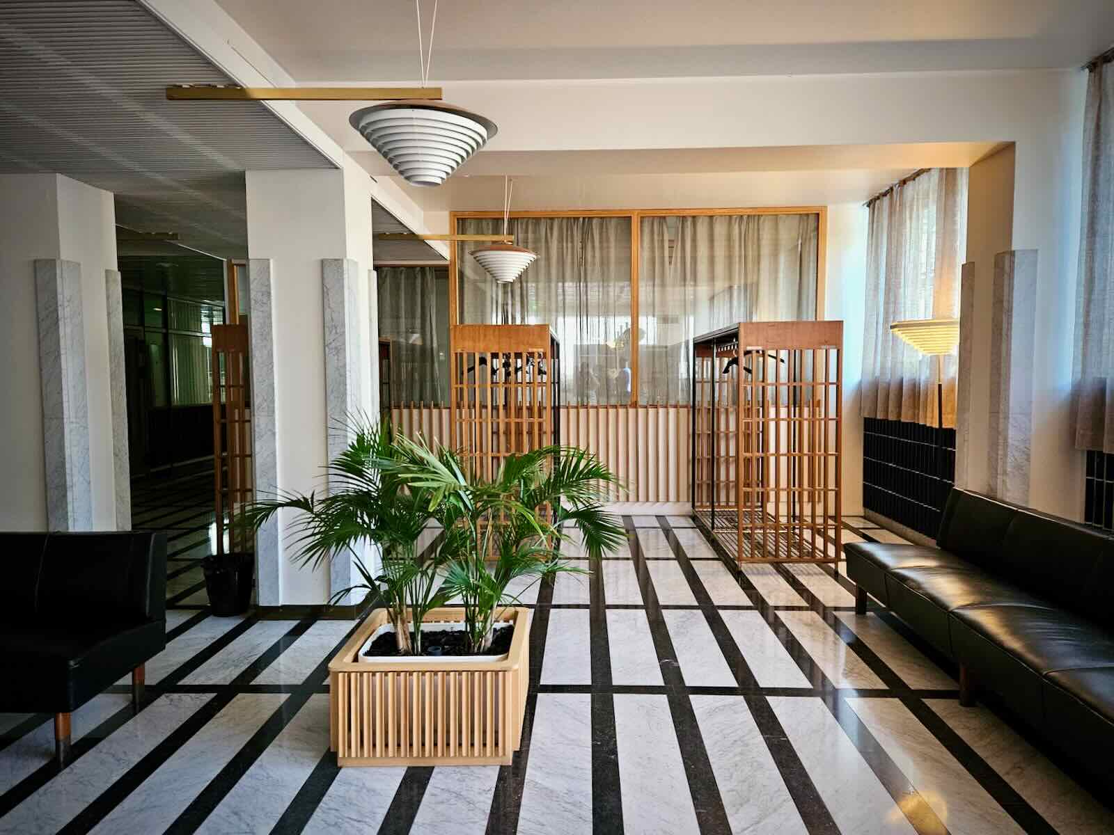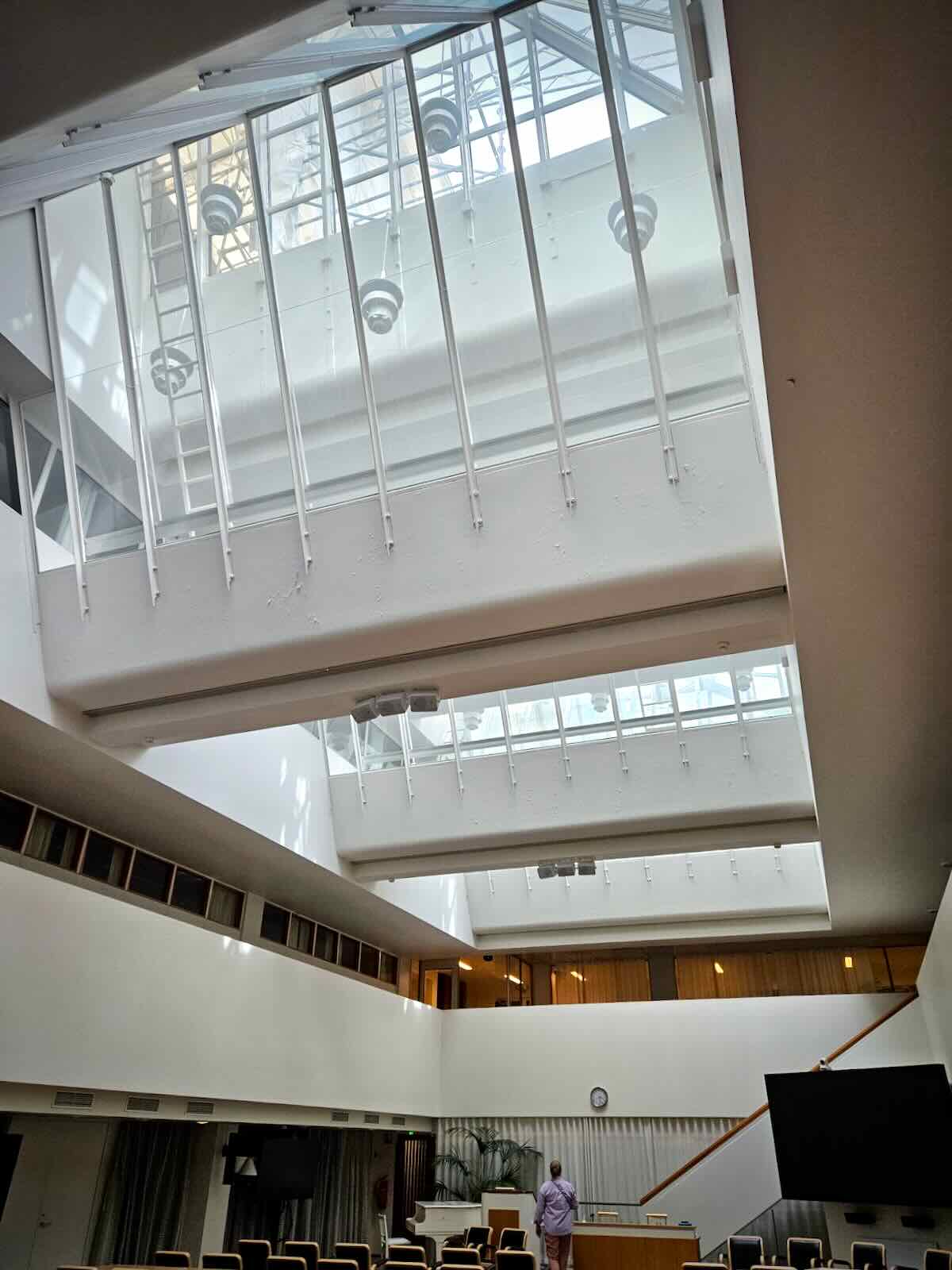 During our 2023 trip to Helsinki, we were lucky enough to get a guided tour of the fantastic Alvar Aalto designed National Pensions Institute. Guided tours happen every Monday at 2pm. These are free, but you do have to book in advance. Our friends had planned ahead and booked us on the tour during our visit, which I was very pleased about.