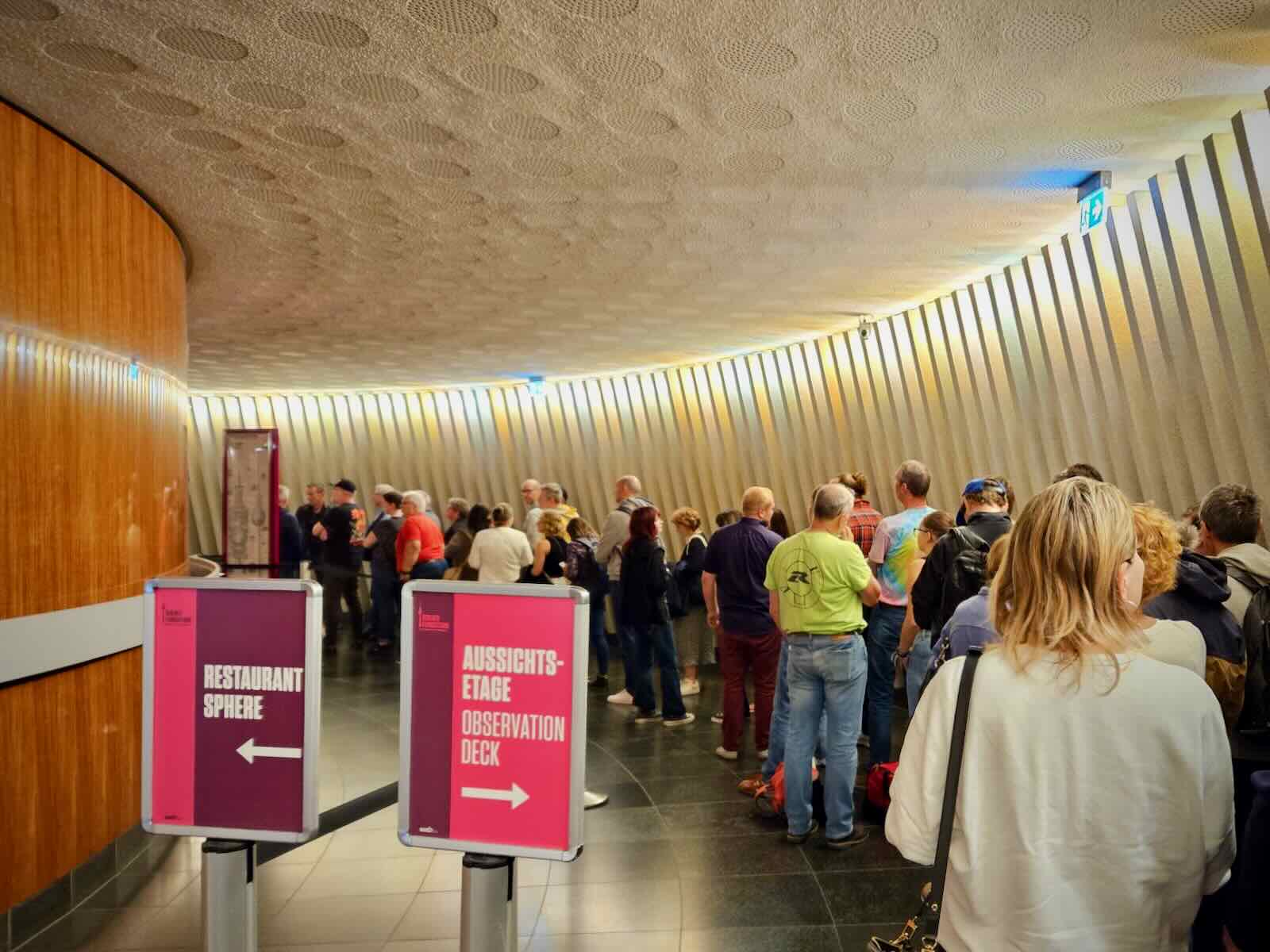 It appeared like it wasn’t just us who had that idea that day, as there were quite a few other people visiting the tower, judging by the queue. After waiting a little while to go up, we took one of the lifts on the 40 second ride up to the viewing deck.