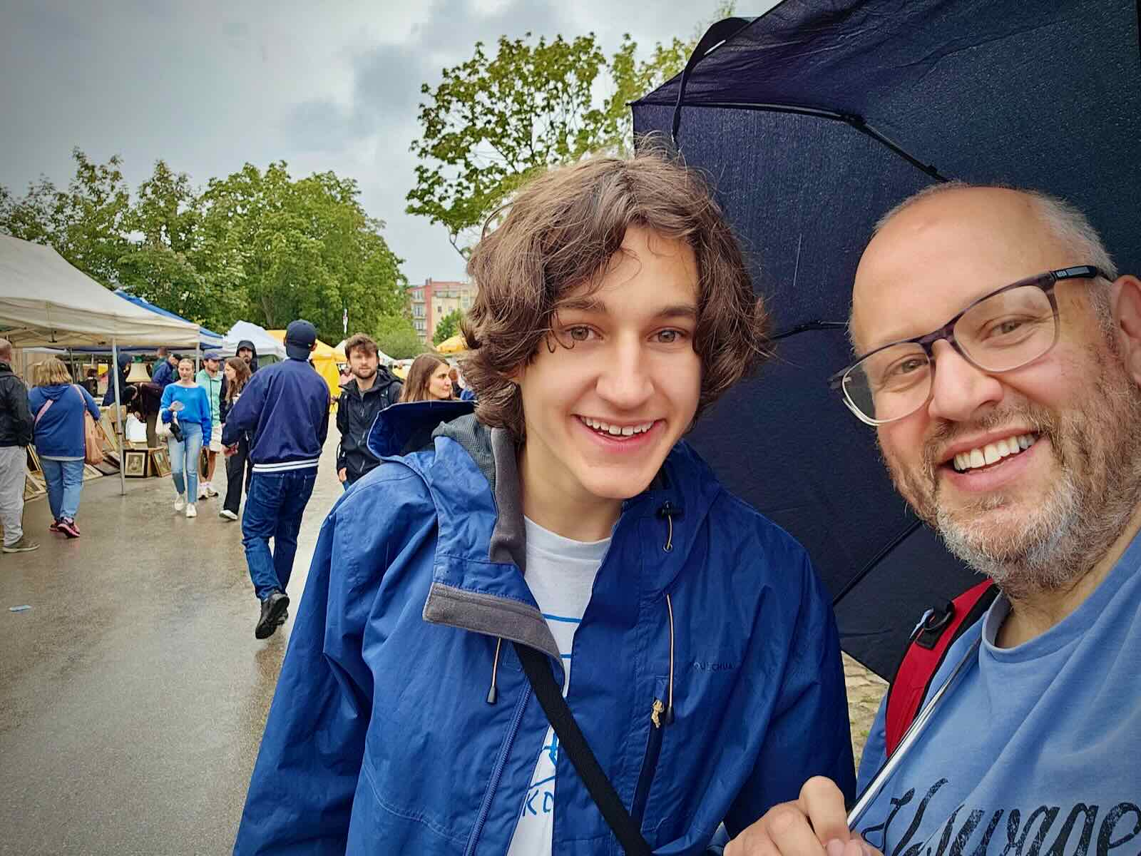After we’d looked round the stalls, we found a table under the shelter to enjoy some food and drink. I can’t remember now what we were drinking, probably beer. But I do remember getting some lovely Berliner doughnuts.
