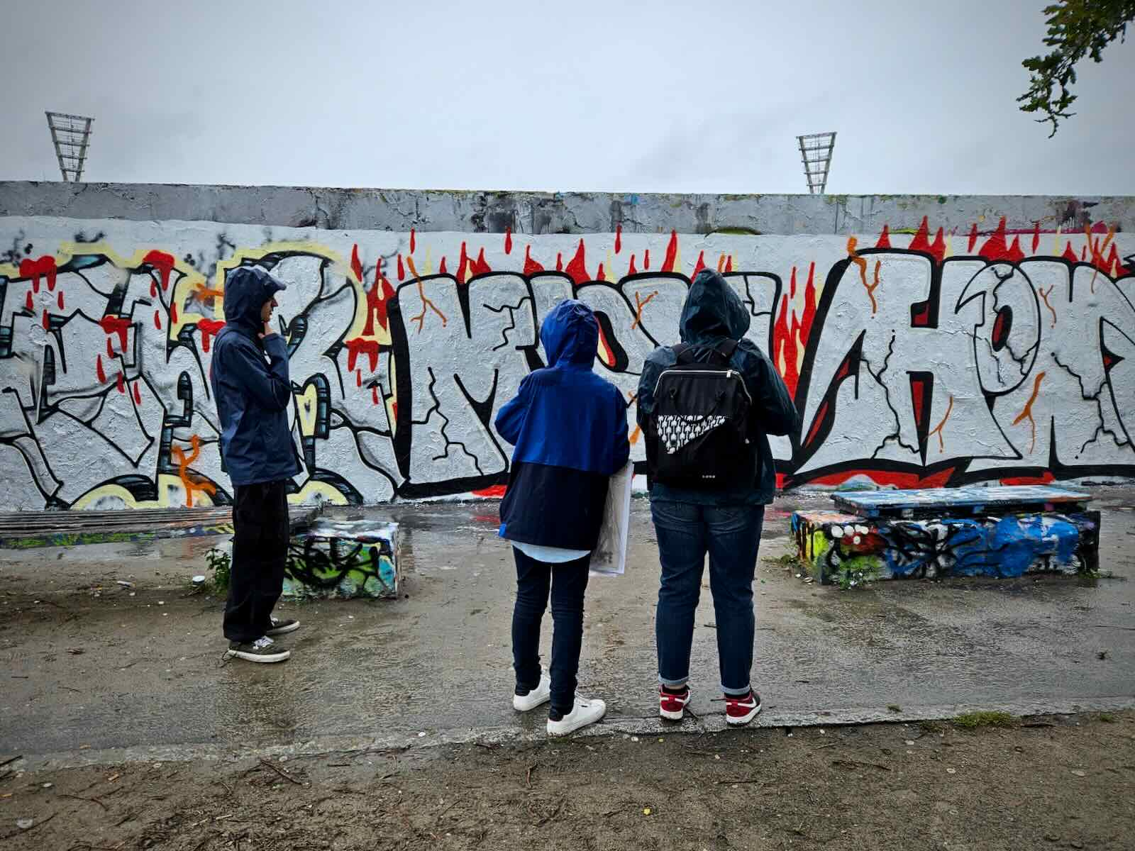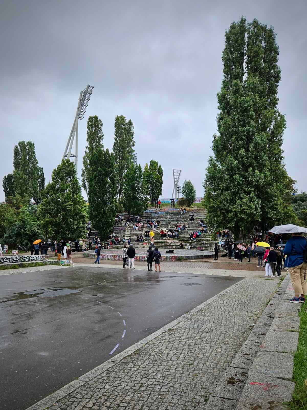 After the sword swallower finished, we continued up what used to be a railway embankment to an old section of the Berlin Wall. Mauerpark, which translates as “Wall Park” was once the location of a section of the Berlin Wall and death strip, separating the districts of Prenzlauer Berg in the east and Gesundbrunnen district in the west.