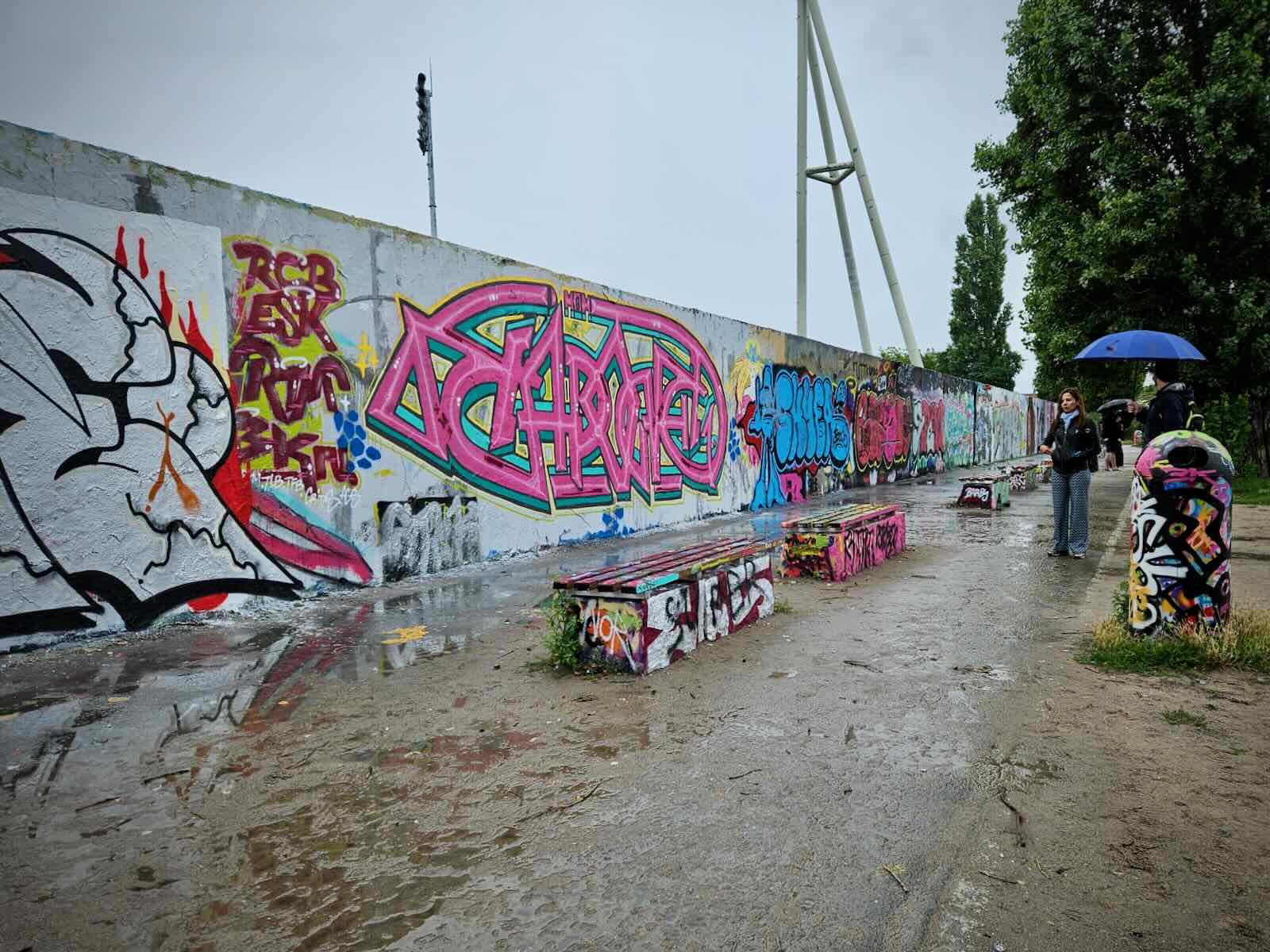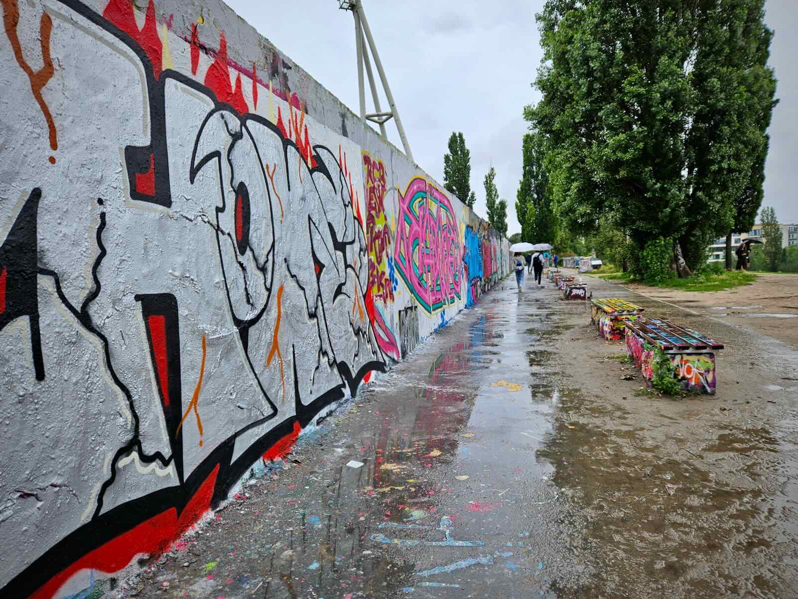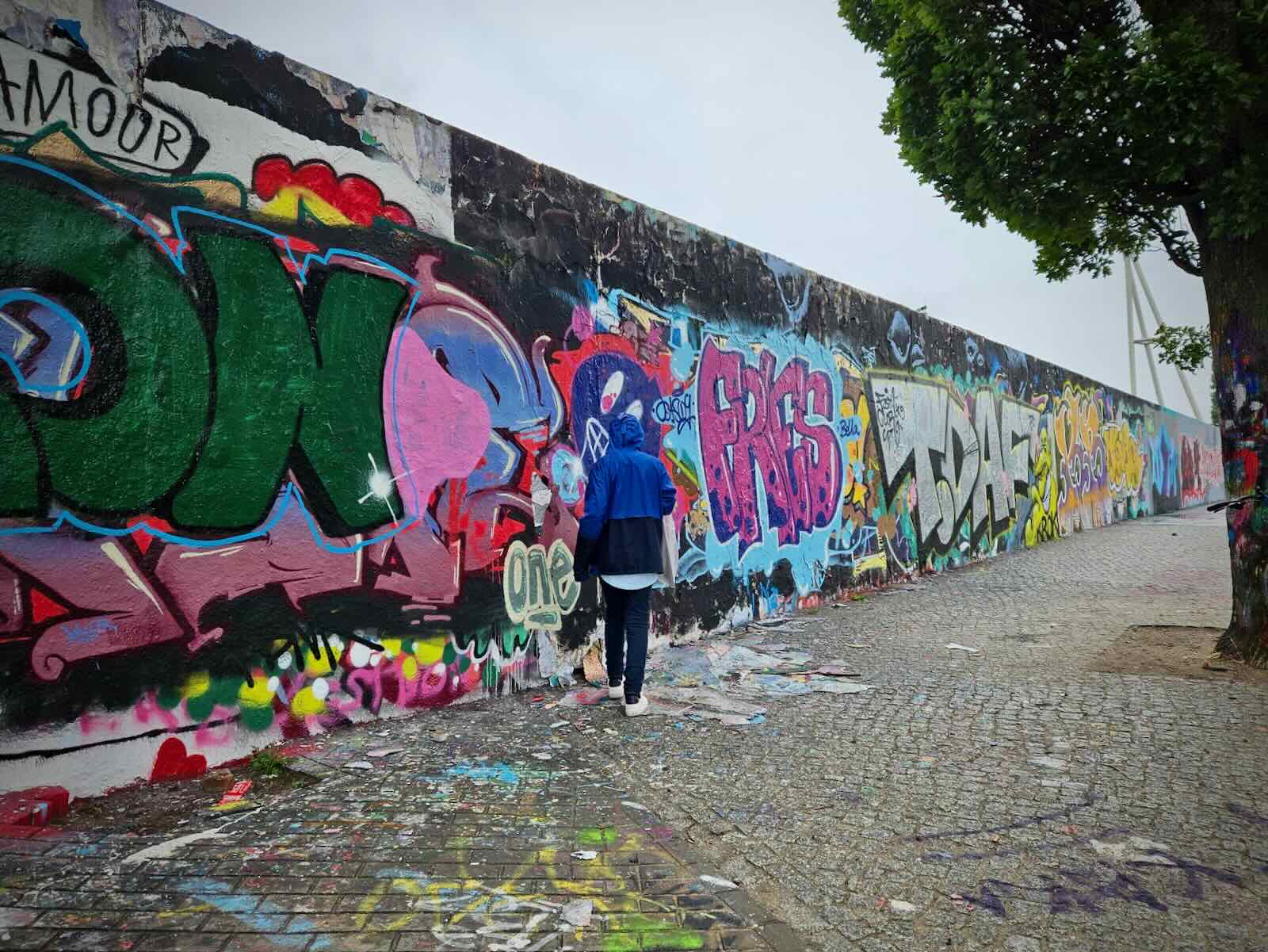 After the fall of the Berlin Wall, the former death strip was converted into the public green space that’s there today, with an 800m section of the wall kept. Like with the East Side Gallery, this has now become a canvas for street art. You can see how much it’s been used by the number of layers of paint peeling off.