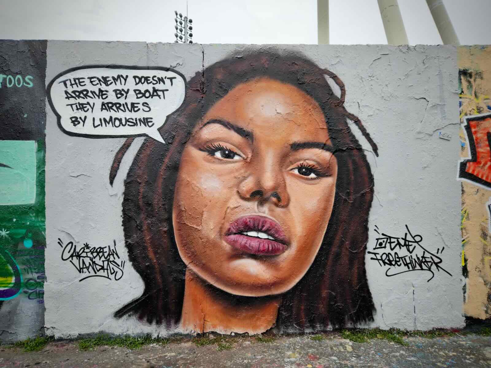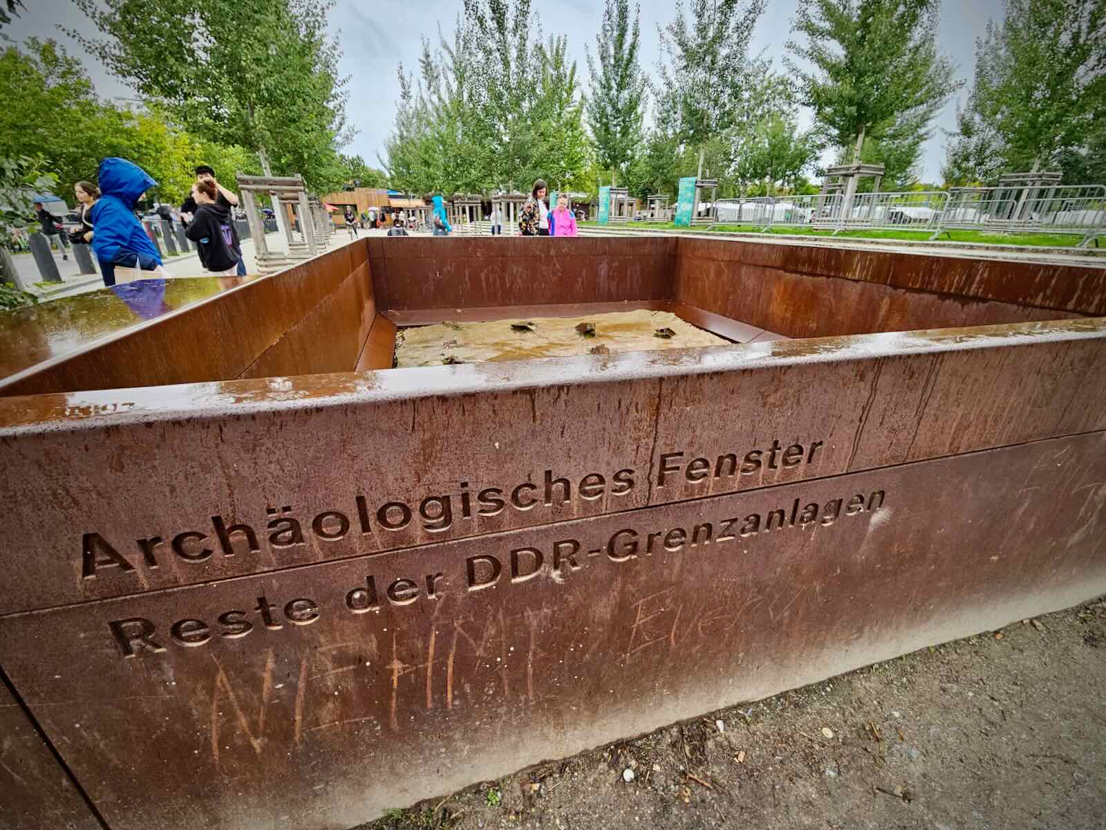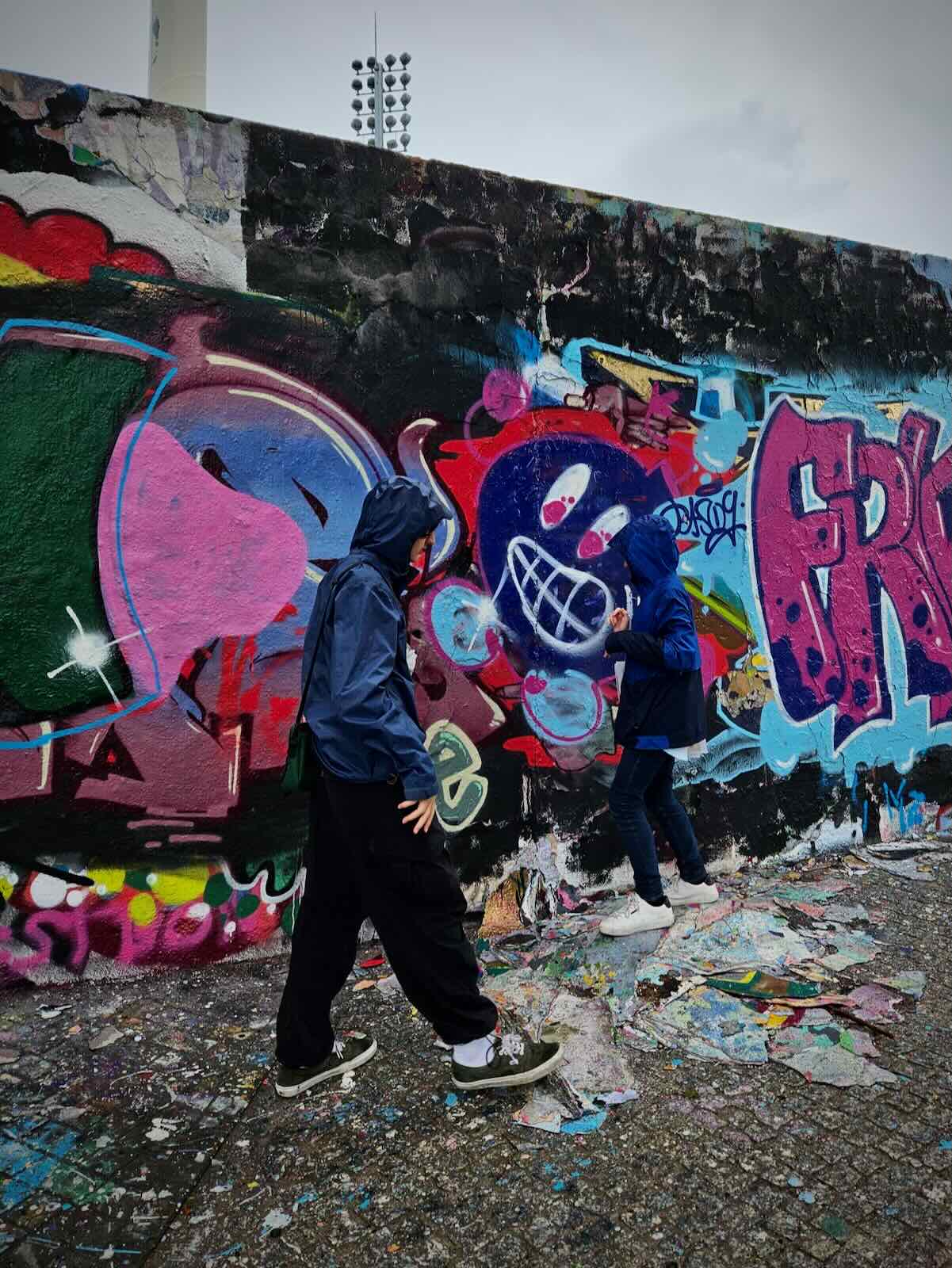 After the fall of the Berlin Wall, the former death strip was converted into the public green space that’s there today, with an 800m section of the wall kept. Like with the East Side Gallery, this has now become a canvas for street art. You can see how much it’s been used by the number of layers of paint peeling off.