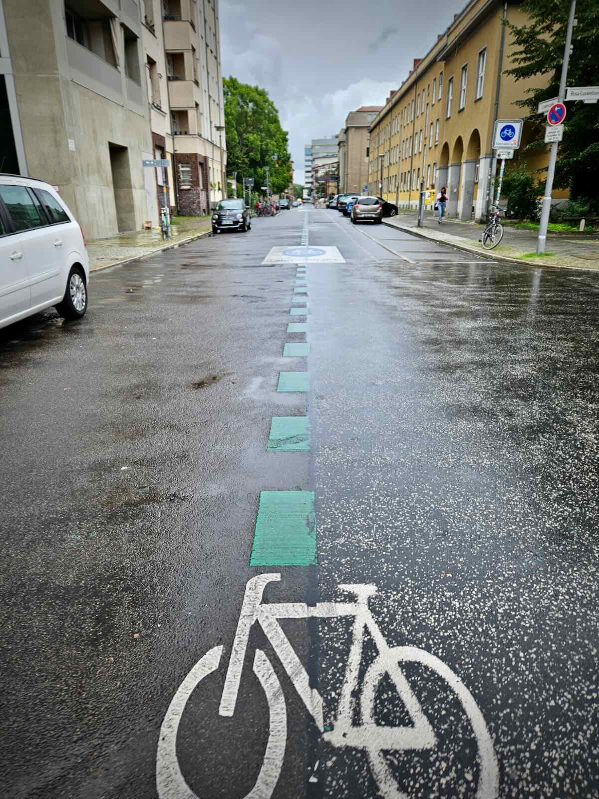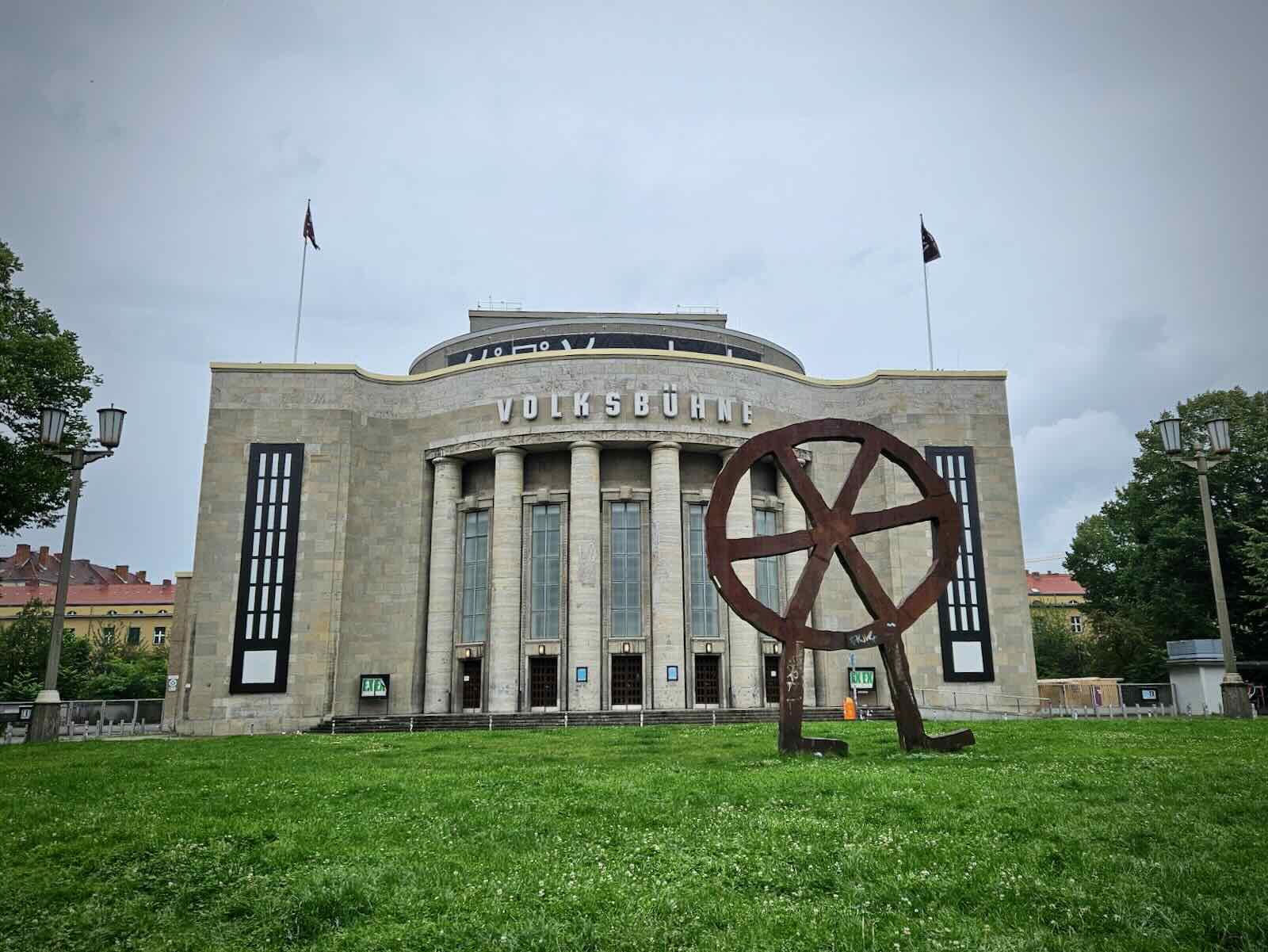 The tram stopped on Torstraße, not far from our Airbnb apartment on Rosa-Luxemburg-Straße. Wandering to our apartment, we pass a cycle street on Linienstraße, the location of the Berlin Wall and the Volksbühne Theatre.