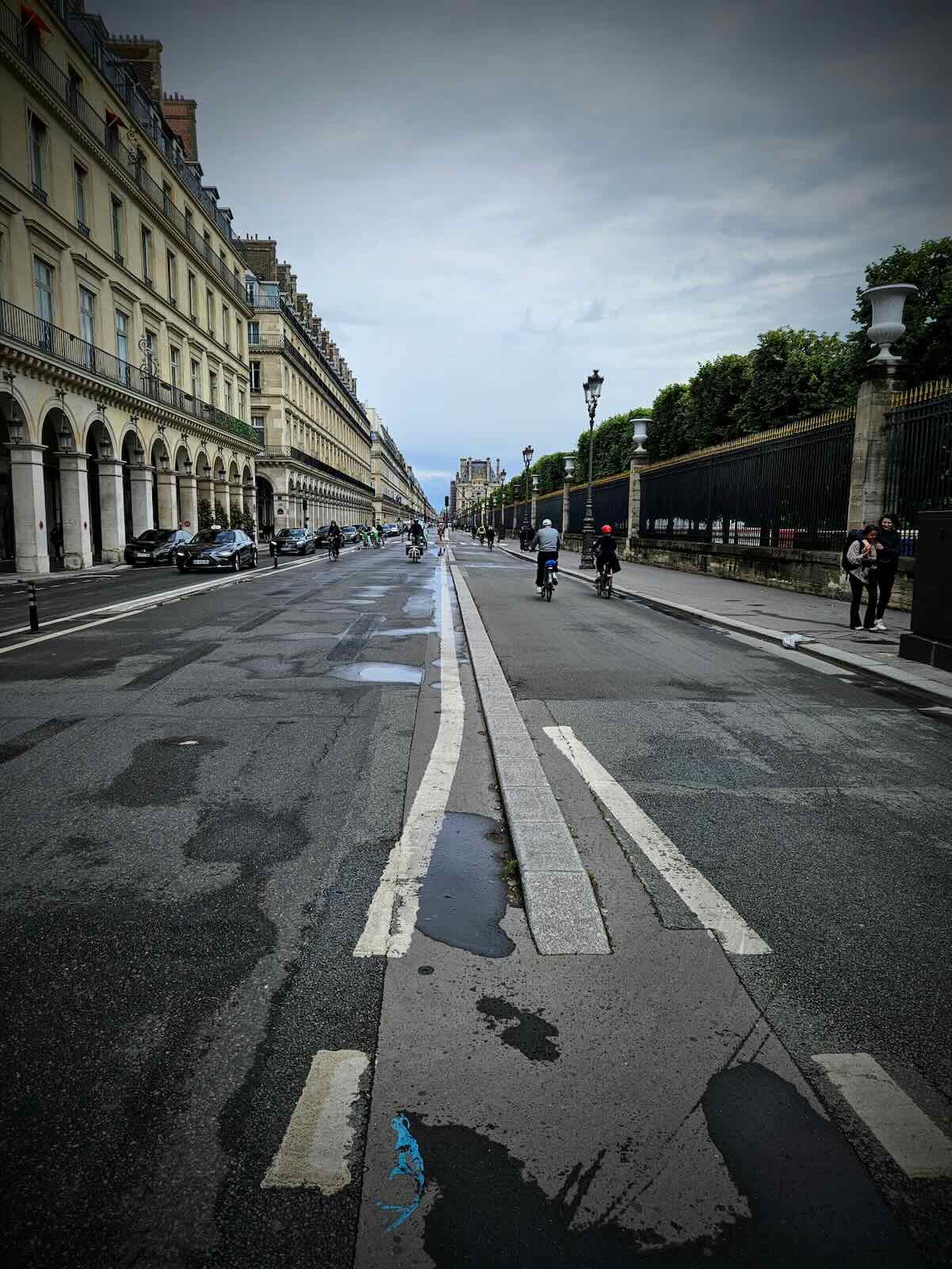 From Place de Clichy, there were some decent bidirectional cycle lanes, combined with unprotected sections and parts where I needed to mix with traffic. I soon arrived at Rue de Rivoli with its impressively wide protected cycle lanes.