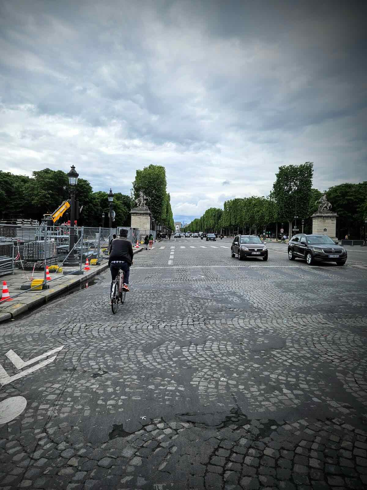 The Avenue des Champs-Élysées is famous for its cobbles and I have to say they were pretty rough to ride on, even at slow speeds with our fat tyres. I’d hate to think what it’s like for a pro cyclist riding on here at significantly higher speeds, on skinny tyres!