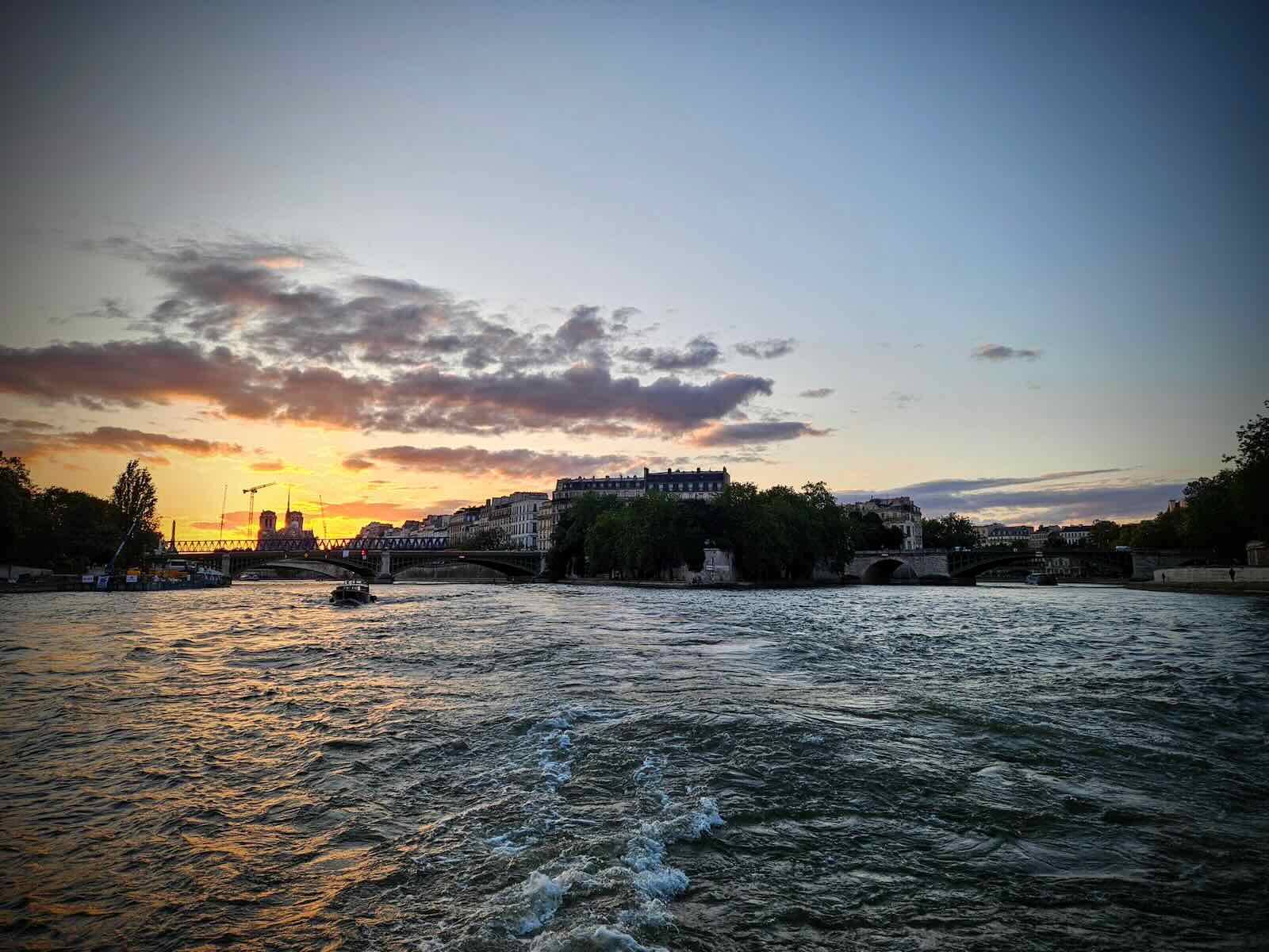 Along the way, we enjoyed views of the Eiffel Tower, Notre-Dame Cathedral and many other sights and bridges along the Seine. The views were made all the better with the clear skies and the sun setting.