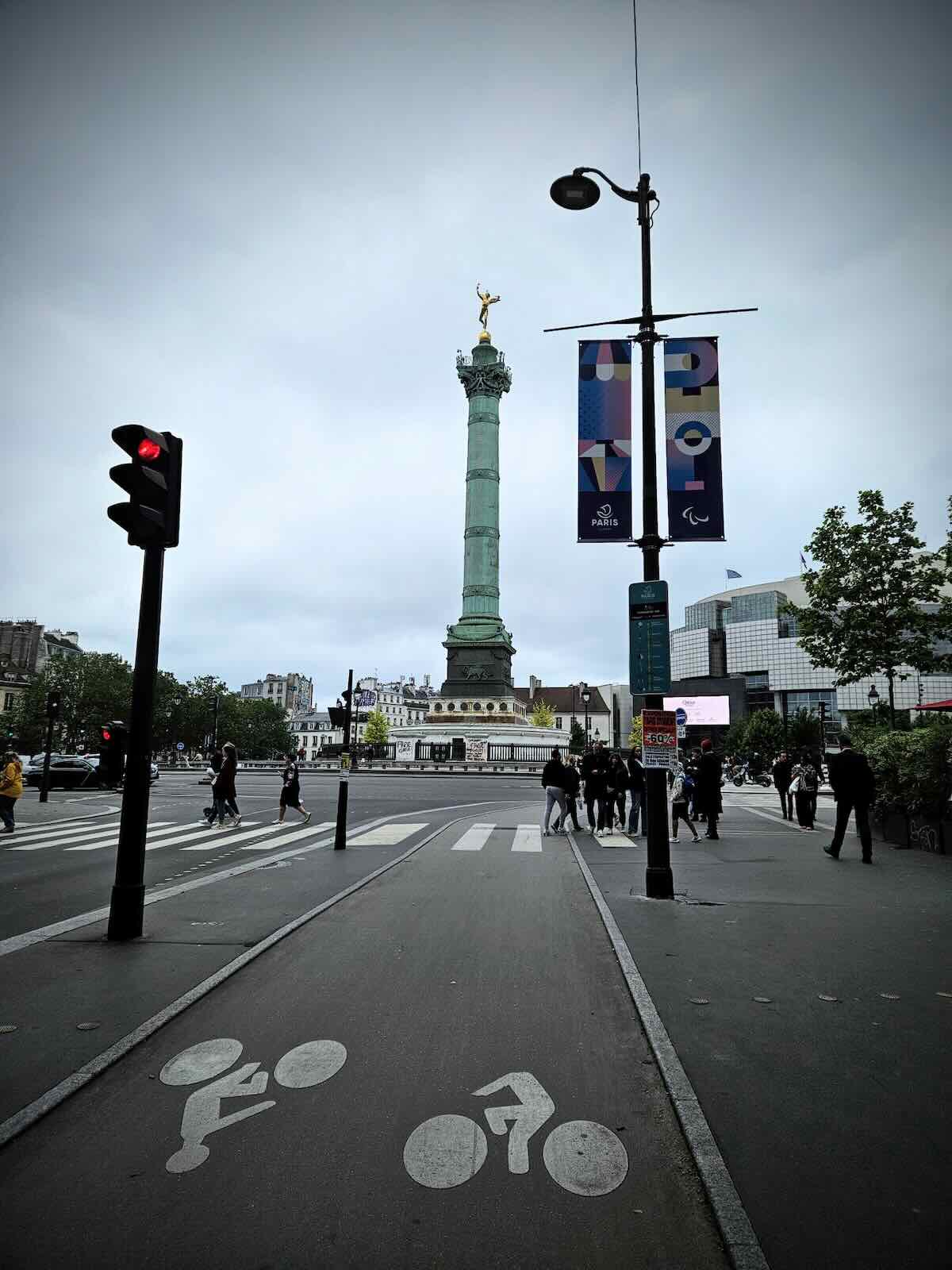 While I never got to experience Rue de Rivoli at its busiest, I did get to enjoy riding there a few times. On this occasion, I got to follow a group of the local police riding along there, as I made my way towards Bastille.