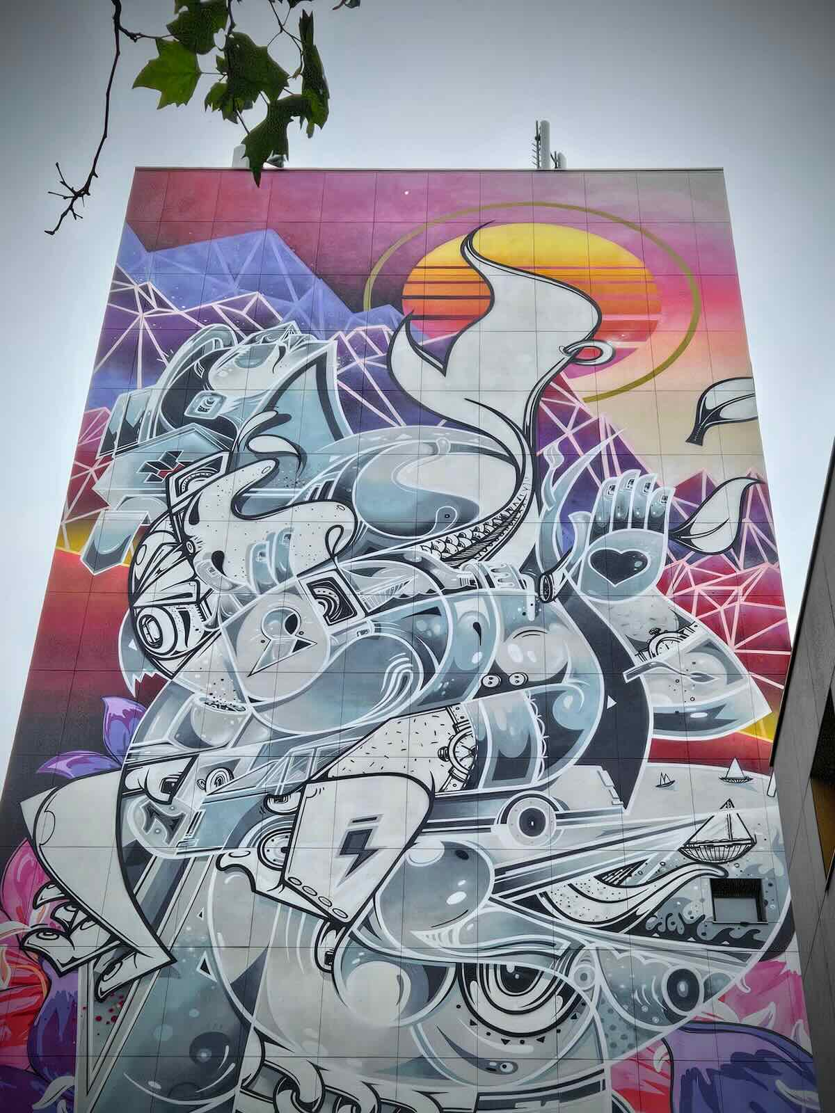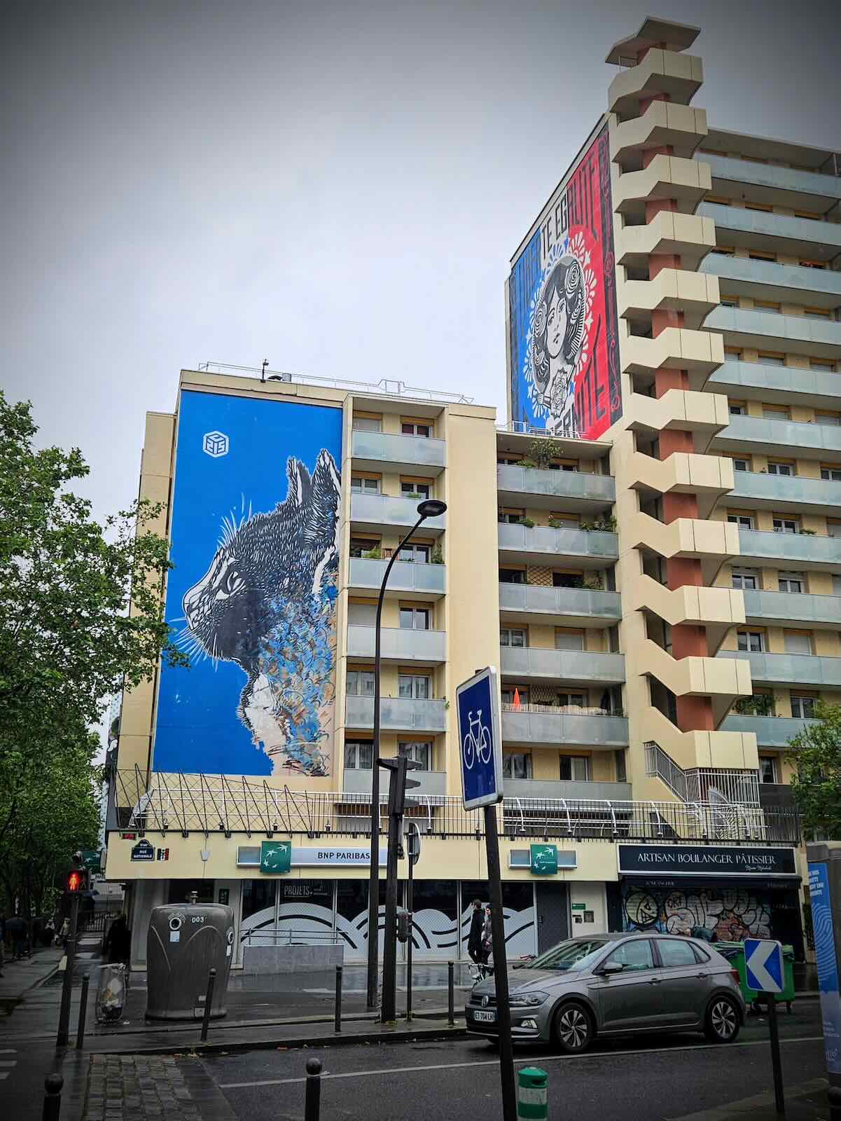 The many large modernist apartment blocks that line the boulevard make for a great canvas for the artworks and even the rain couldn’t dampen the bold colours. With the viaduct running down the middle of the street, I was reminded of Bülowstraße in Berlin, which we’d visited in 2023.