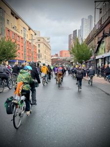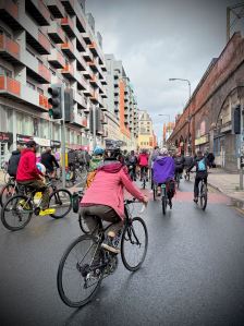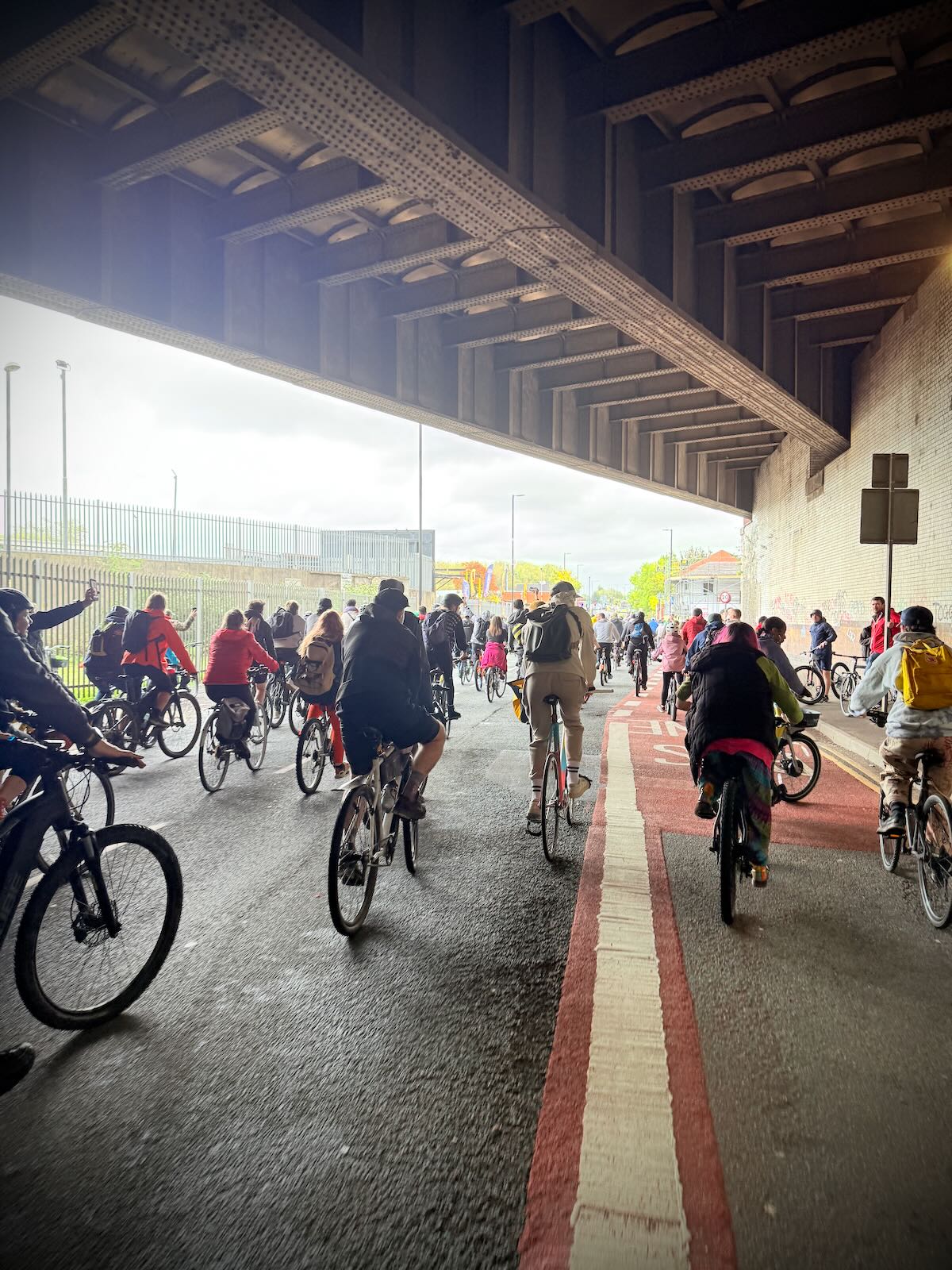 Despite the weather, it was a great turnout and a fantastic ride. From Castlefield Arena, the route took us out of Manchester and into trafford, towards my neck of the woods, before returning along Stretford Road, then back through Deansgate Interchange.
