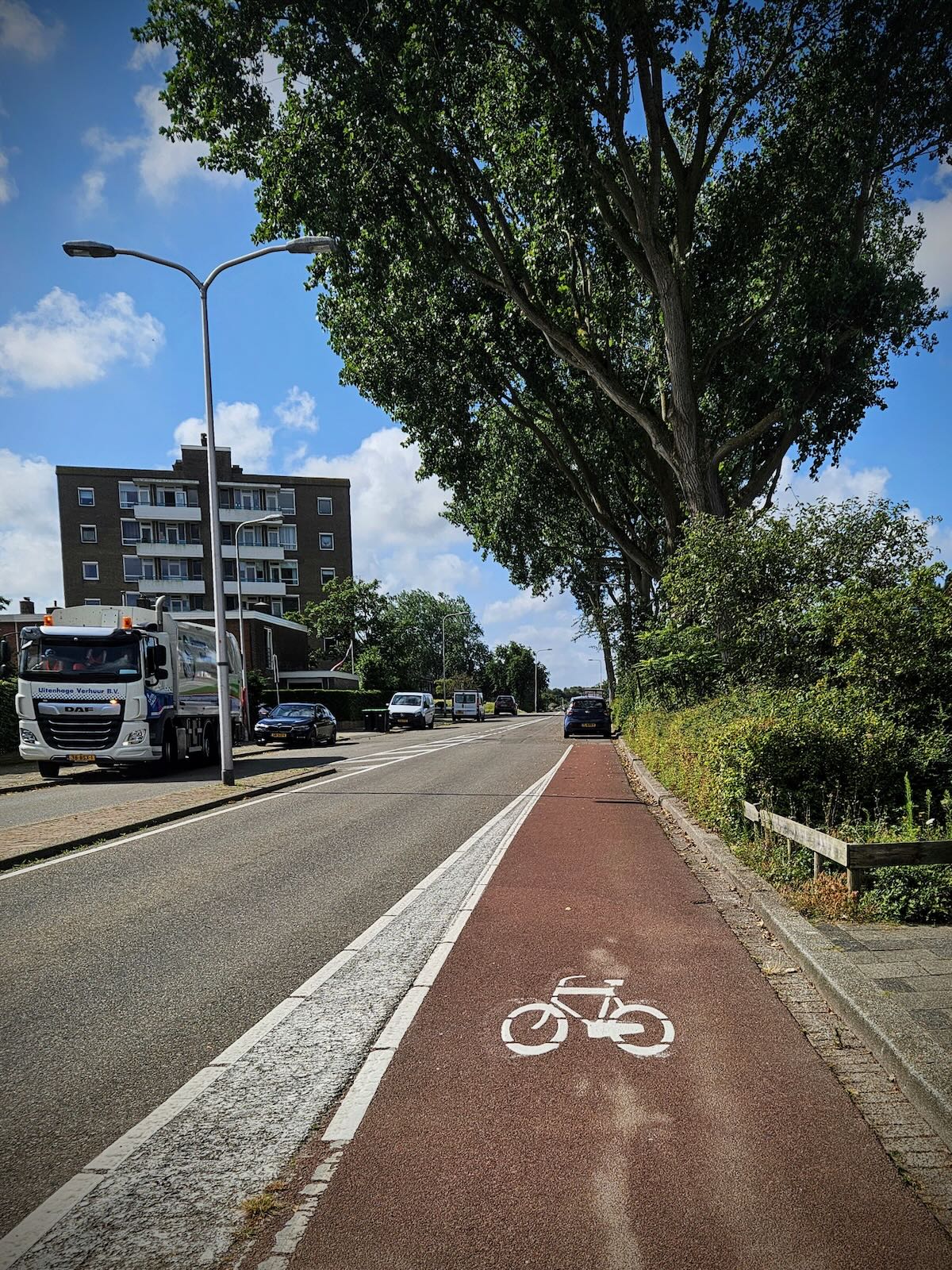 As Tramstraat turned into Zeeweg, the painted lanes were replaced with protected cycle paths. These carried on initially, as I turned right onto Meeuwenlaan, though they came to abrupt end after the roundabout at Boslaan.