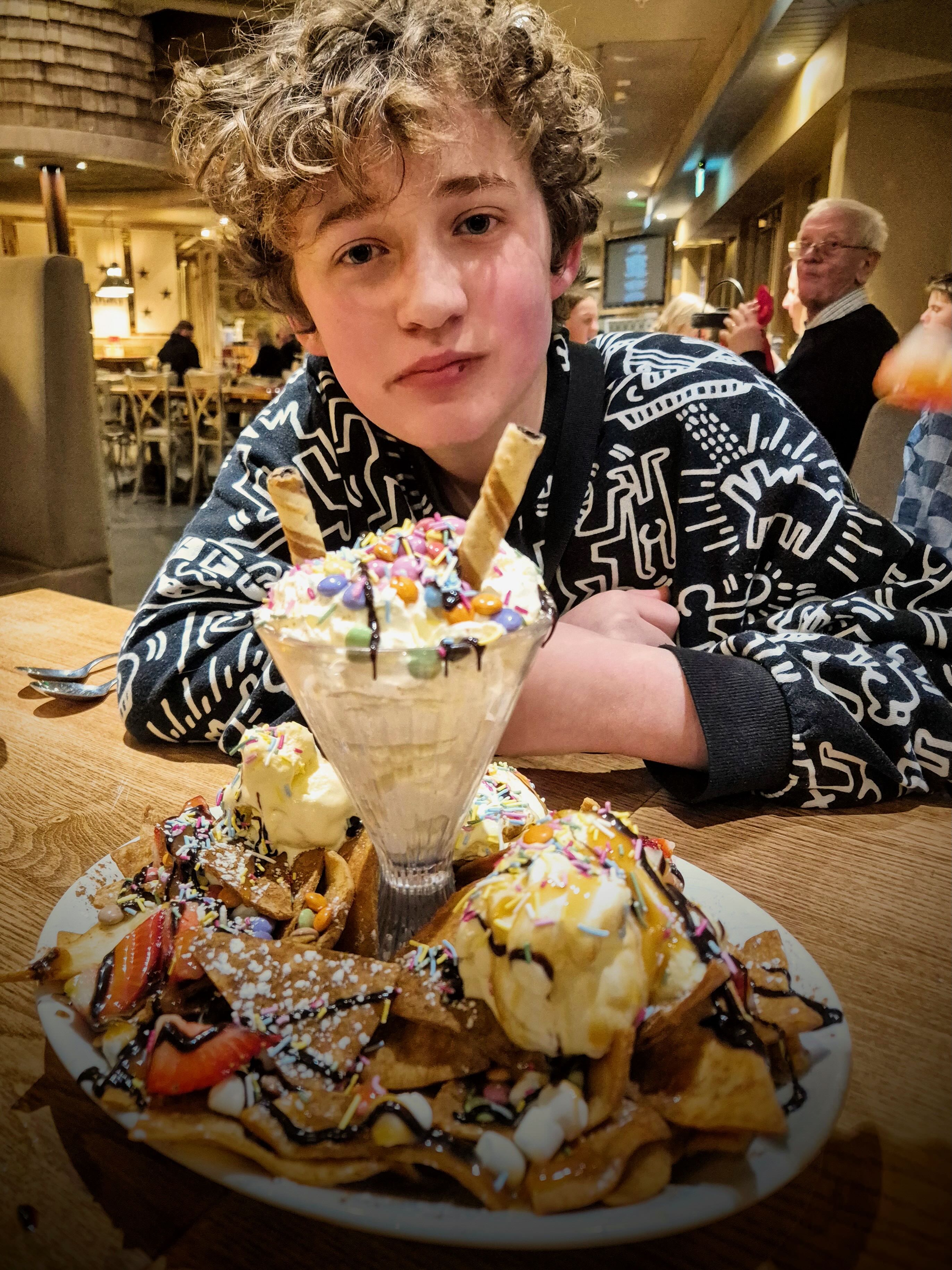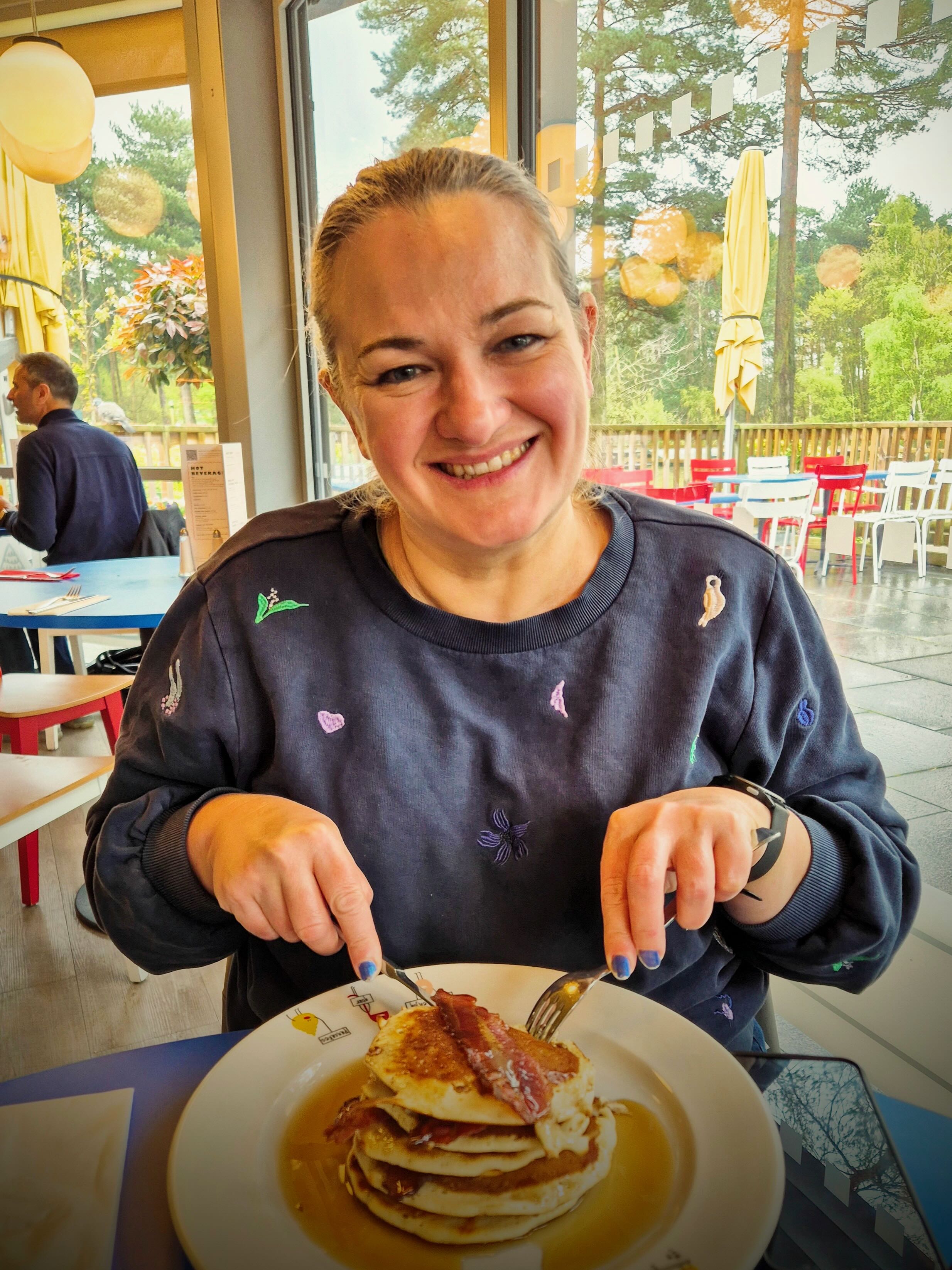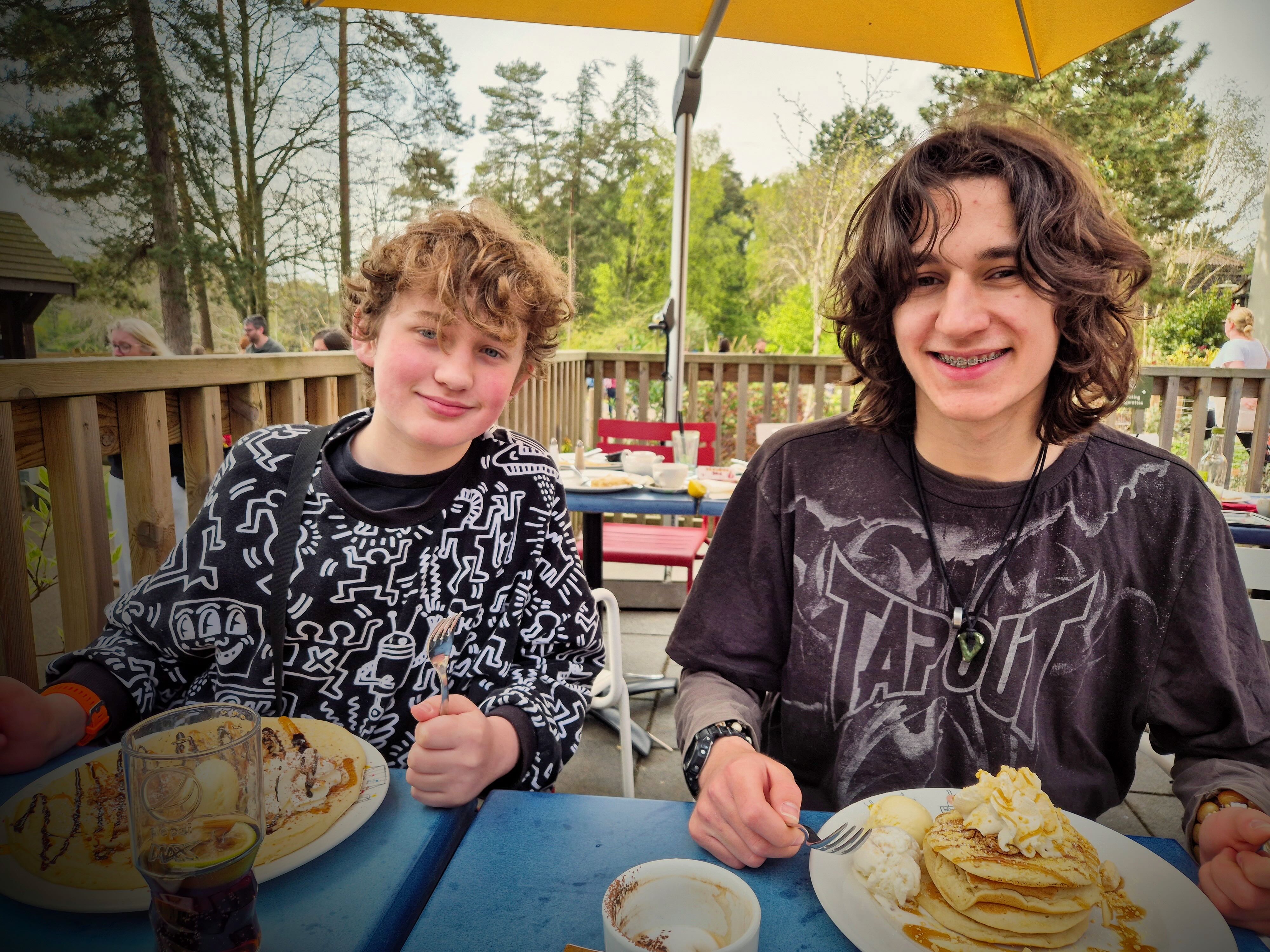 Our first visit there was on the day after we arrived, going for a late breakfast. Then we returned on our final day, when we made the most of the warmer weather, by enjoying our pancakes on the outdoor terrace, overlooking the lake.