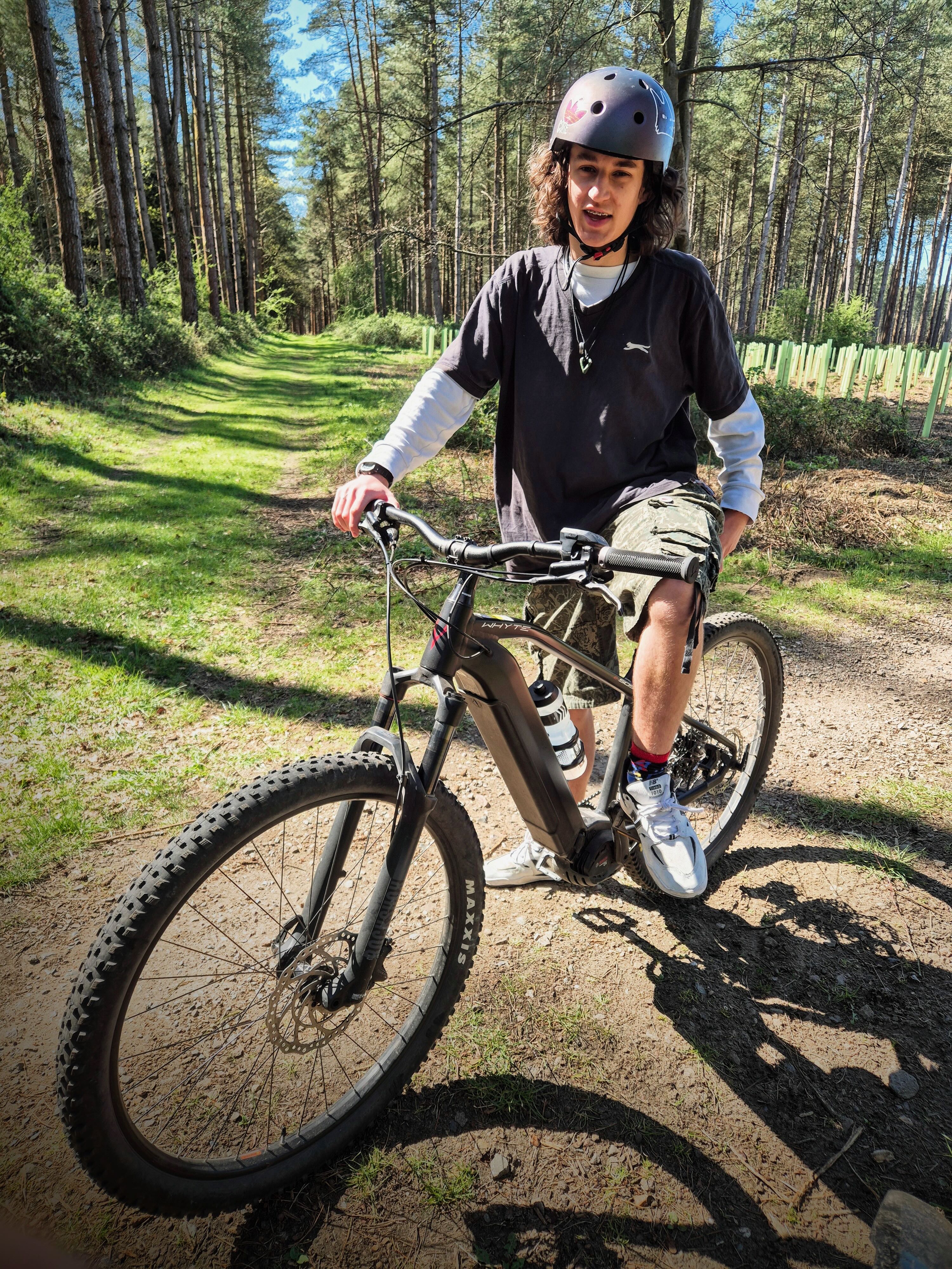 As last time, our eldest was joining me on the ride on the mountain bike trails, hiring a mountain bike from the bike hire there. With it being so busy there, all they had left were electric mountain bikes, which ended up being a treat for him.