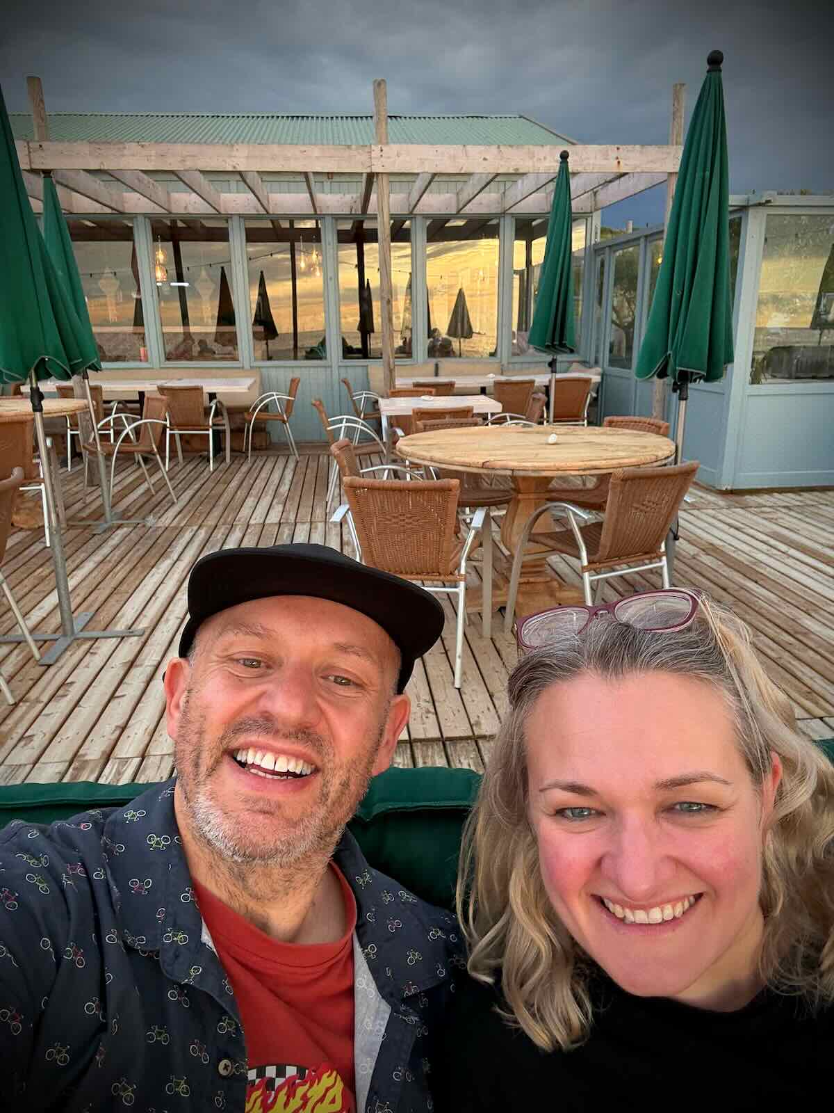 We had a lovely time relaxing outside the bar, watching the sun setting over the beach and sea, and people making the most of the evening. While the weather wasn’t brilliant, there were still plenty of people coming and going.